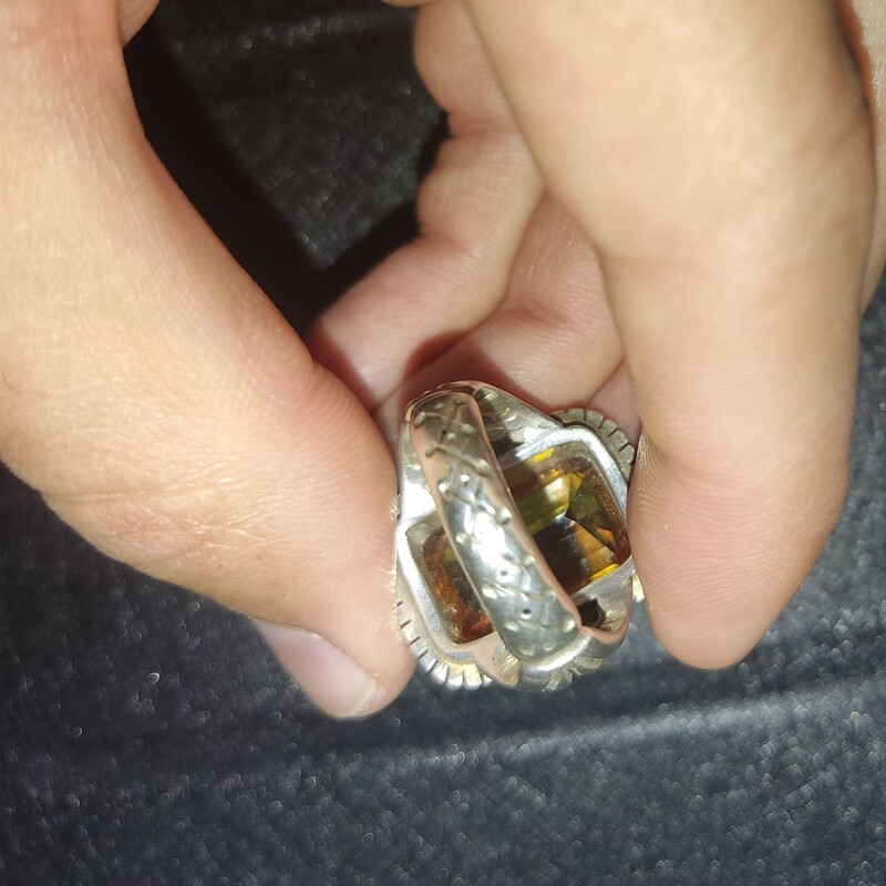 انگشتر نقره ۹۲۵ وزن ۲۰ گرم نگین سیترین طلایی ۲۵ قیراط نگین معدنی و خاص با تراش جواهری رکاب تمام کار دست استاد احمد ایران سایز ۶۴