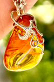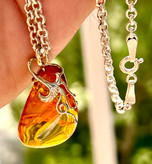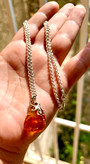 کهربای بولونی لهستان طبیعی و شفاف و کاملا اصل و تست شده ،همراه زنجیر نقره ۹۲۵ کد ۲۶۲