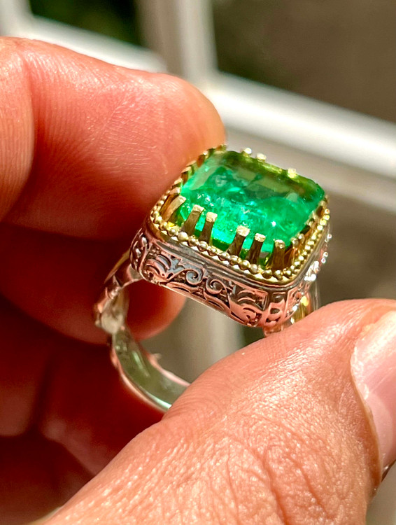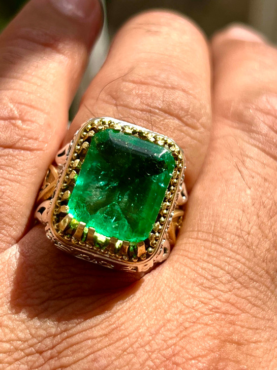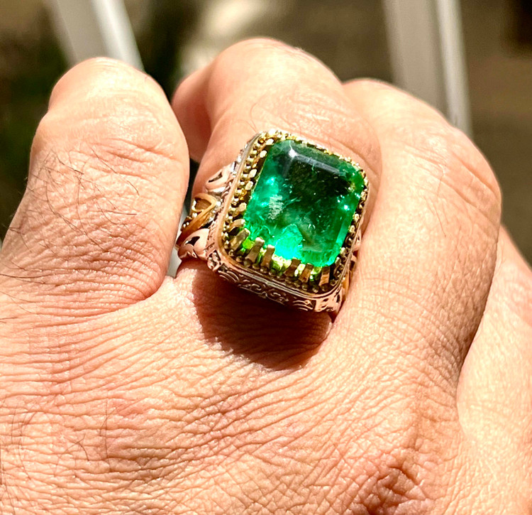 انگشتر زمرد معدنی برزیلی خوشرنگ