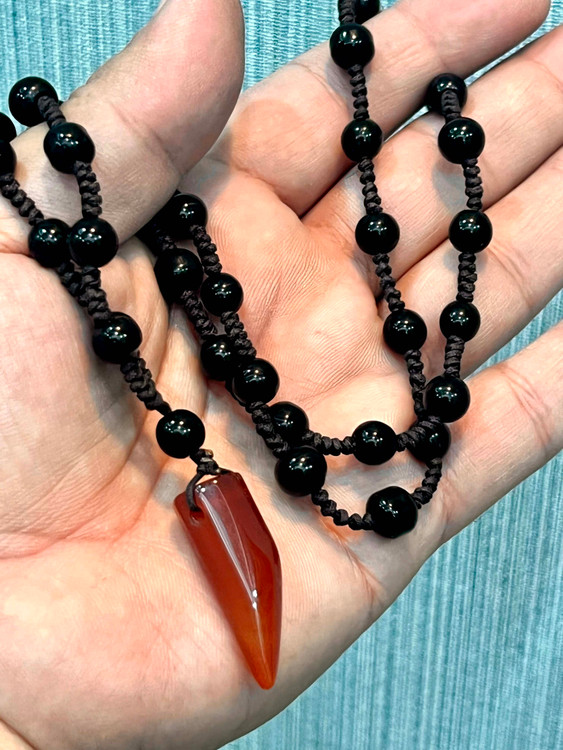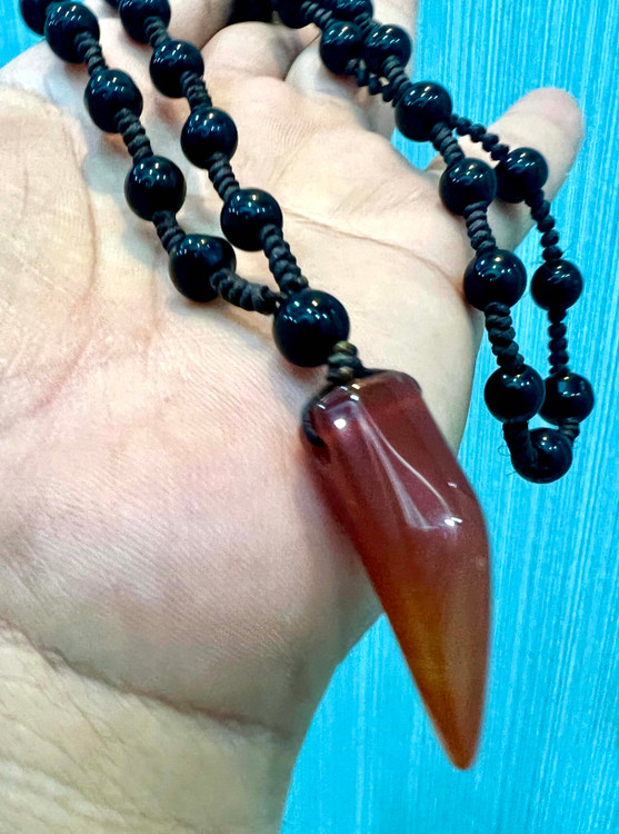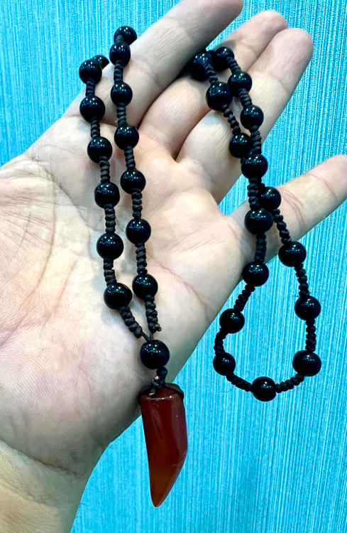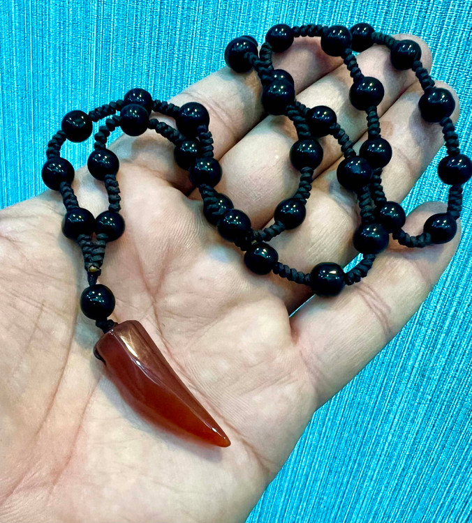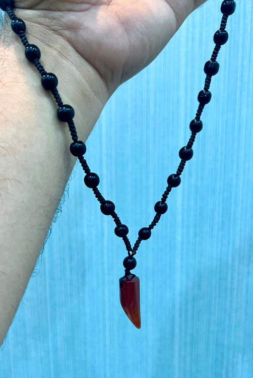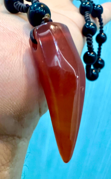آویز گردنی عقیق یمنی کهنه طوقدار طبیعی و معدنی