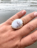 انگشتر شجر قائن زمینه شیری ،معدنی آبدار و کلکسیونی با رکاب تمام دستی مهردار کد ۳۱۳