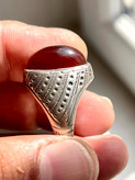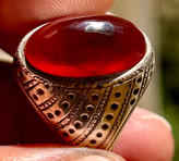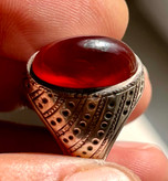 انگشتر کلوخه سرخ کهنه آفریقایی سر تا کف طوق ،کلاه دار ، اصیل و بکر رکاب استاد نامی کد ۳۱۶