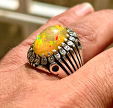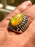 انگشتر اپال (اوپال)استرالیایی با تلالو بی نظیر، معدنی و طبیعی رکاب کار دست زنجانی با مهر سازنده کد ۳۲۱