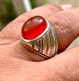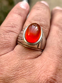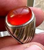 انگشتر عقیق سرخ کهنه یمنی اصل و معدنی رکاب فابریک استاد نامی کد ۳۲۵