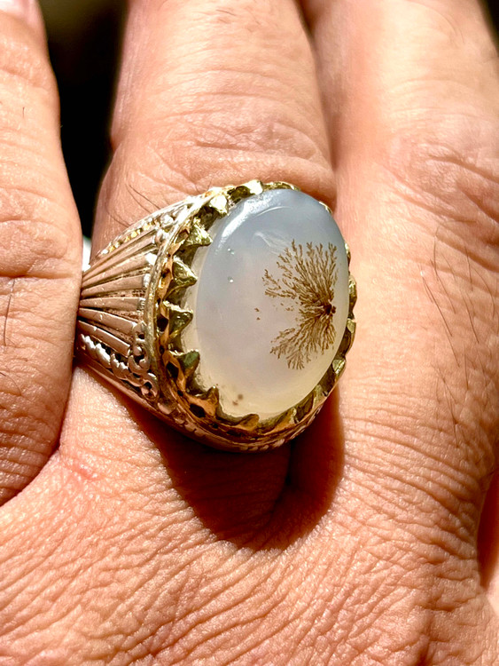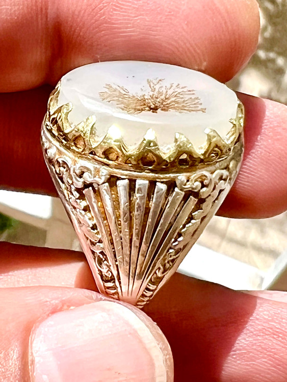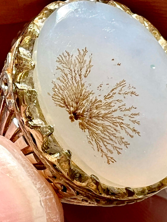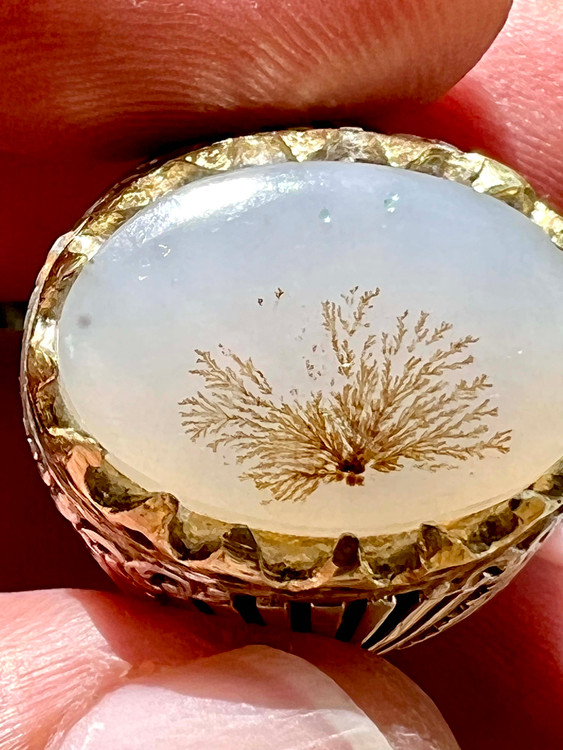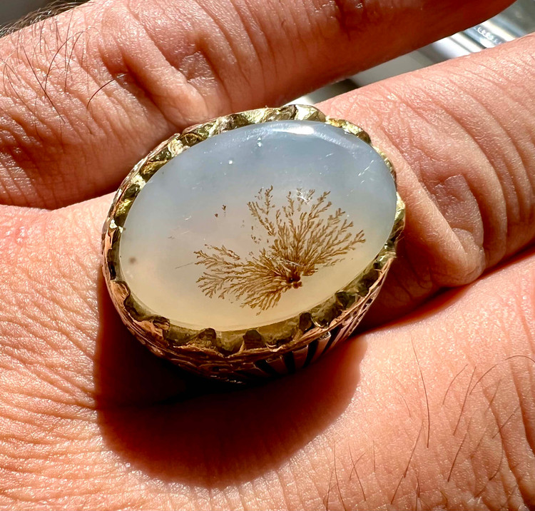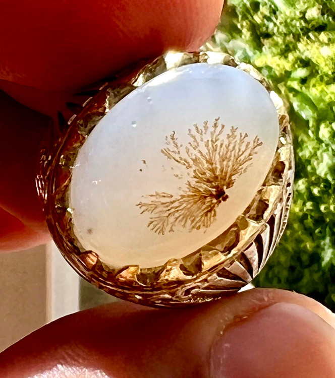 سنگ عقیق شفاف با تصویر بوته کامل برگ سوزنی ابعاد سنگ ۲ در ۱/۵ سانتیمتر