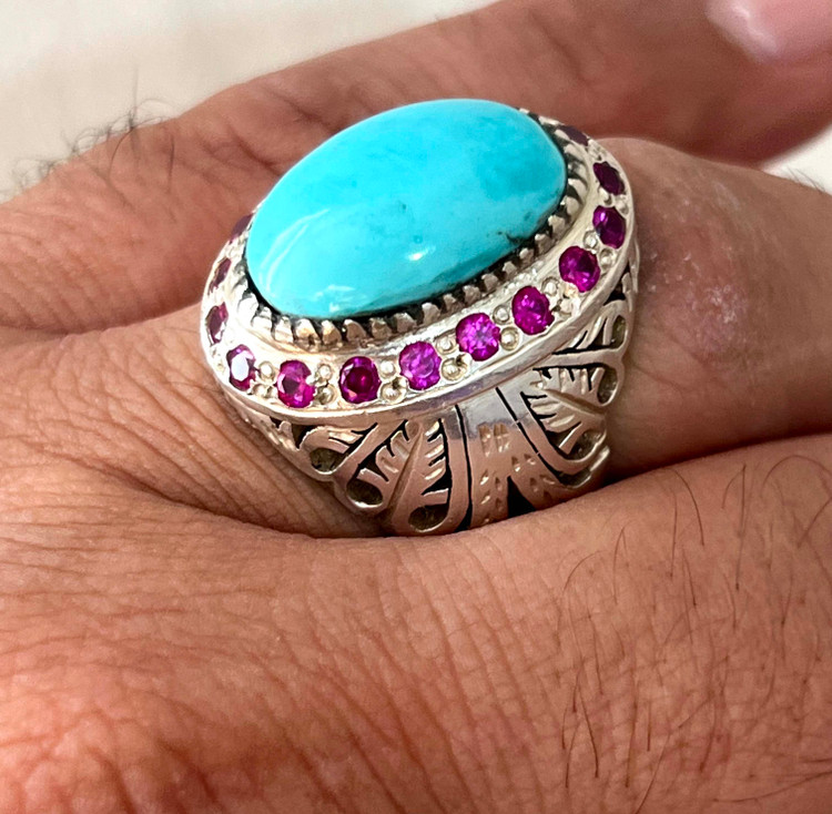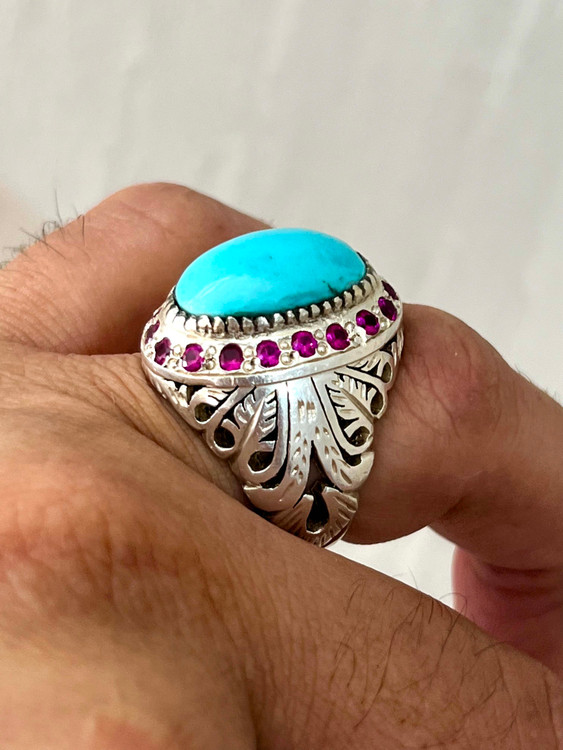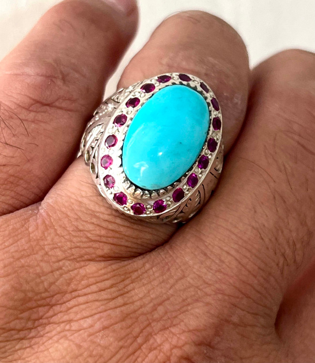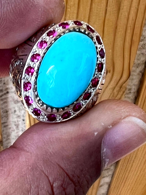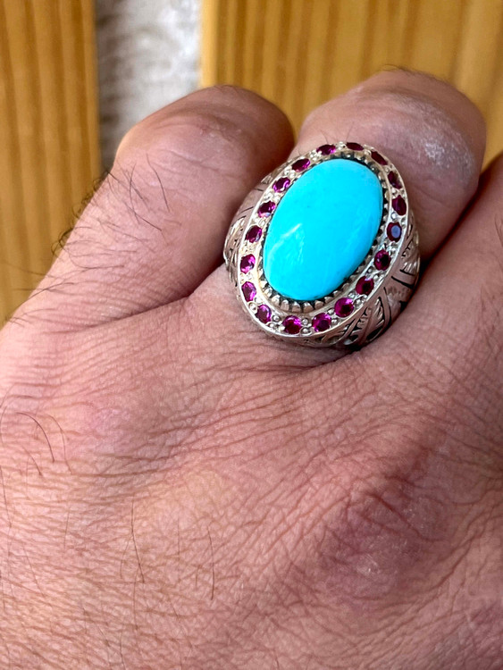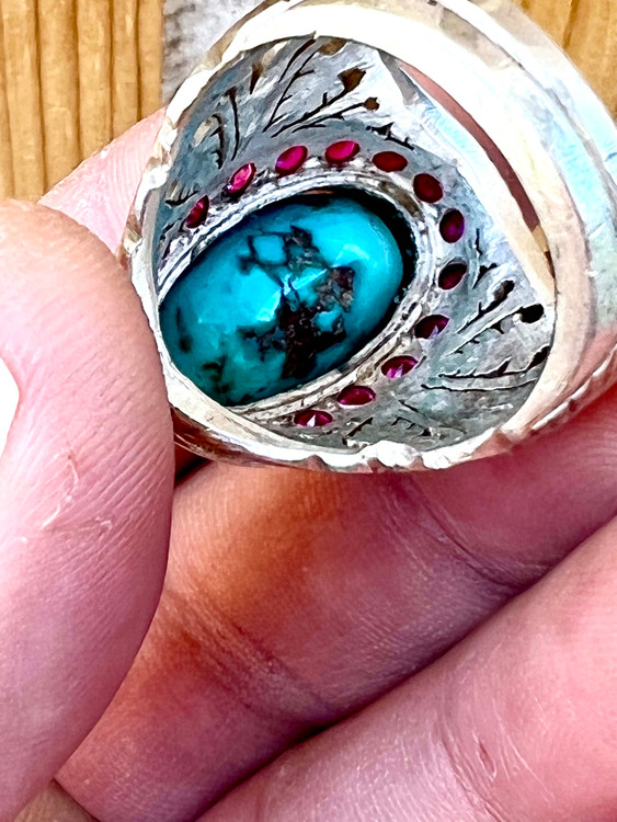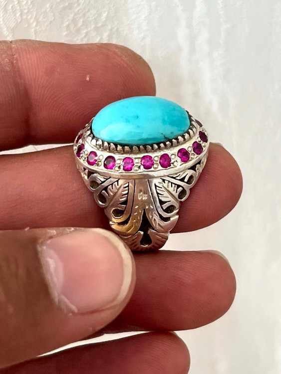ابعاد سنگ فیروزه ۲ در ۲ / ۱ سانتیمتر و ارتفاع ۷ / . سانتیمتر