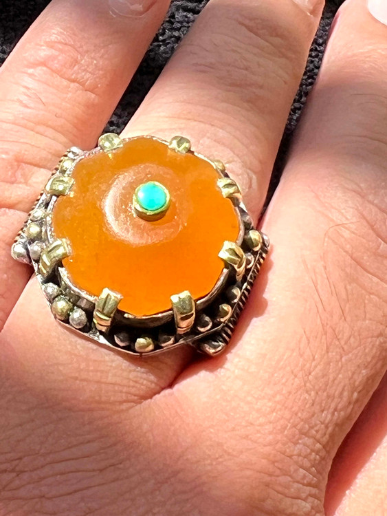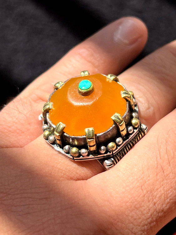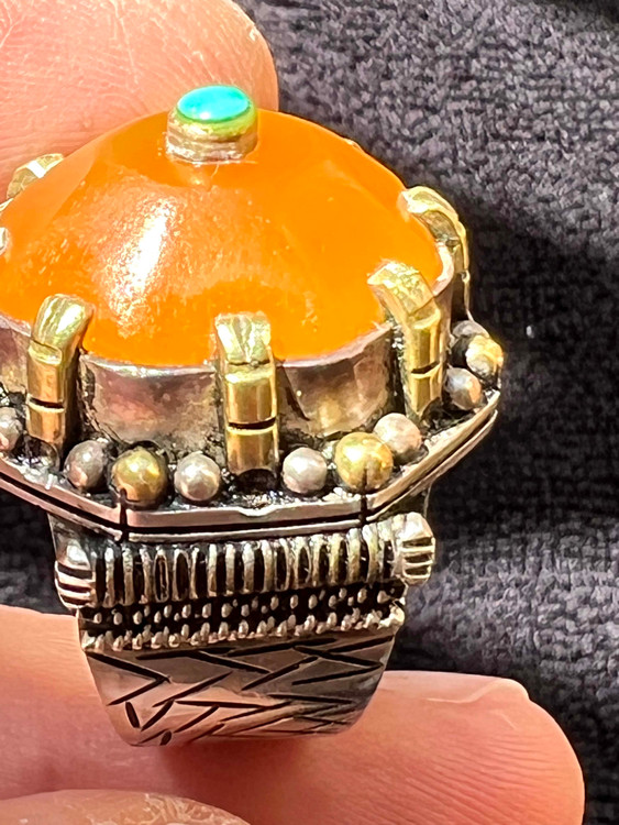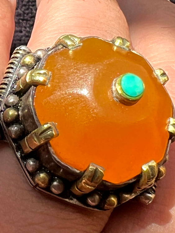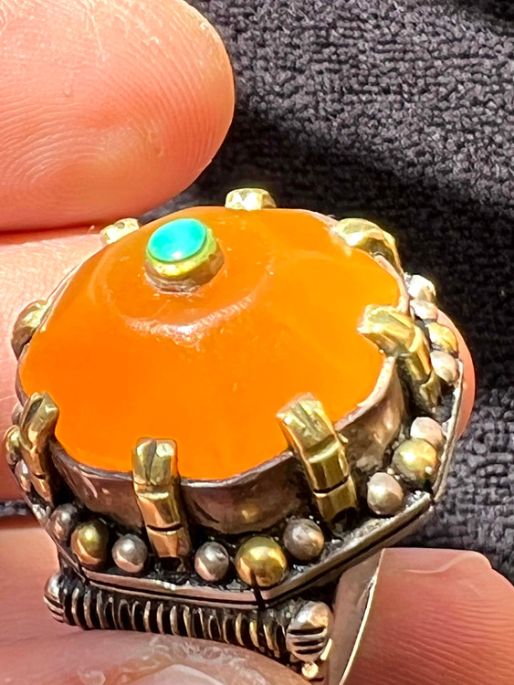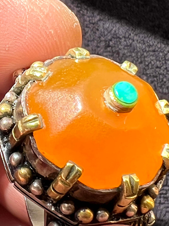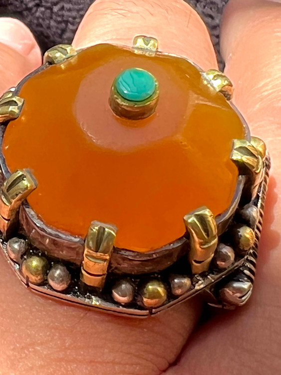 مهره عقیق هشت پر کهنه ساسانی پرتغالی خوشرنگ یمنی قواره دار قطر مهره عقیق ۲/۳ سانتیمتر و ارتفاع ۱/۵ سانتیمتر