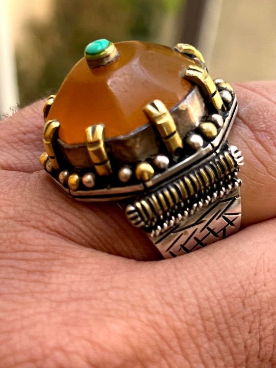 رکاب تمام کار دست استاد صفری اهواز ، از جنس نقره ۹۲۵ با چنگهای برنجی و مخراج فیروزه نیشابوری