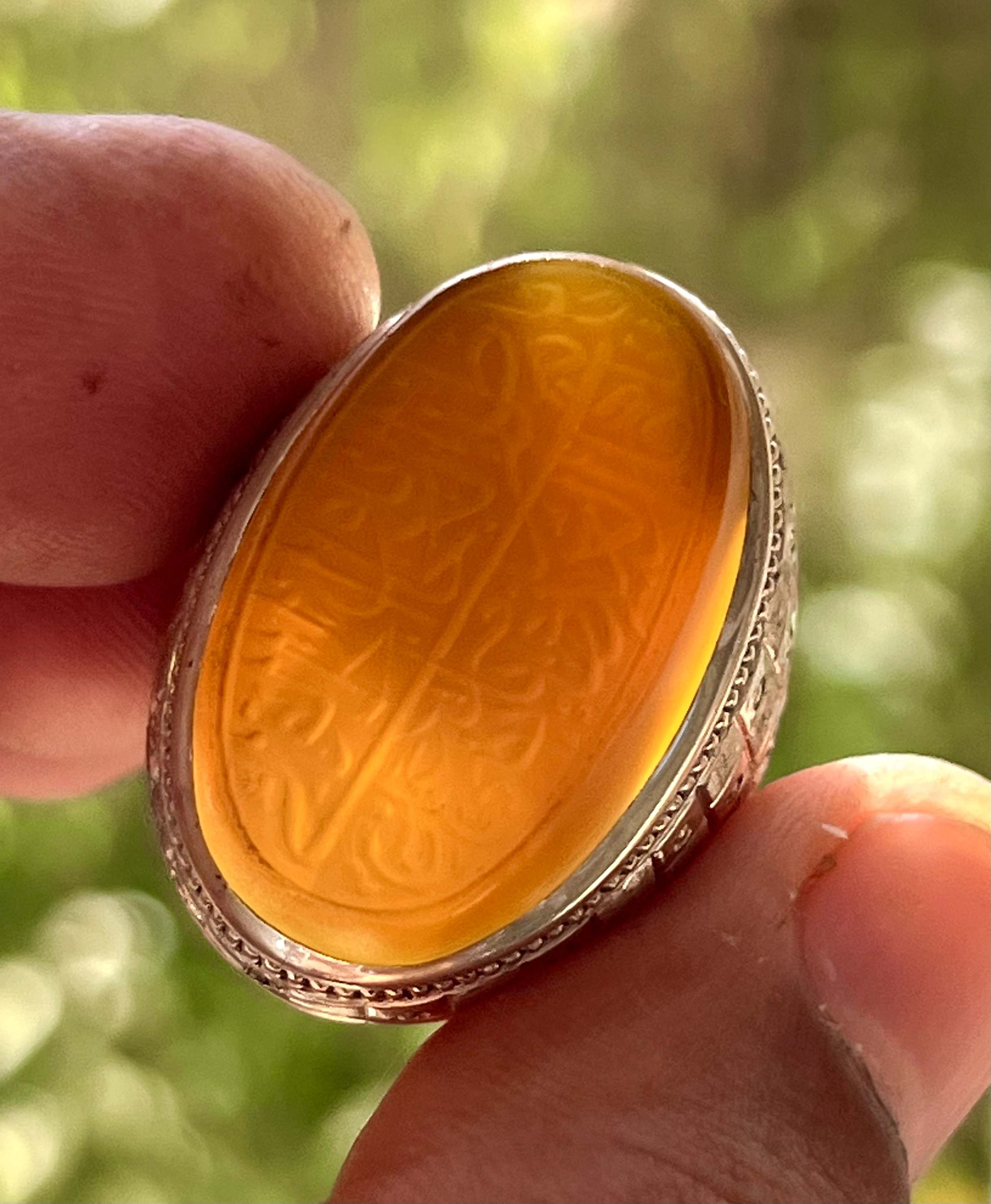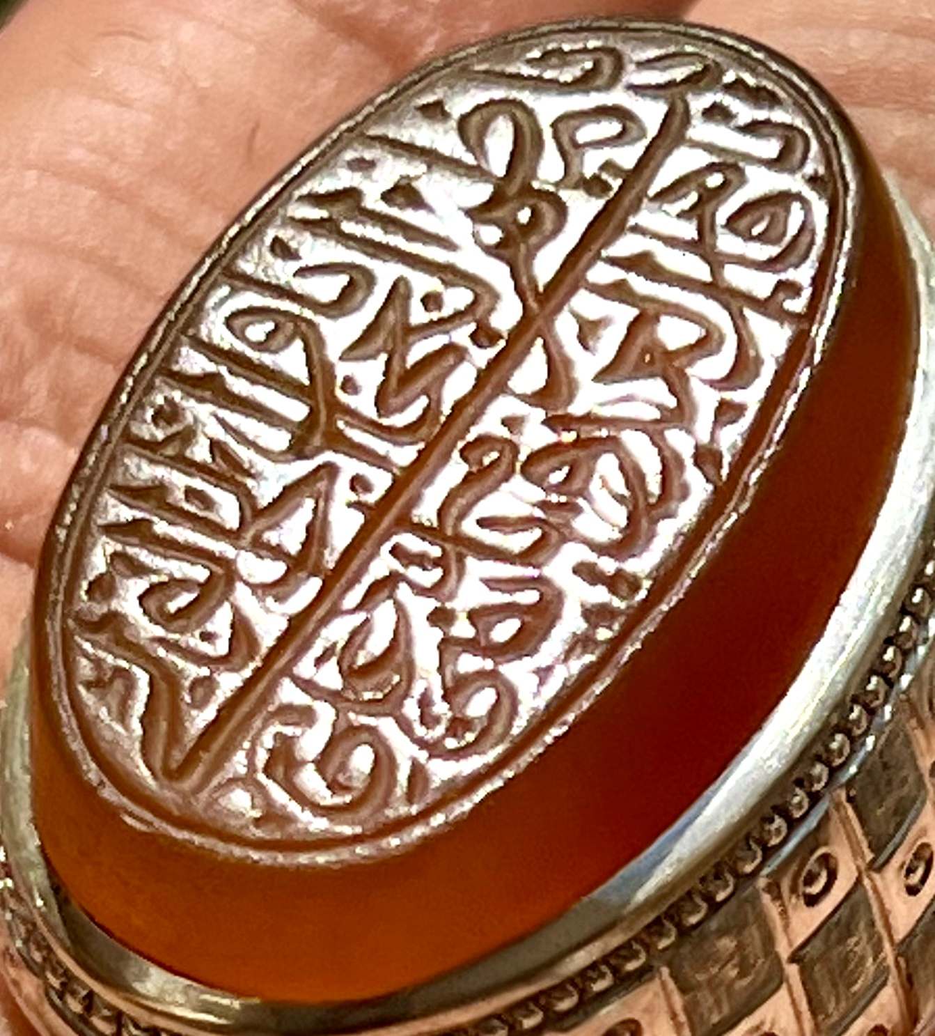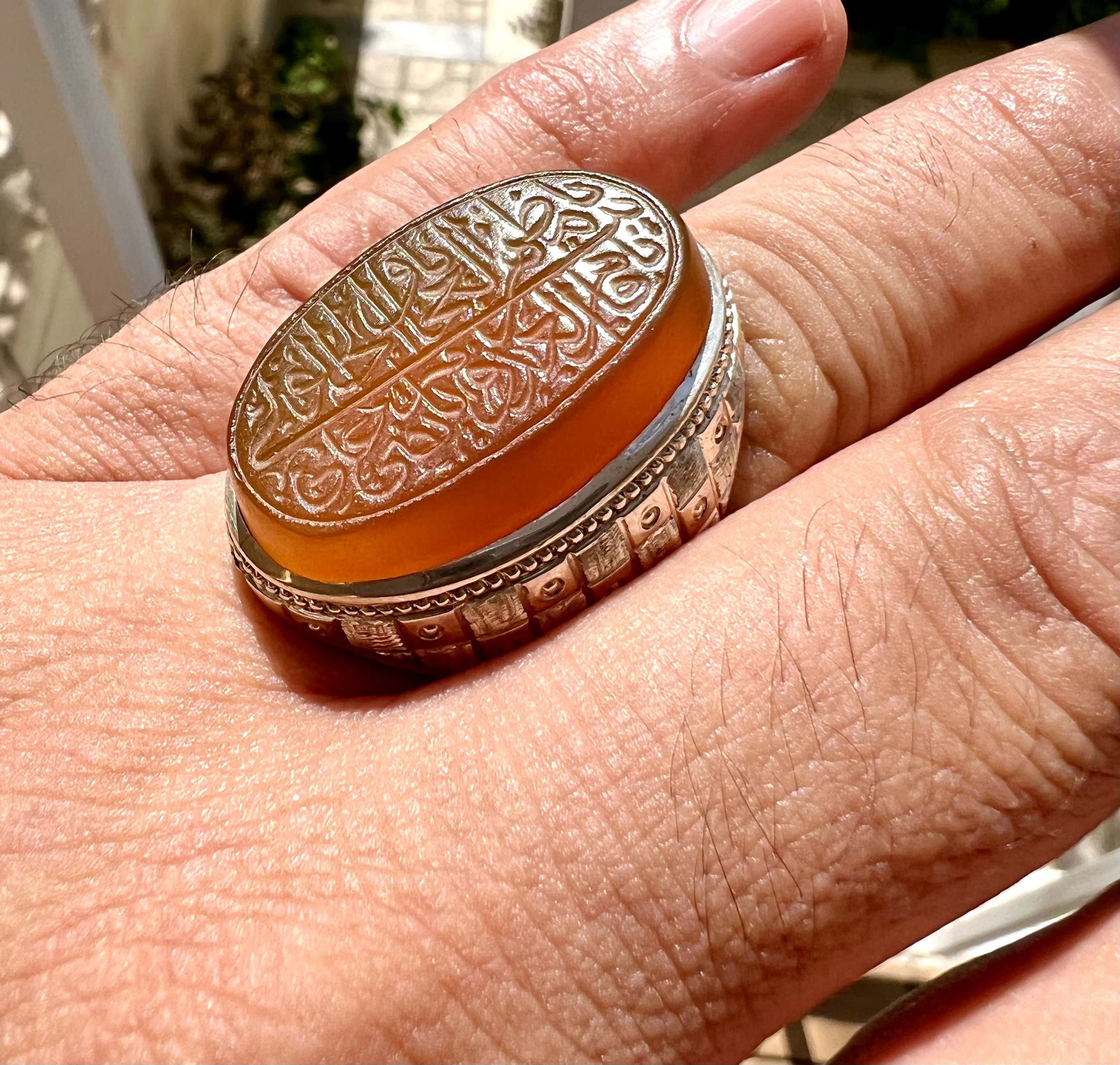 انگشتر عقیق خطی یمنی اصل خط سید عباس ضابطی رکاب دستساز استاد وارسته کد ۳۴۸