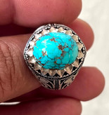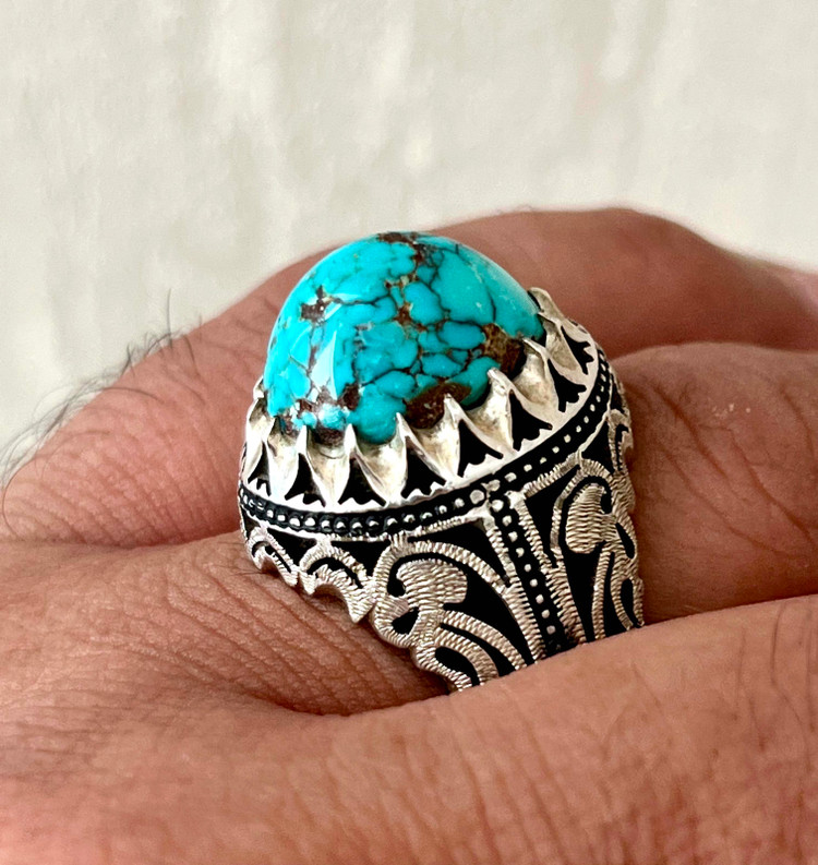 انگشتر فیروزه شجری معدنی و طبیعی بدون احیا رکاب دستساز استاد حداد کد ۳۵۷