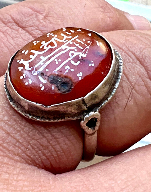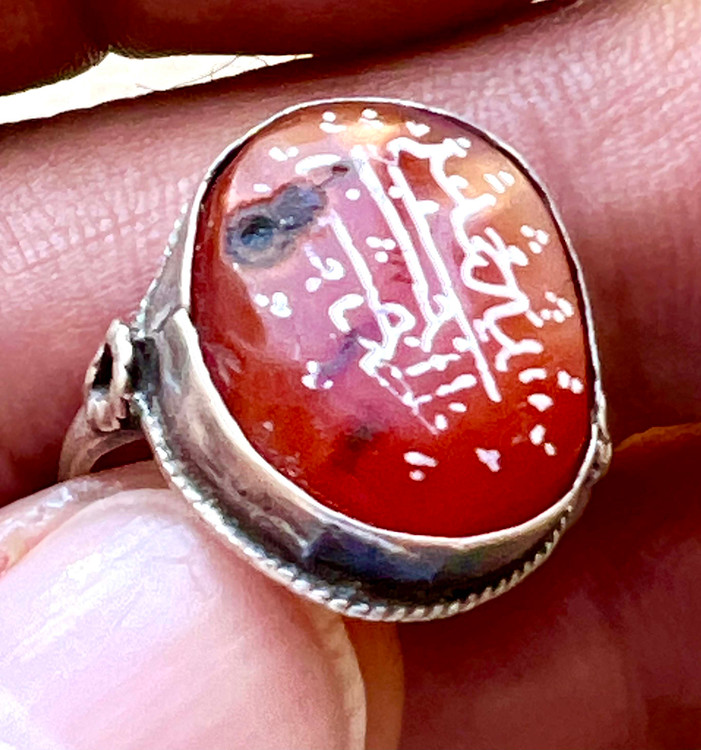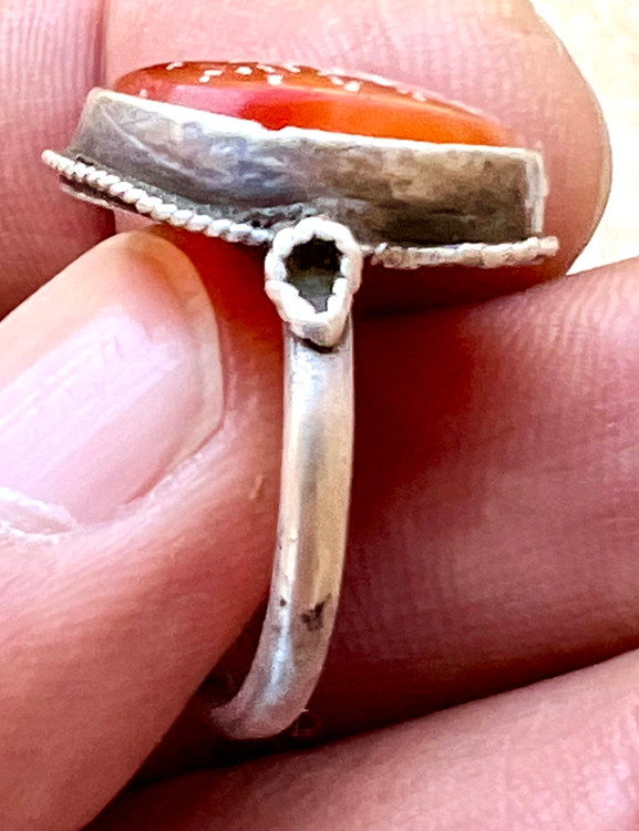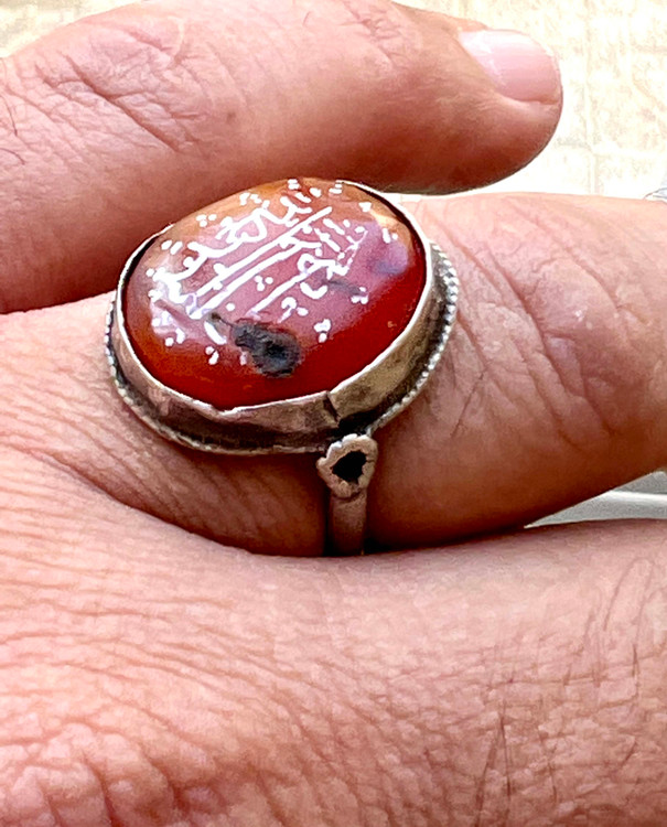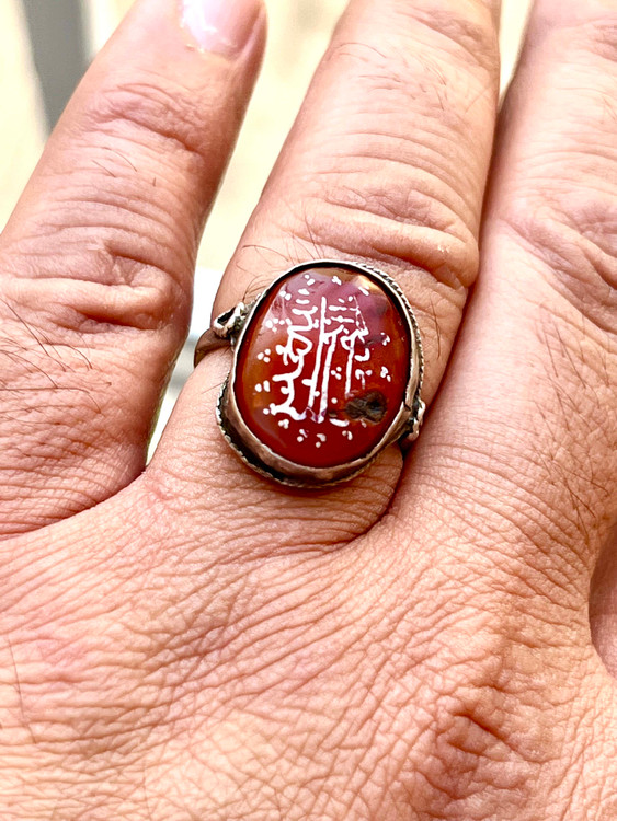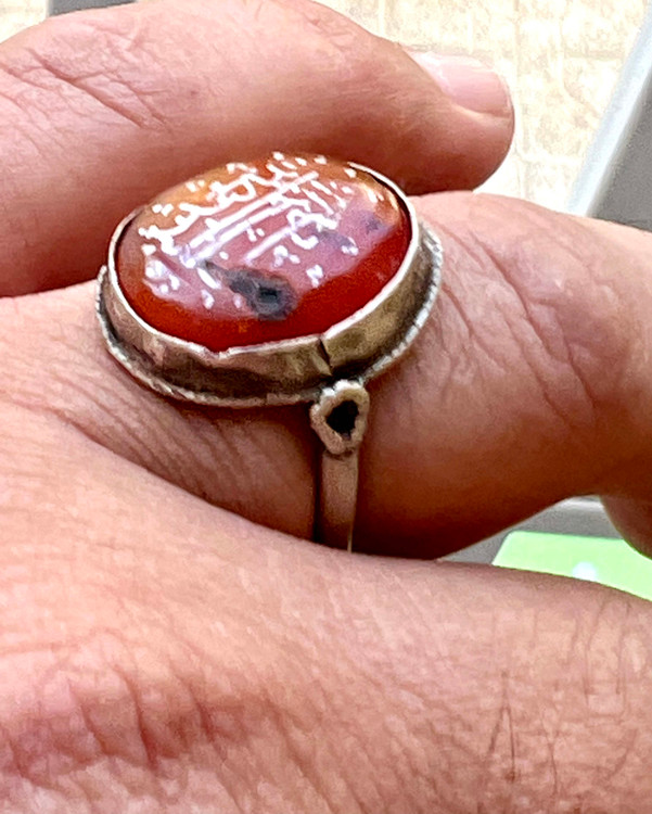عقیق سرخ کهنه یمنی خط بیاضی (پیازی ) صفوی اصیل با رکاب فابریک صفوی