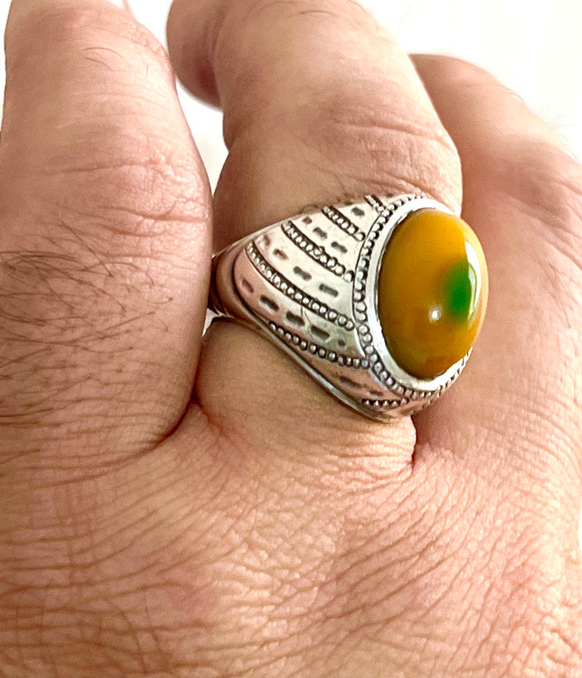 رکاب فابریک و زیبای استاد نامی با عقیق دو پوست طبیعی کلکسیونی و خوشرنگ