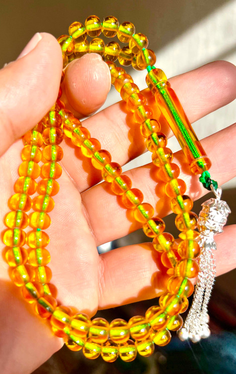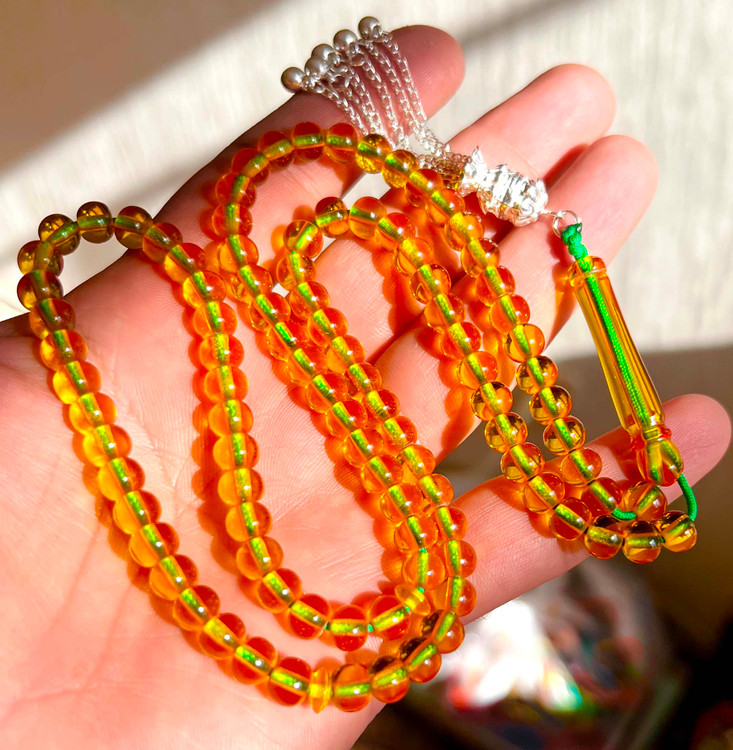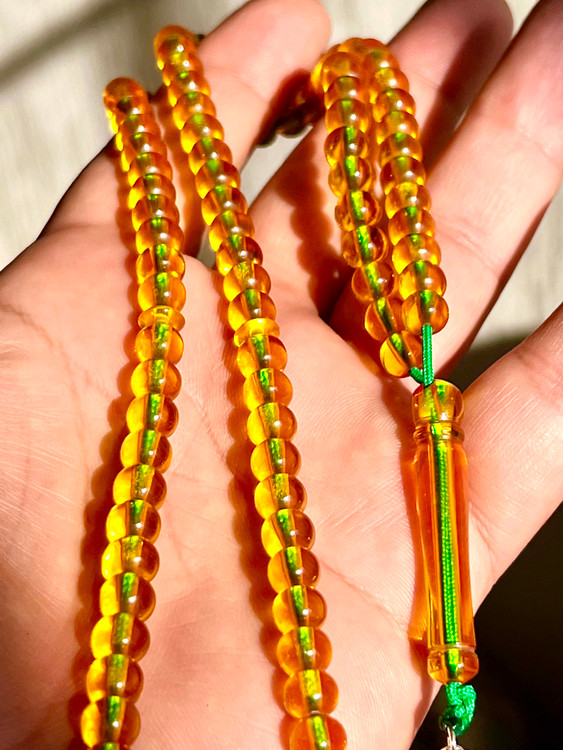تسبیح سندلوس نباتی زعفرانی شمش اوریجینال خوشرنگ