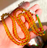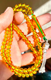 تسبیح سندلوس نباتی زعفرانی شمش اورجینال درجه ۱ تراش سه ساله کد ۳۶۲