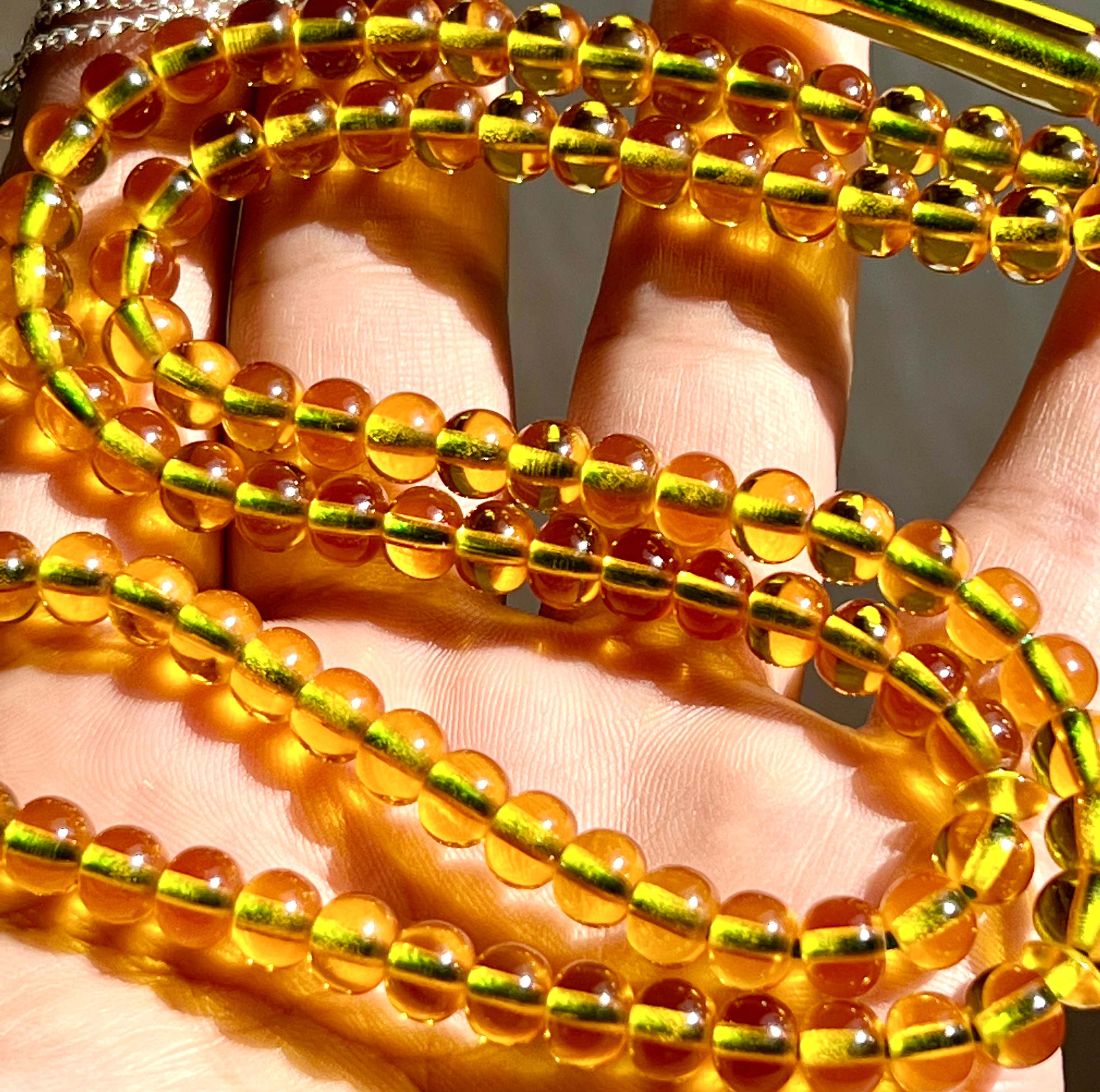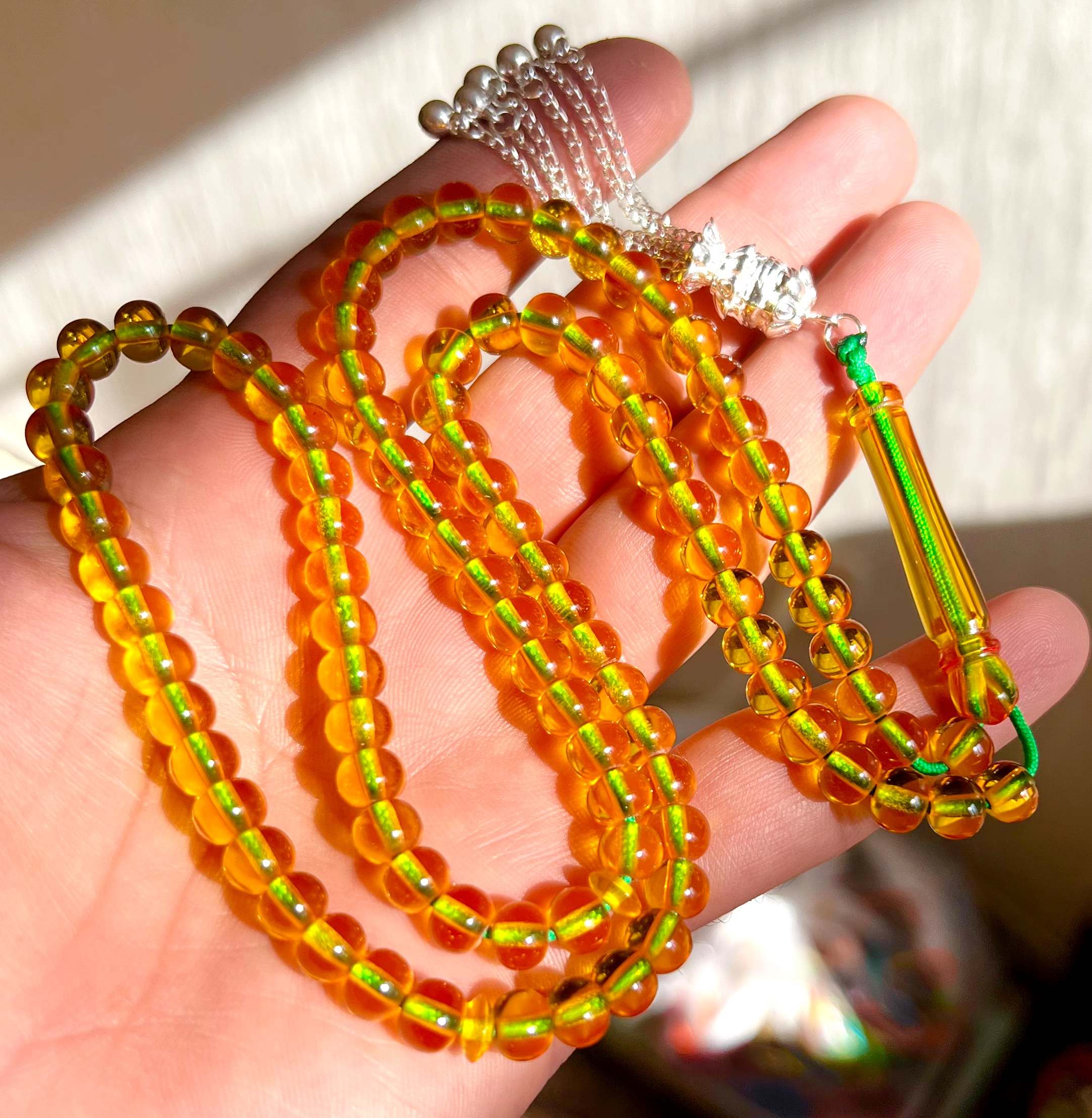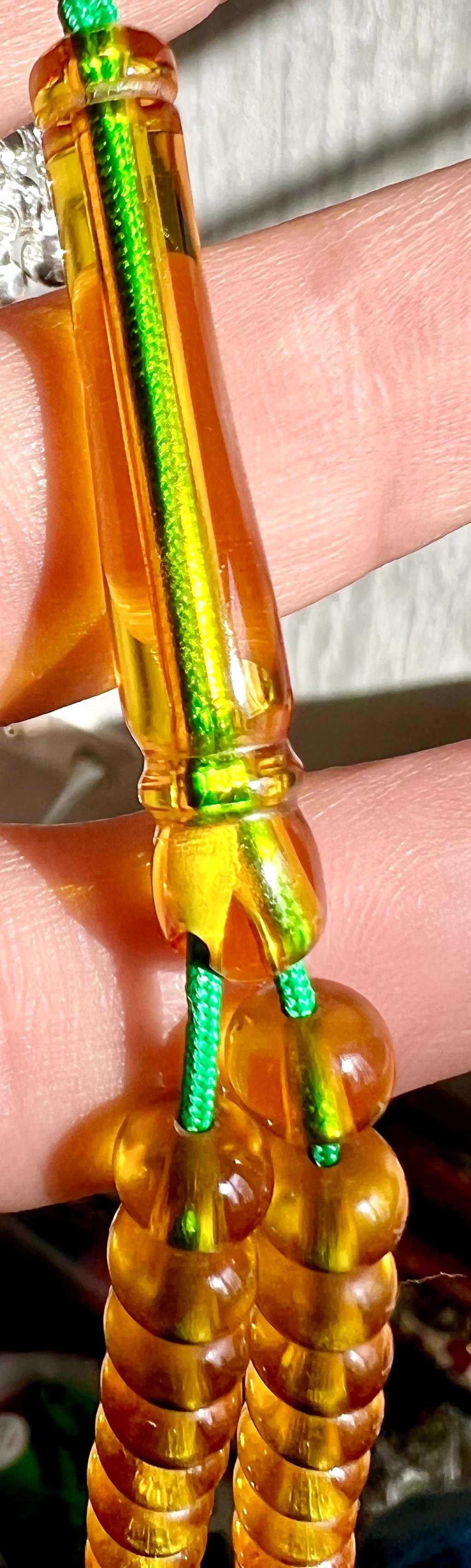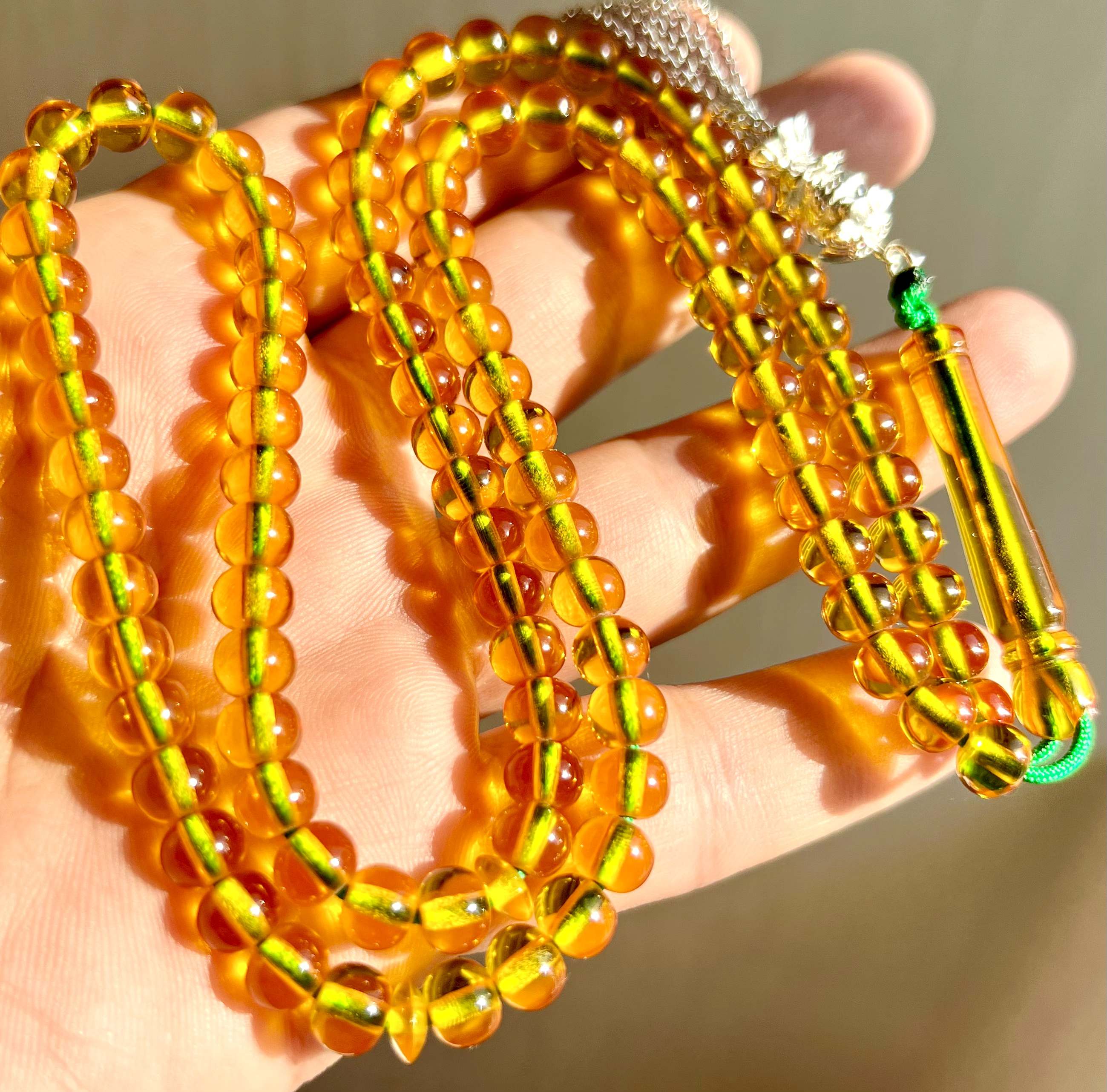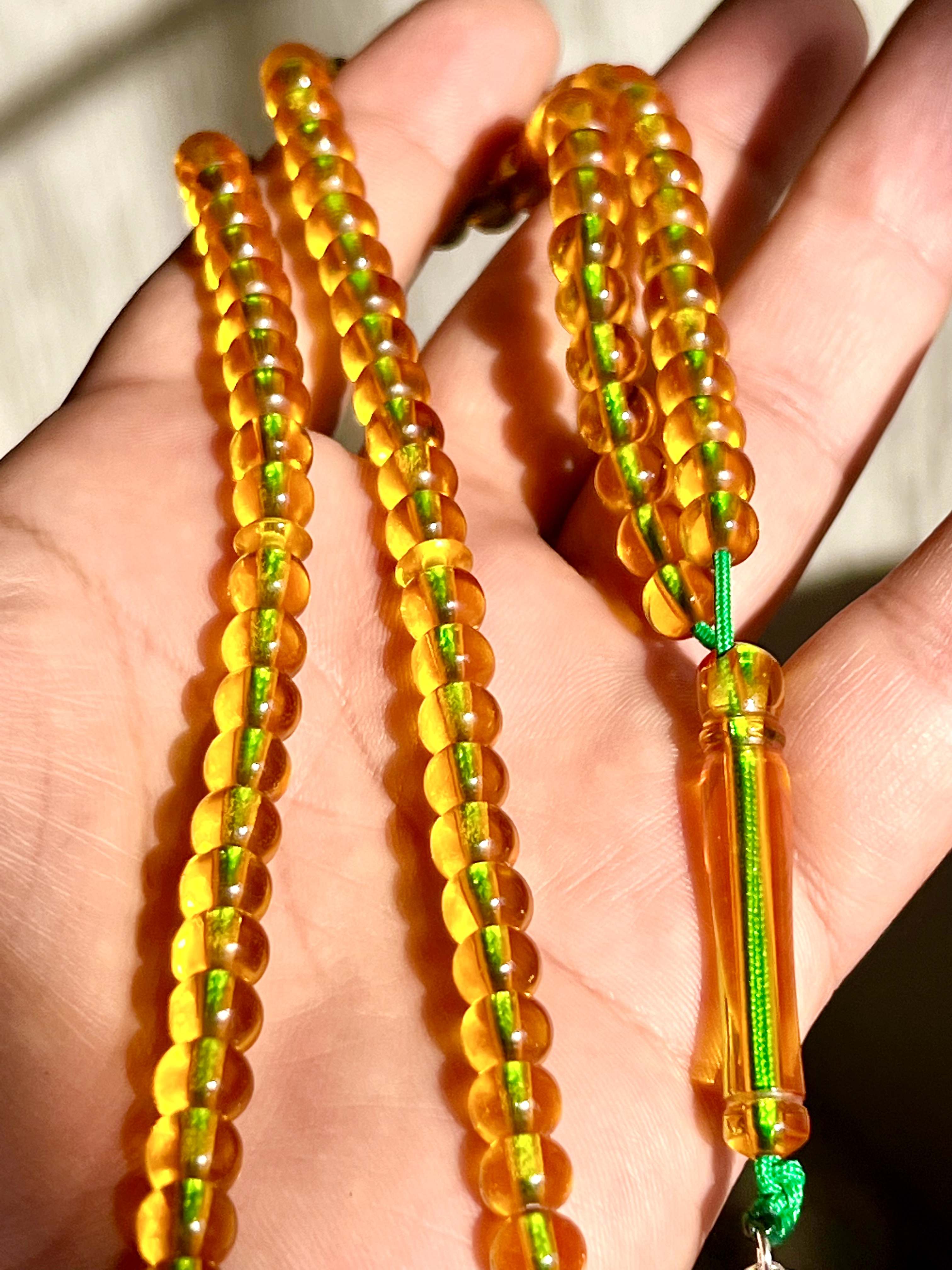 تسبیح سندلوس نباتی زعفرانی شمش اورجینال درجه ۱ تراش سه ساله کد ۳۶۲