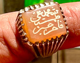 انگشتر نقره قدیمی با عقیق کهنه یمنی و خط بیاضی صفوی