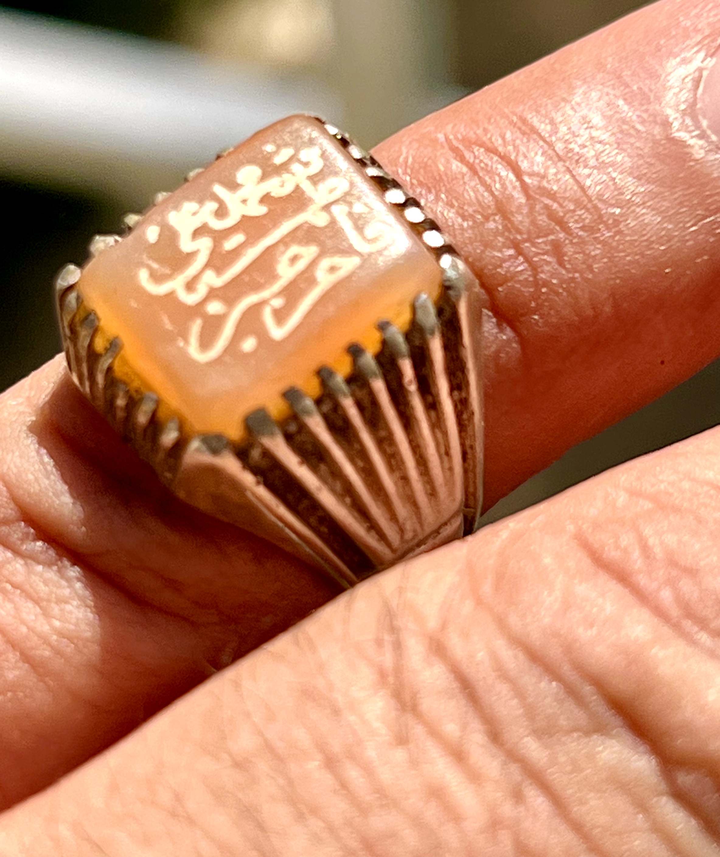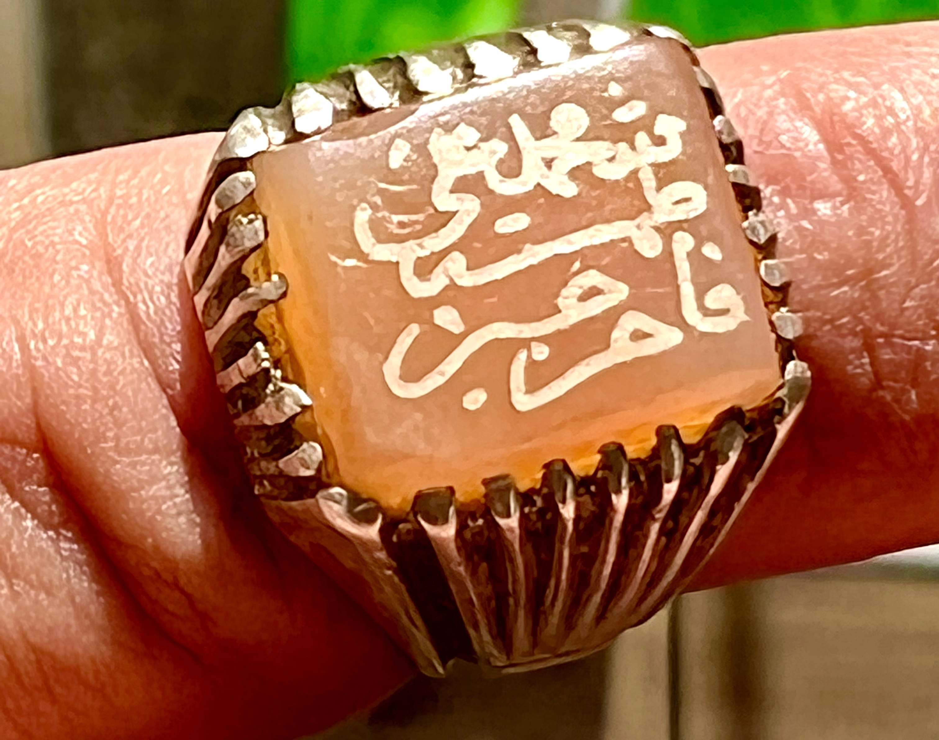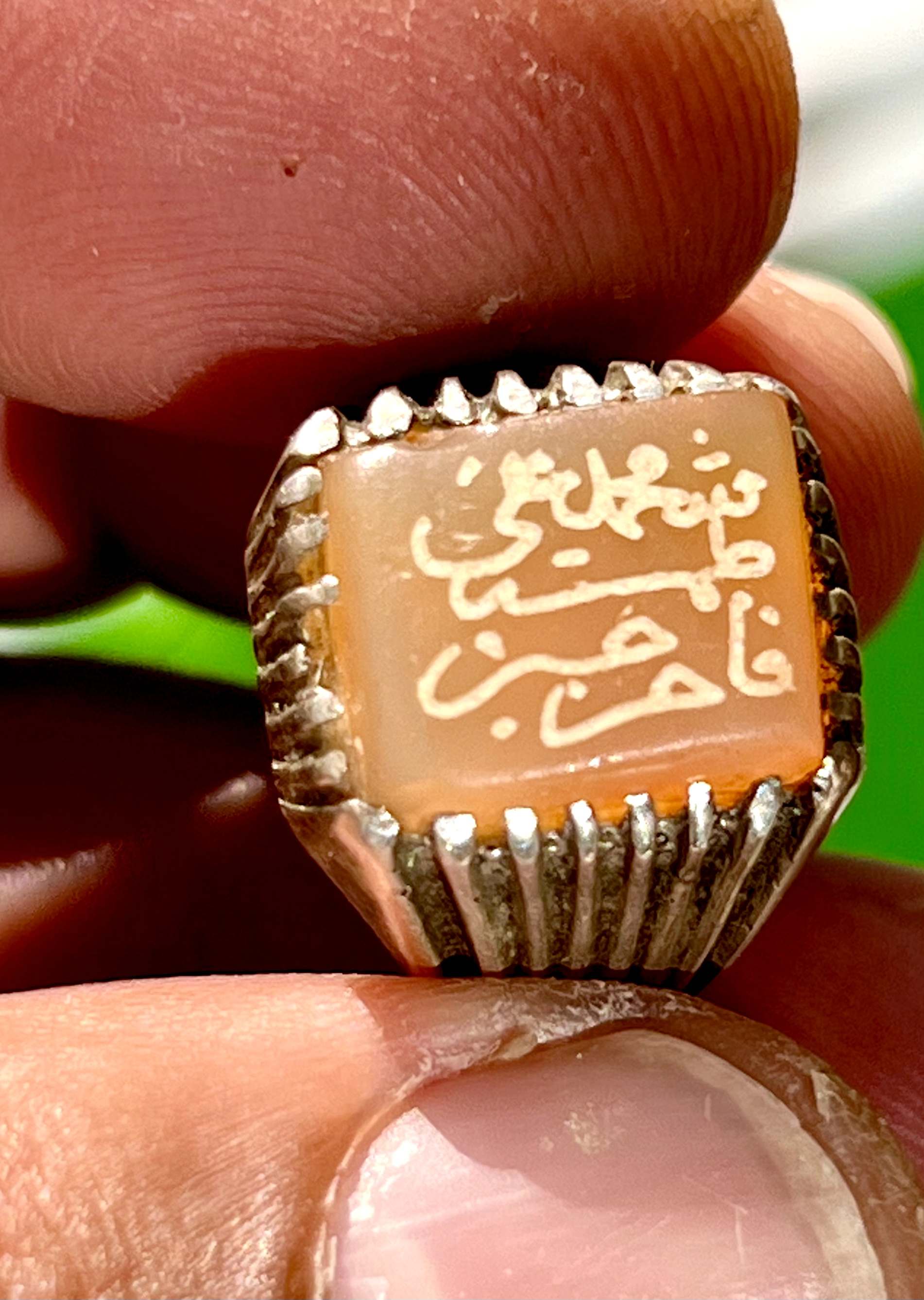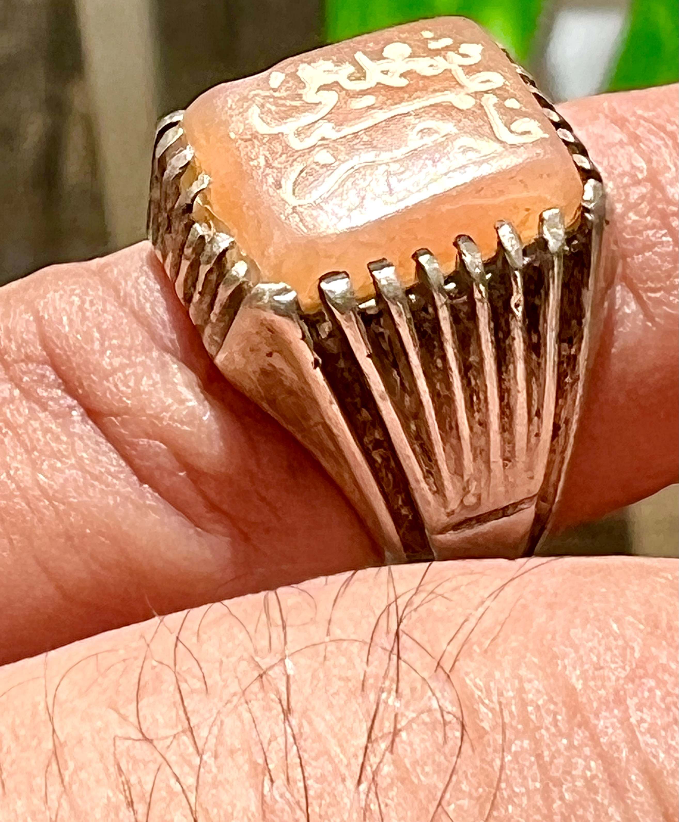 انگشتر نقره قدیمی با عقیق کهنه یمنی و خط بیاضی صفوی