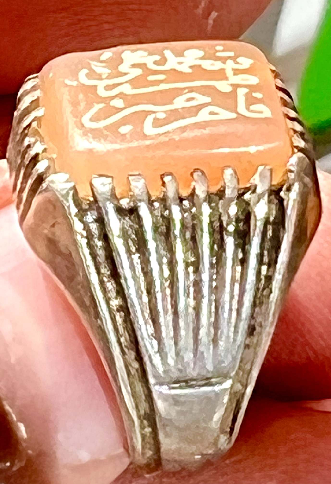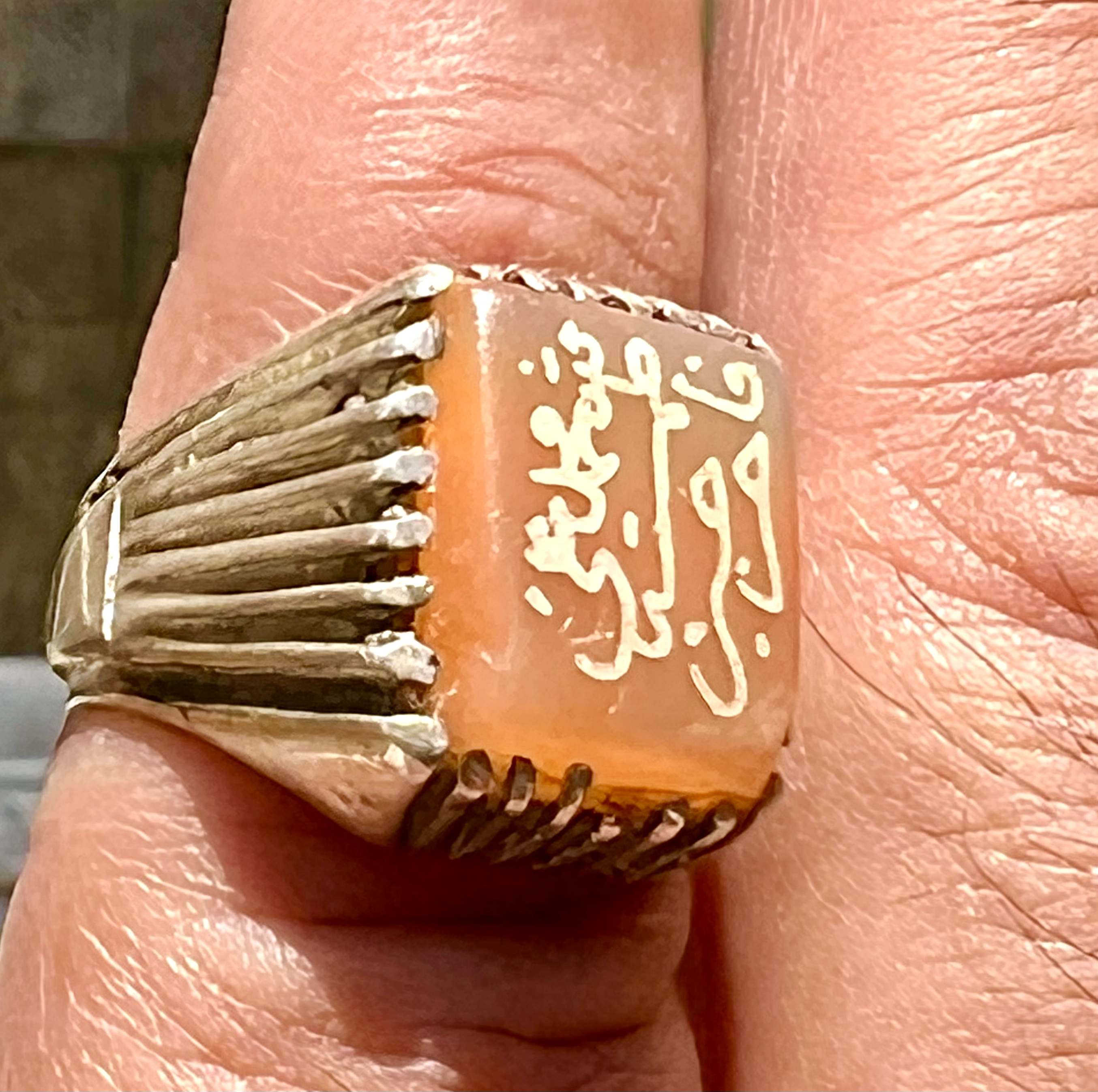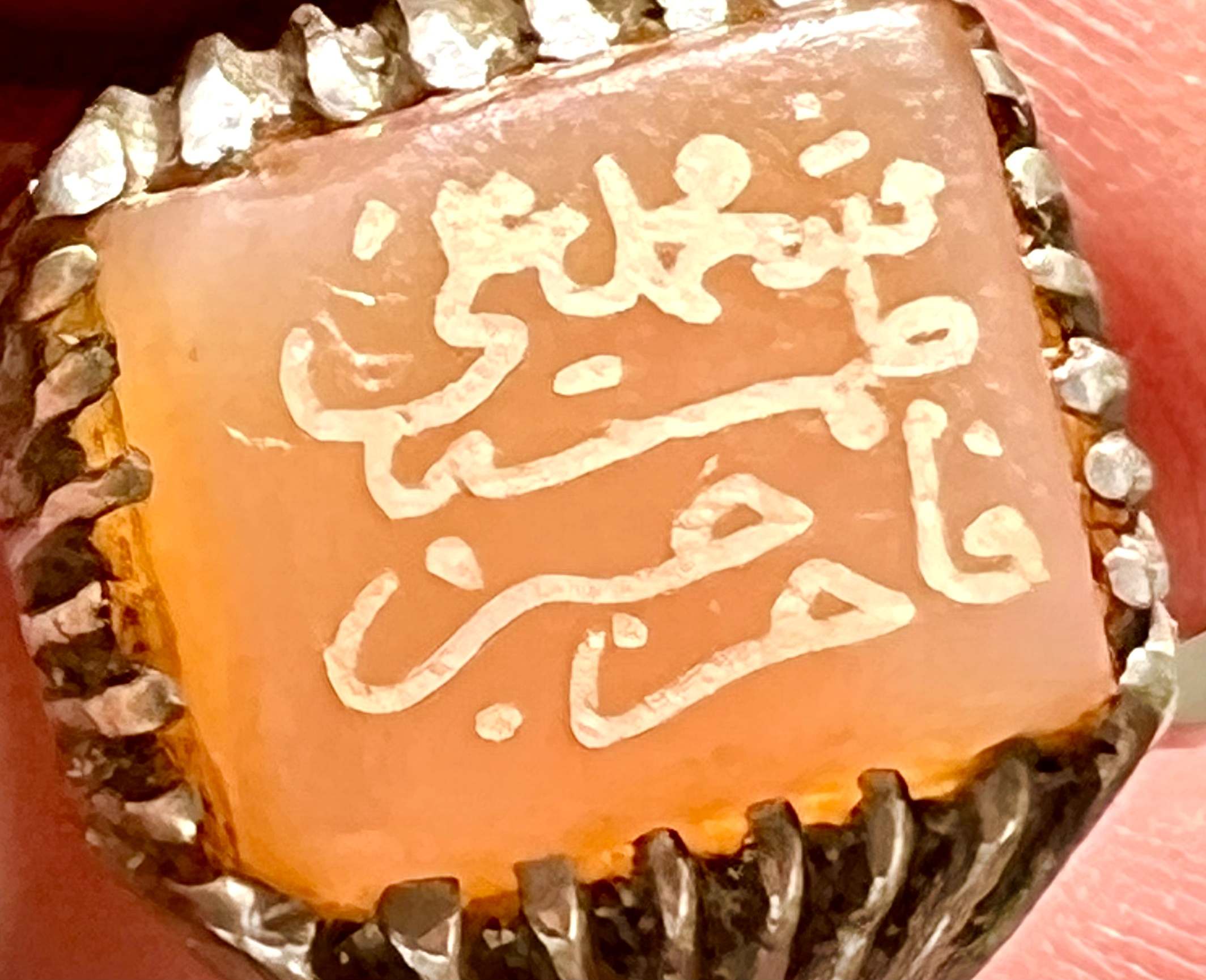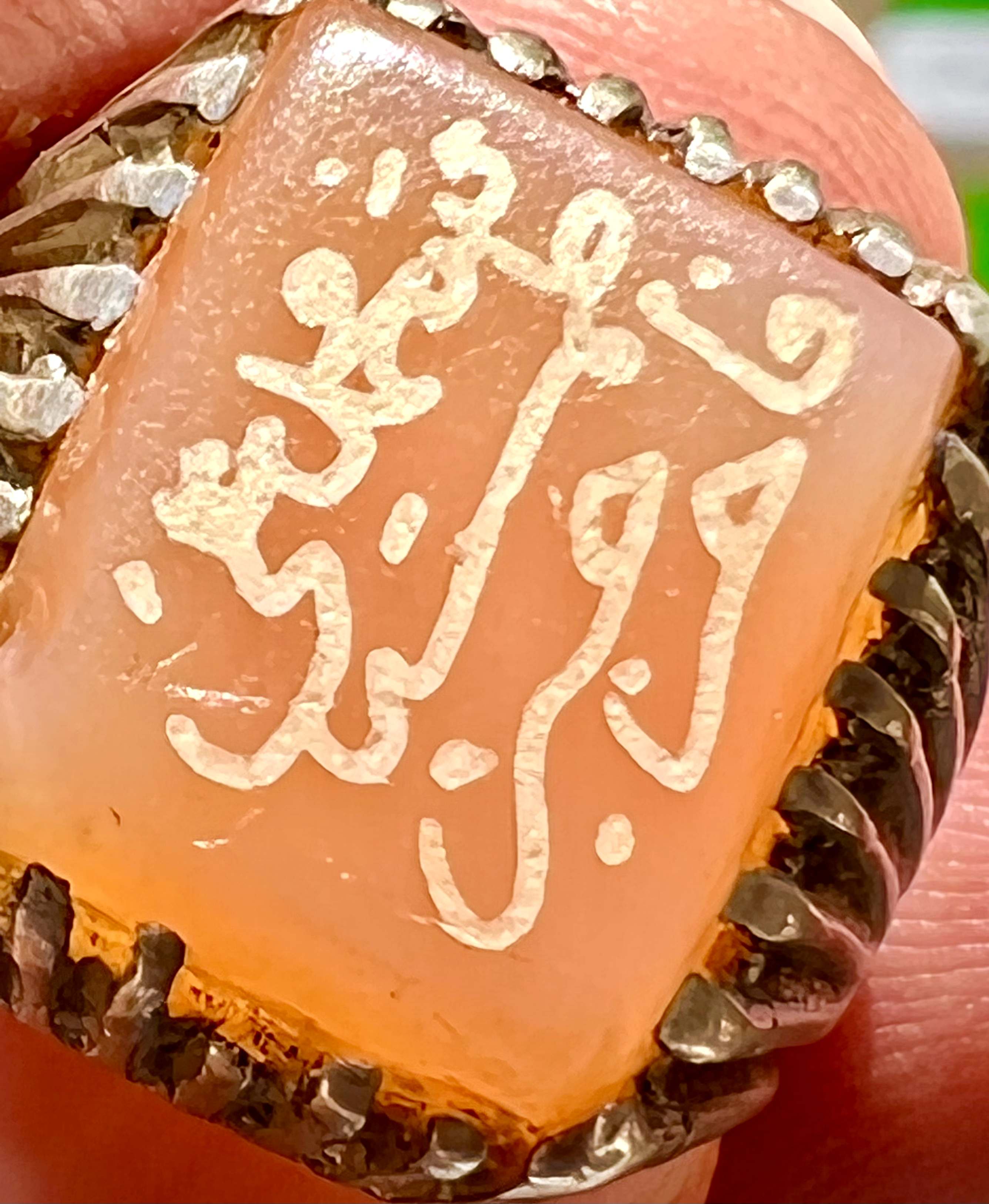 انگشتر نقره قدیمی با عقیق کهنه یمنی و خط بیاضی صفوی