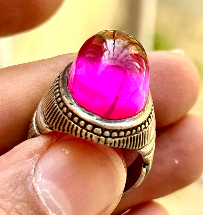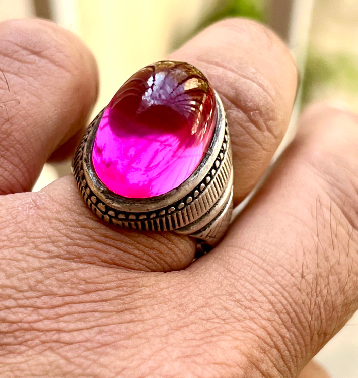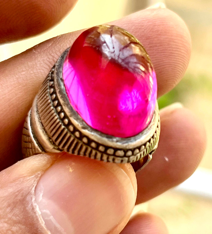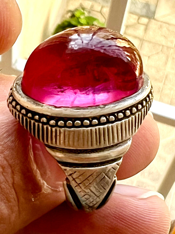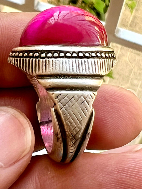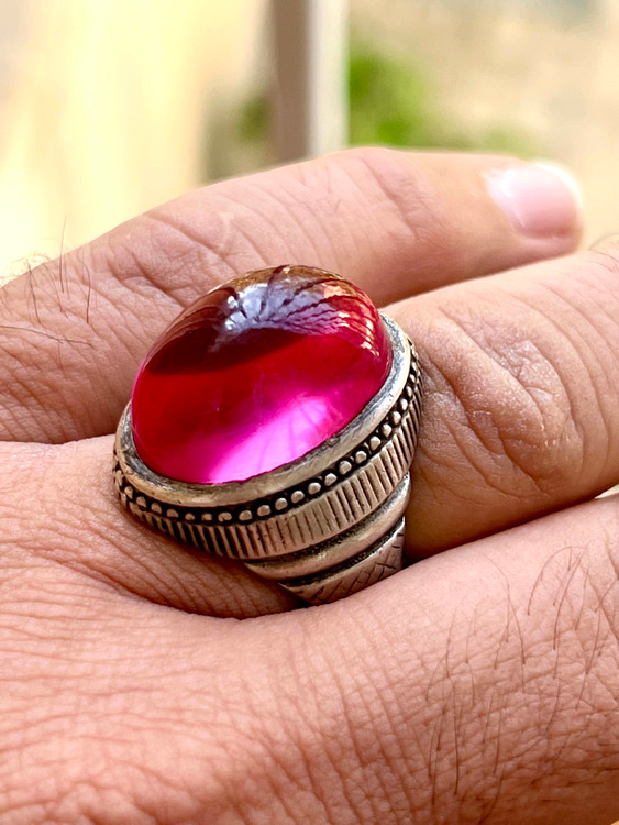 انگشتر نقره قدیمی -لعل پیازی کهنه