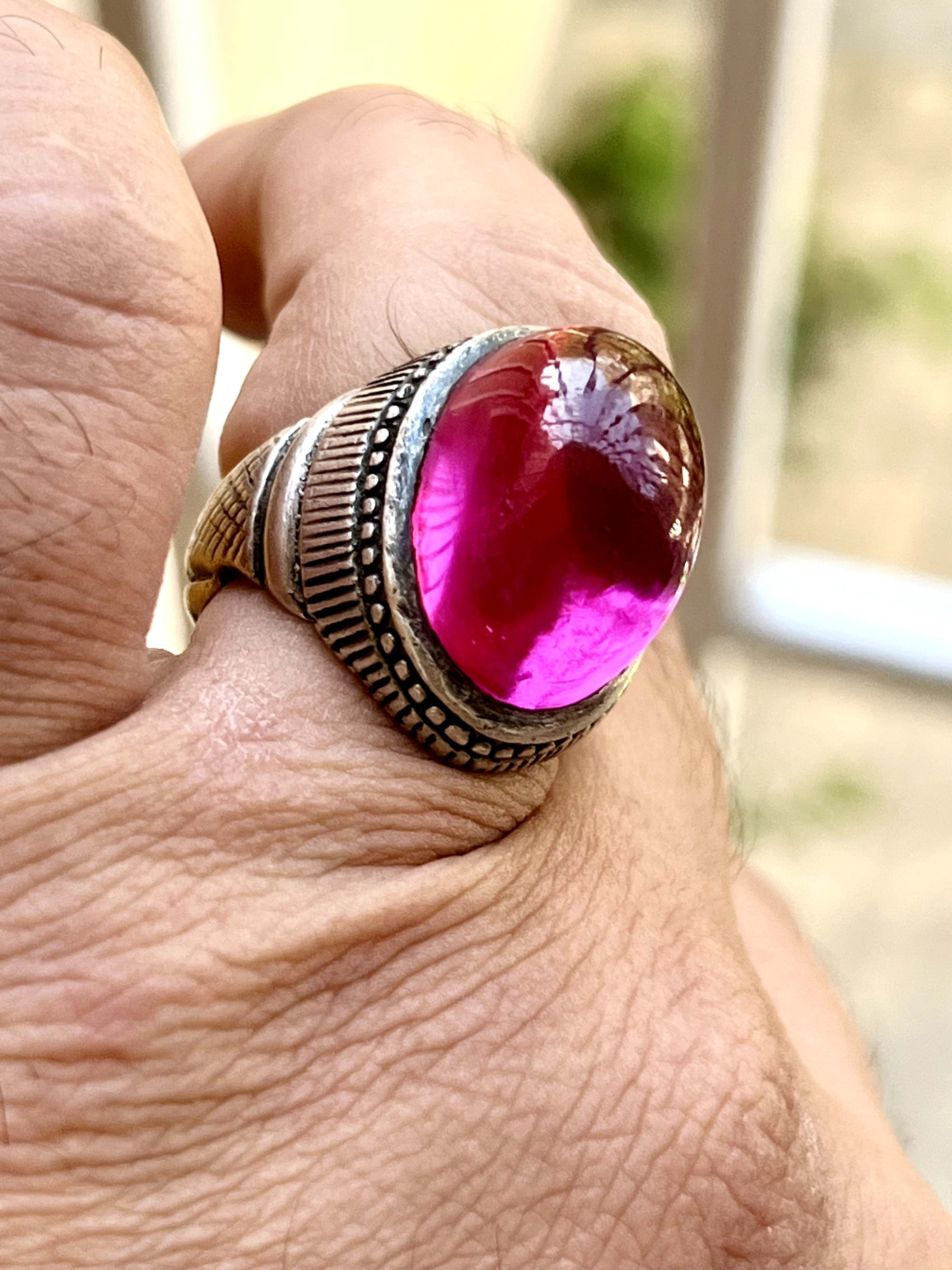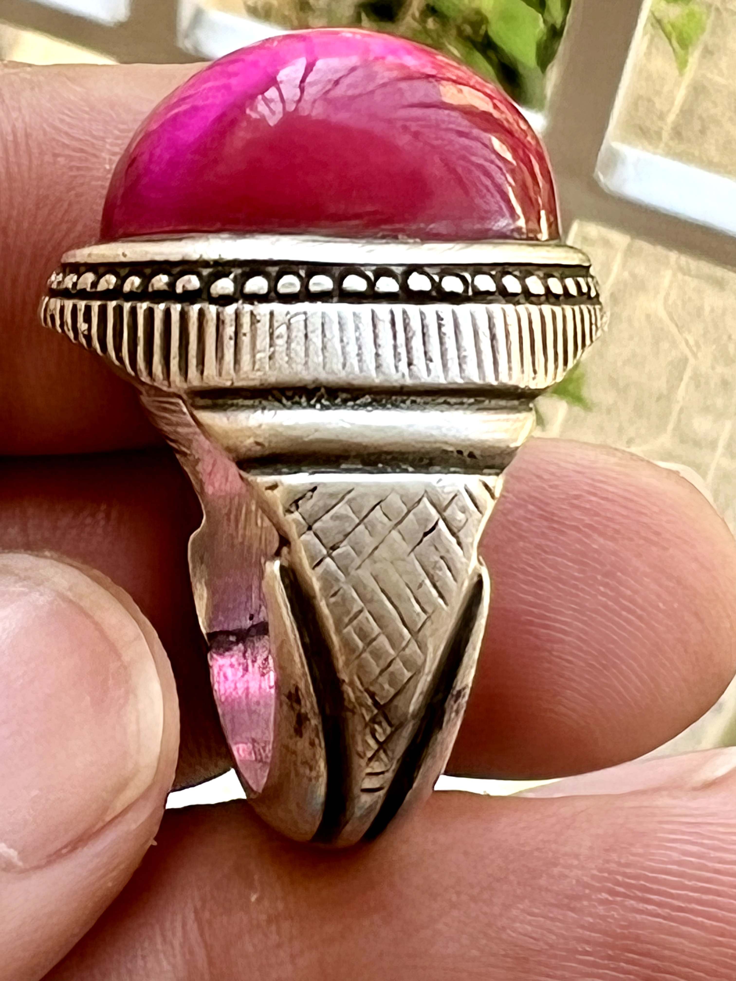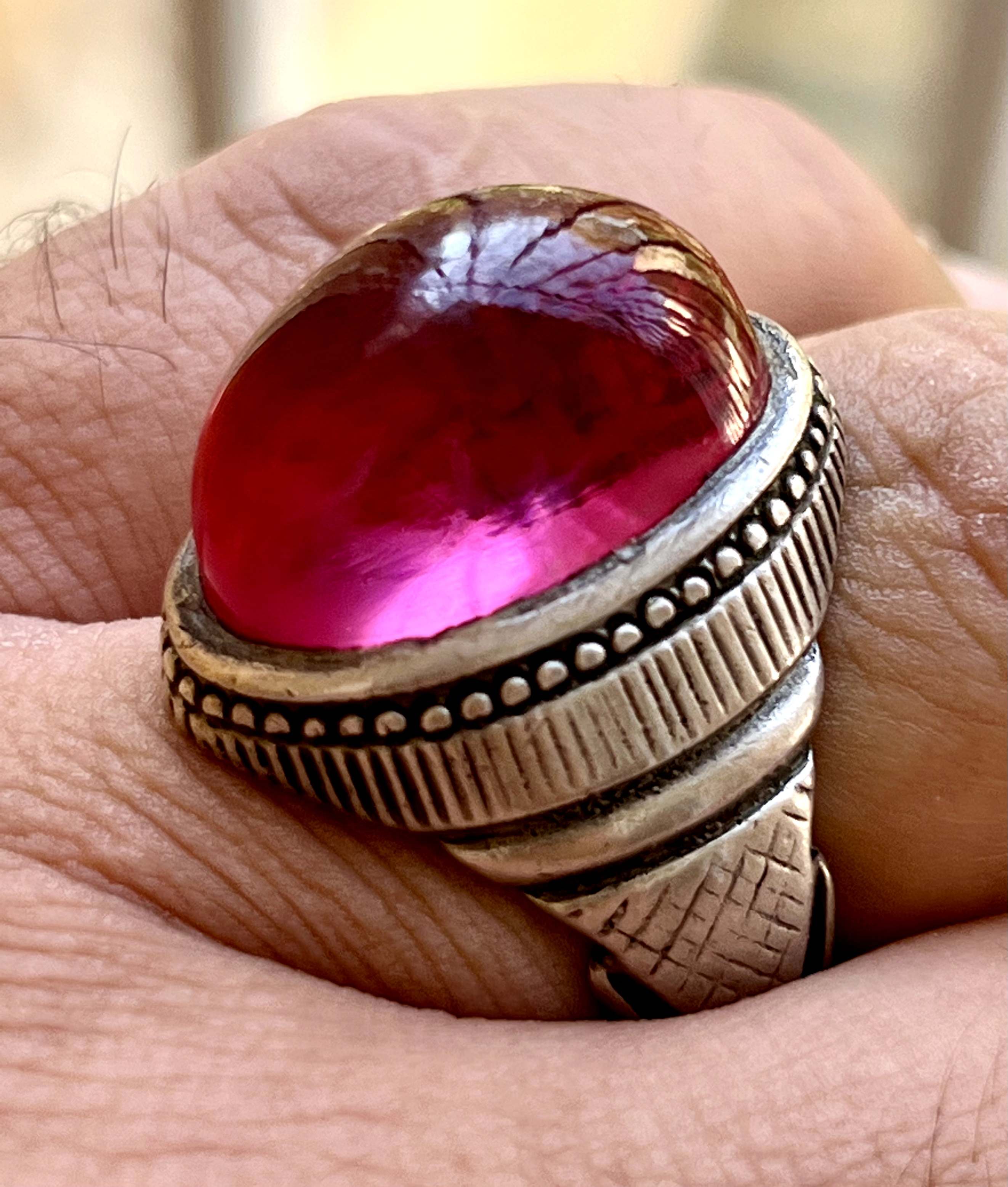 انگشتر نقره قدیمی -لعل پیازی کهنه