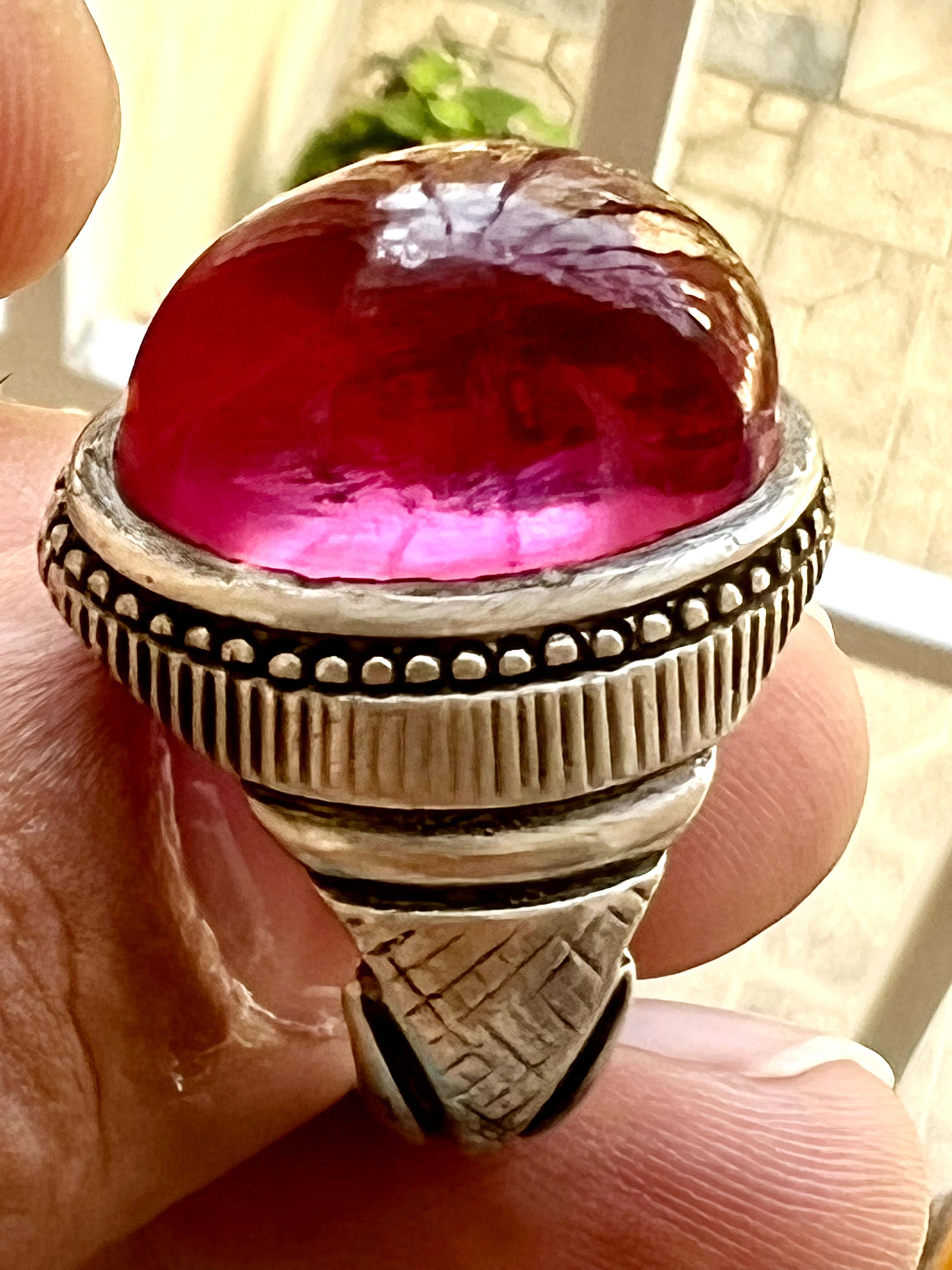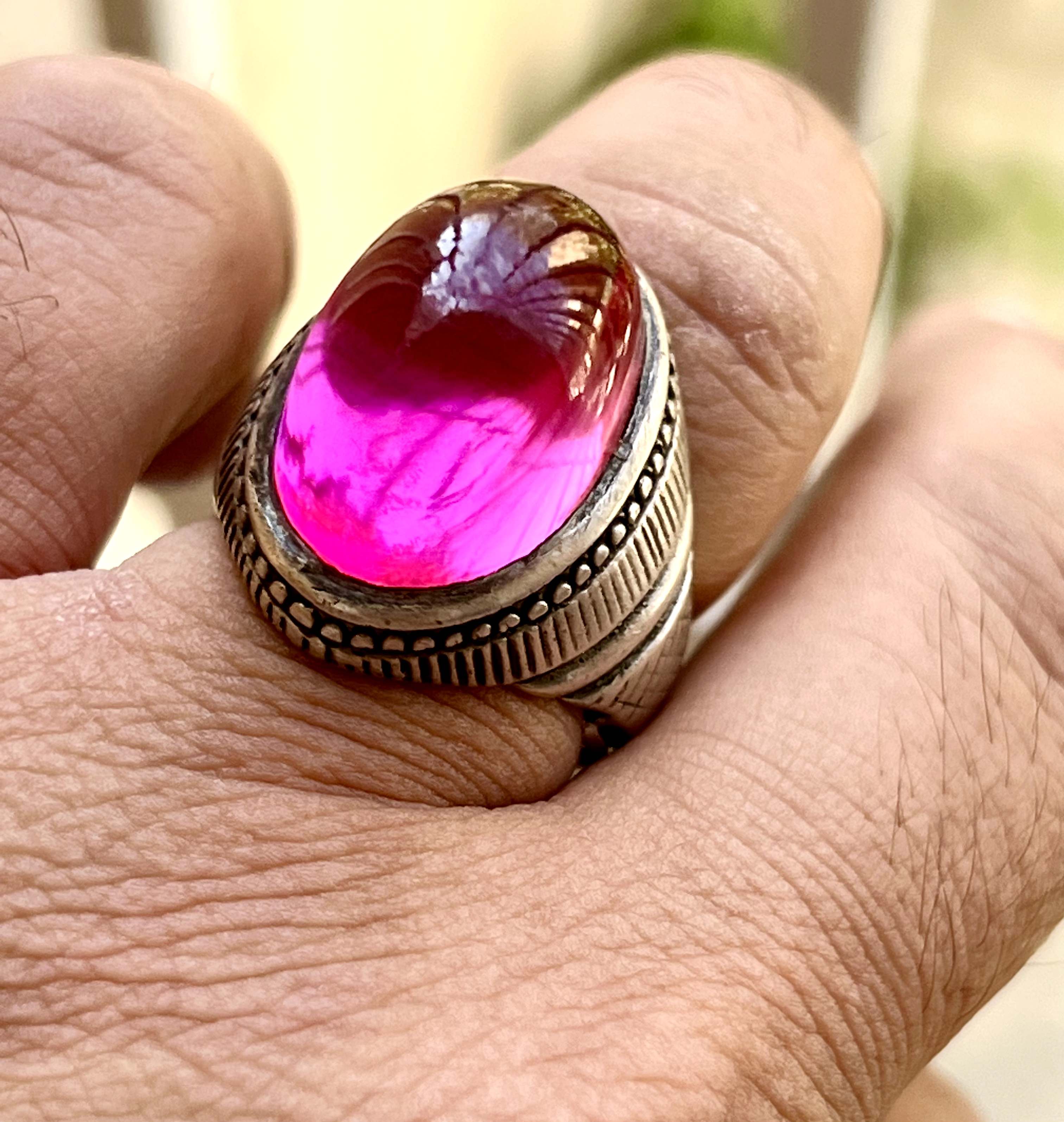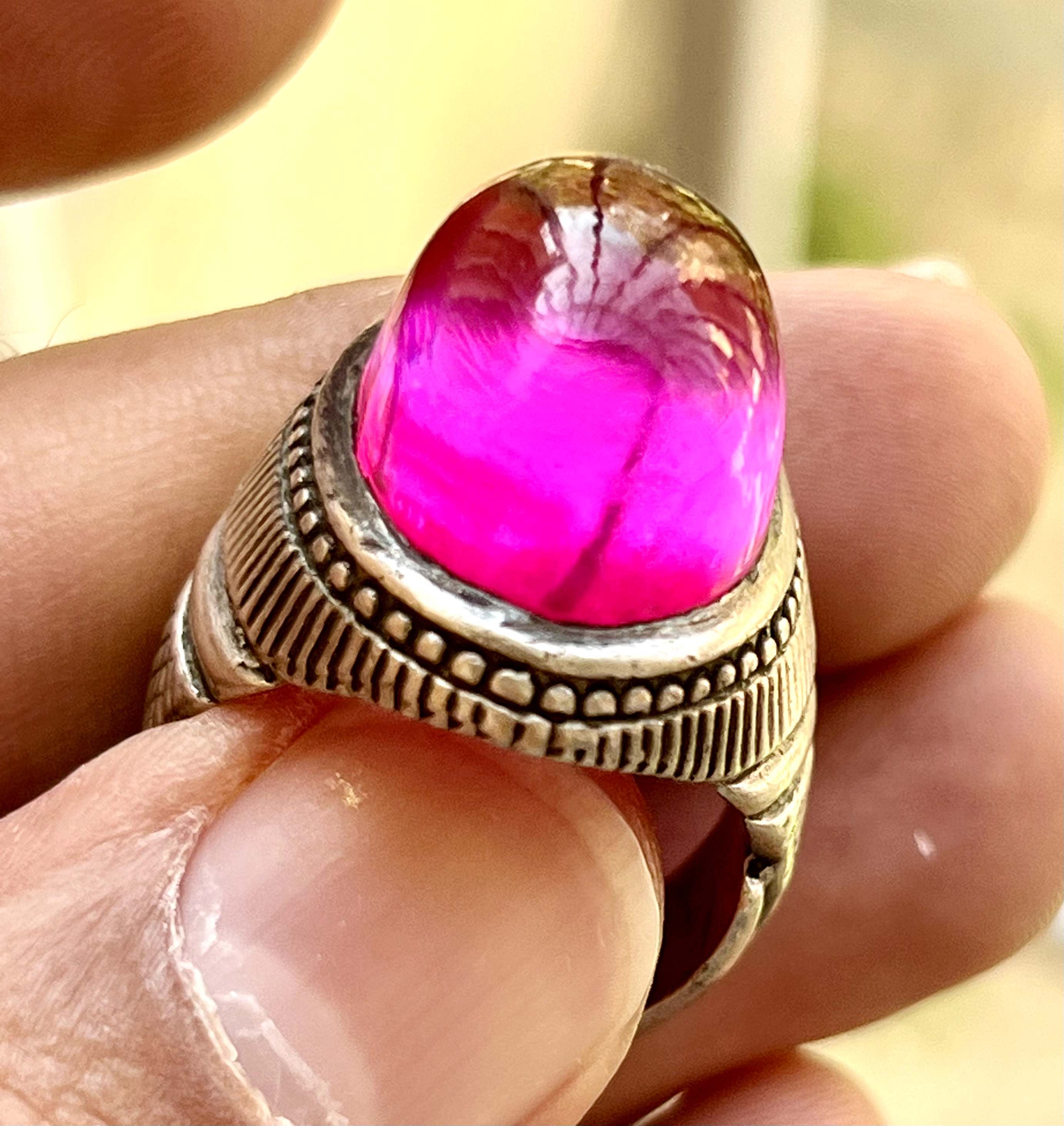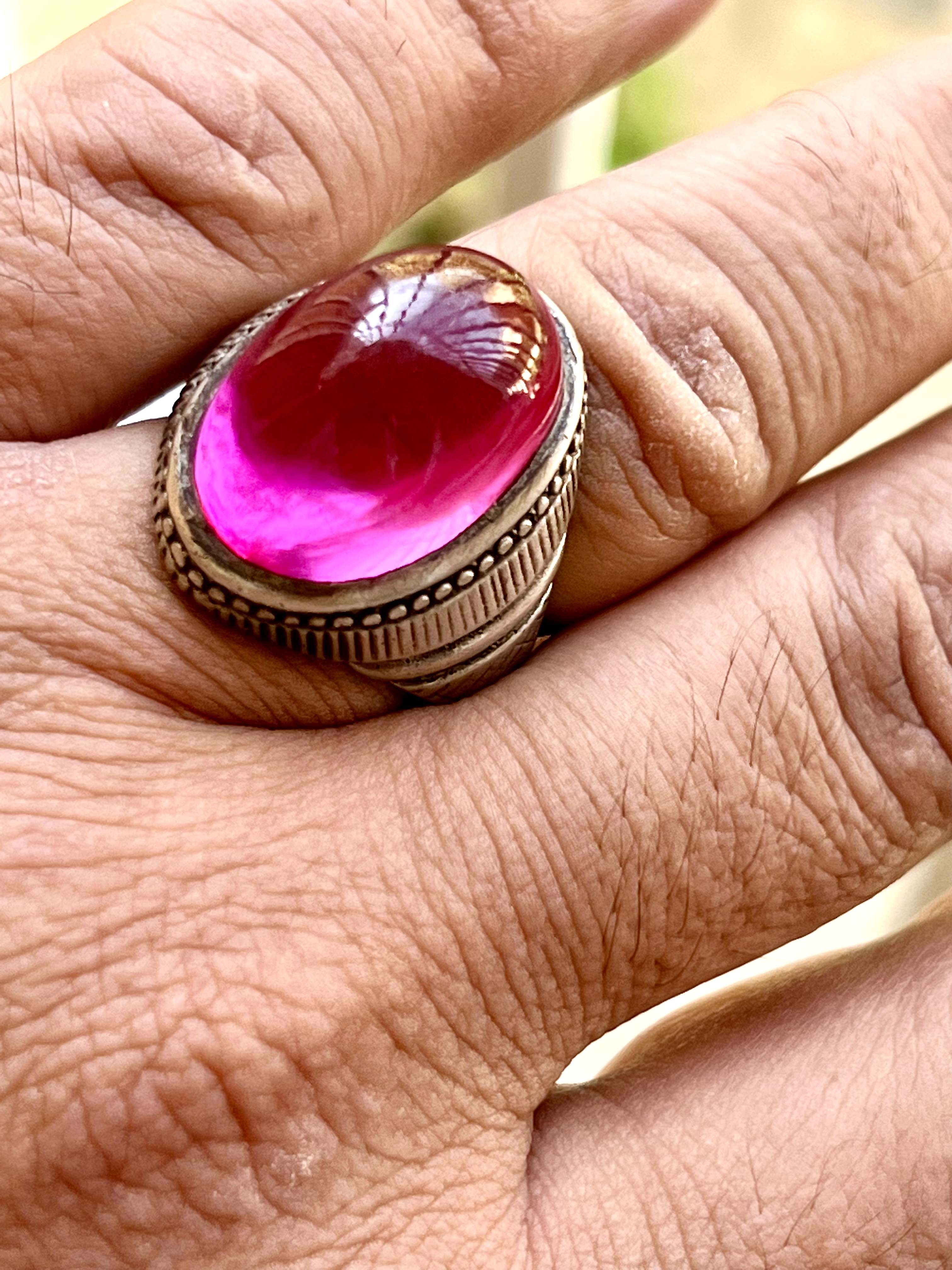 انگشتر نقره قدیمی -لعل پیازی کهنه
