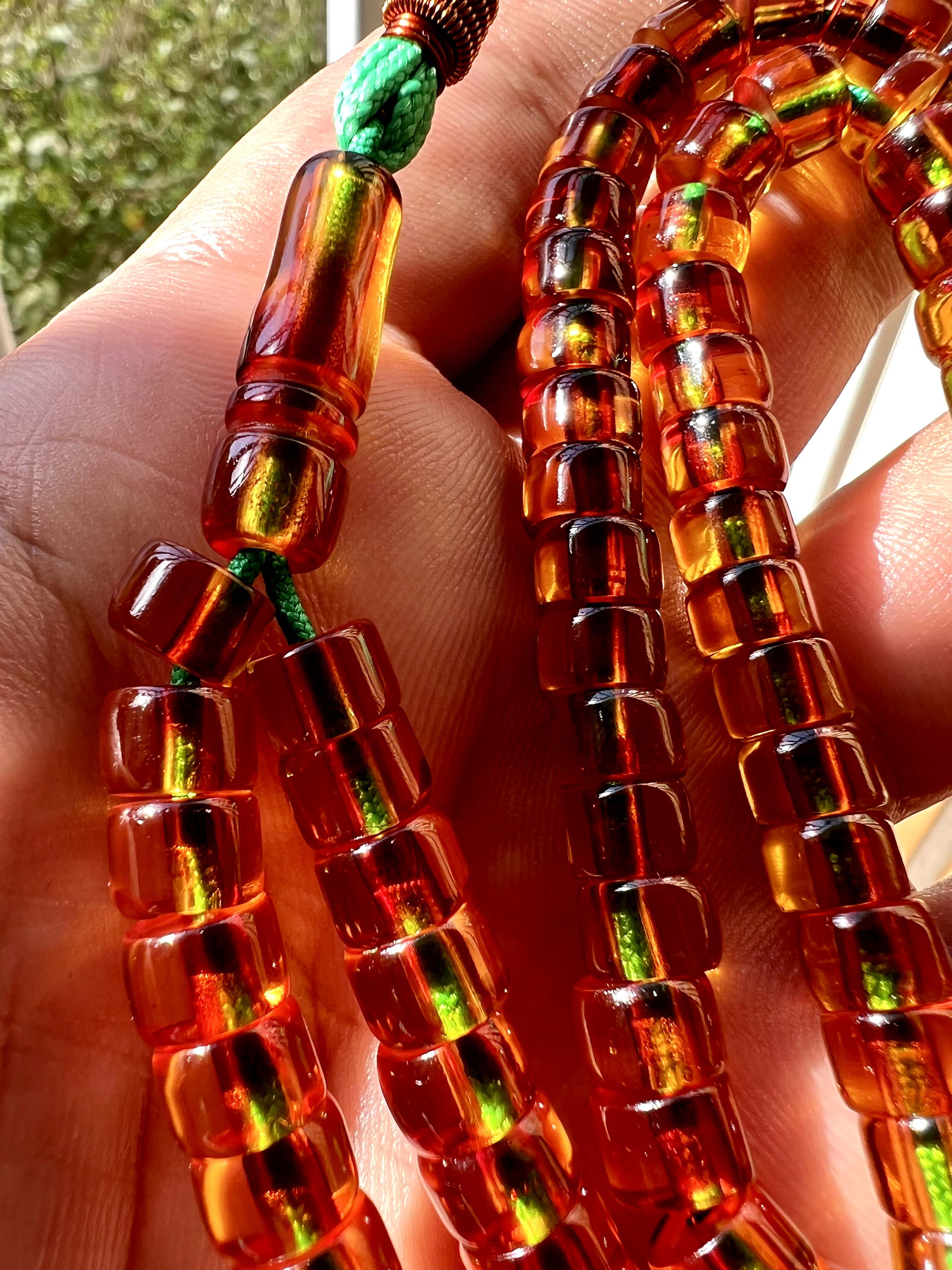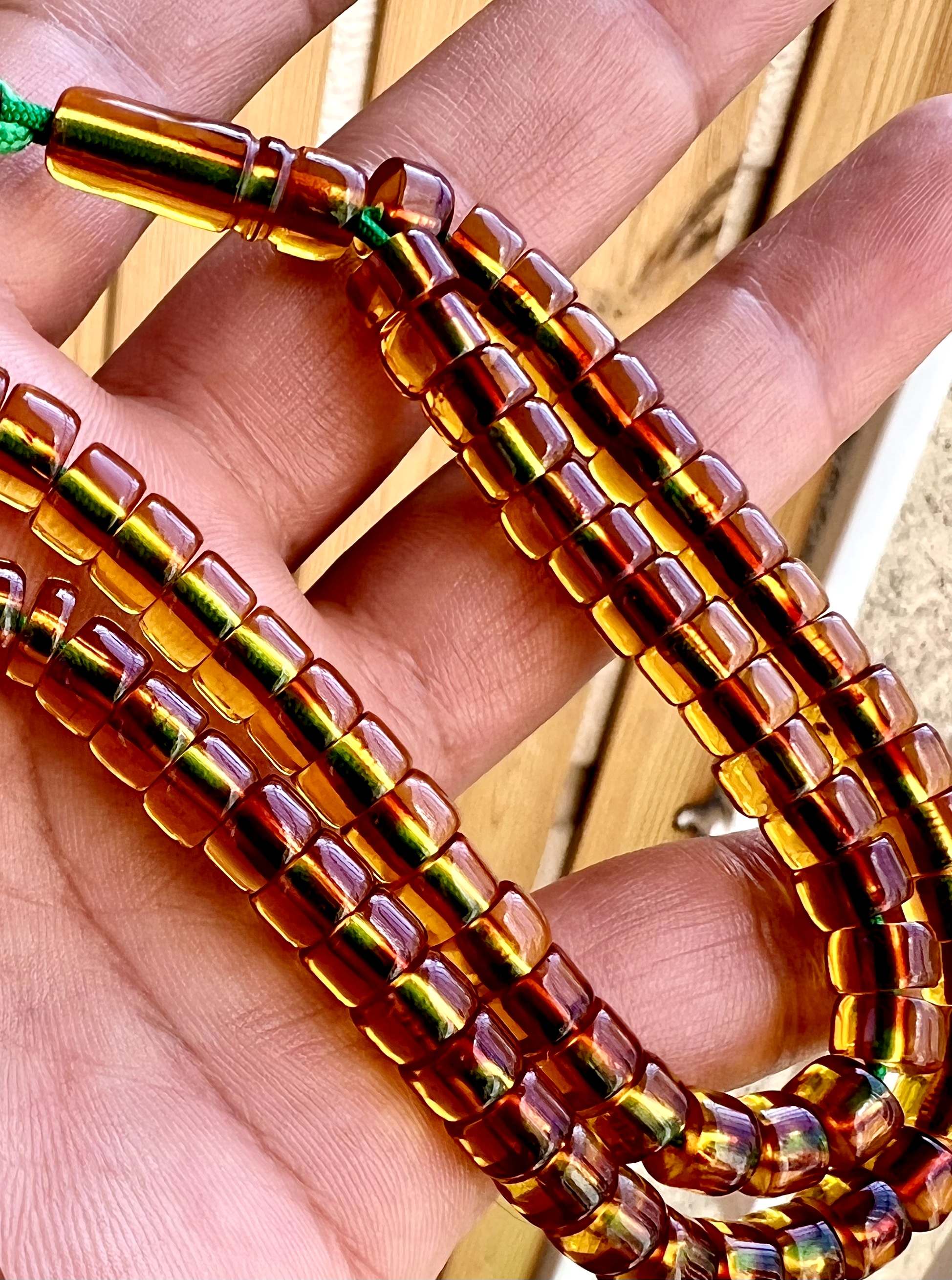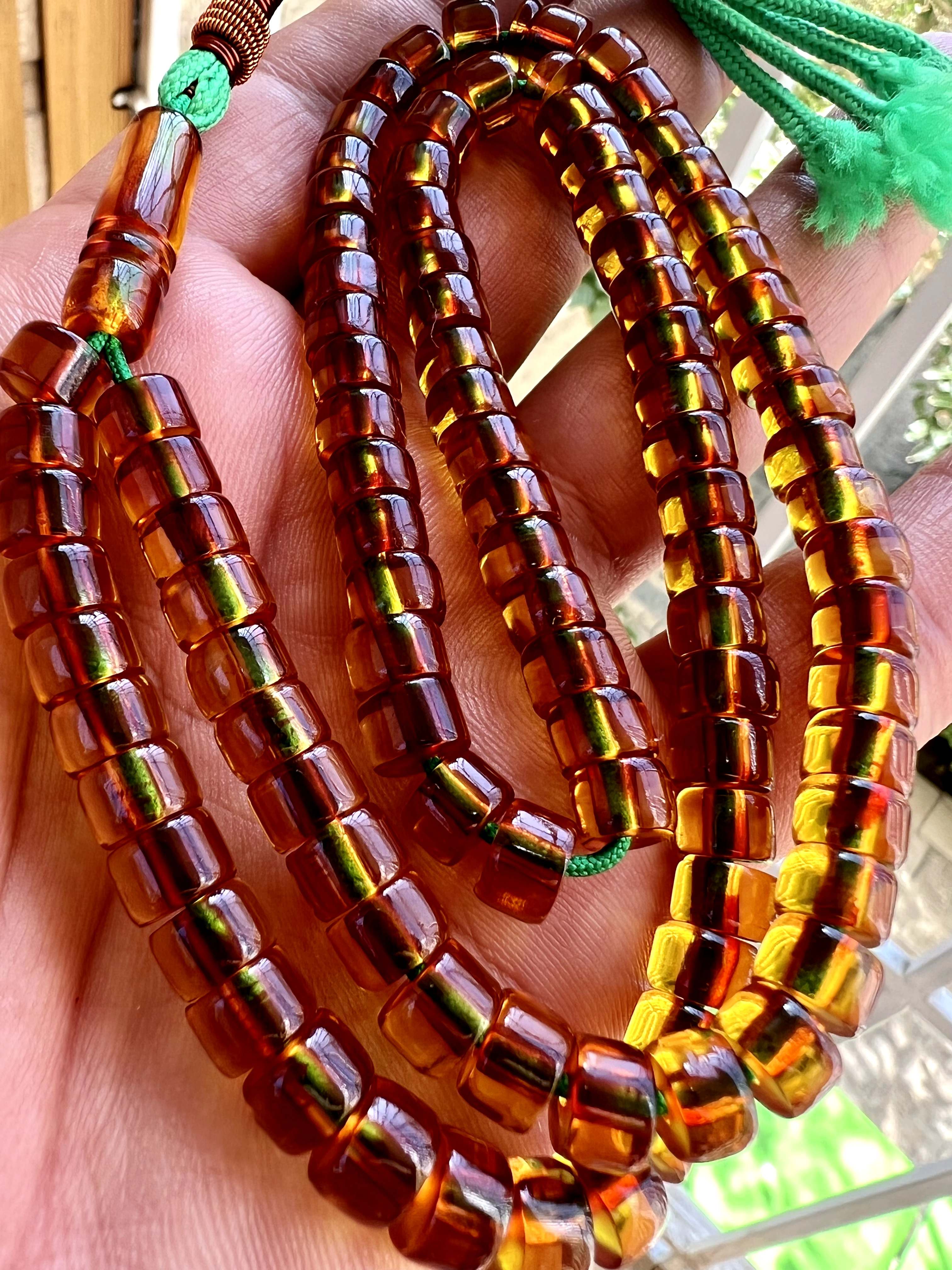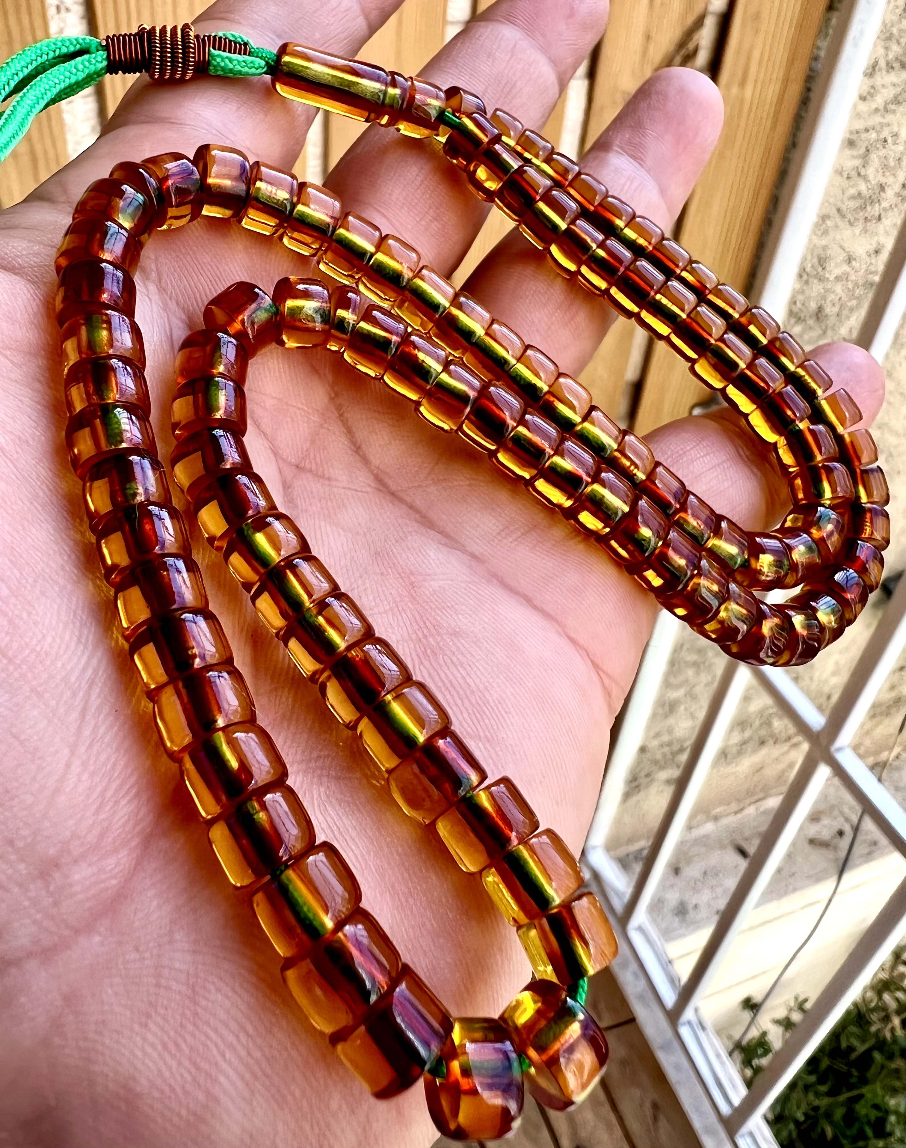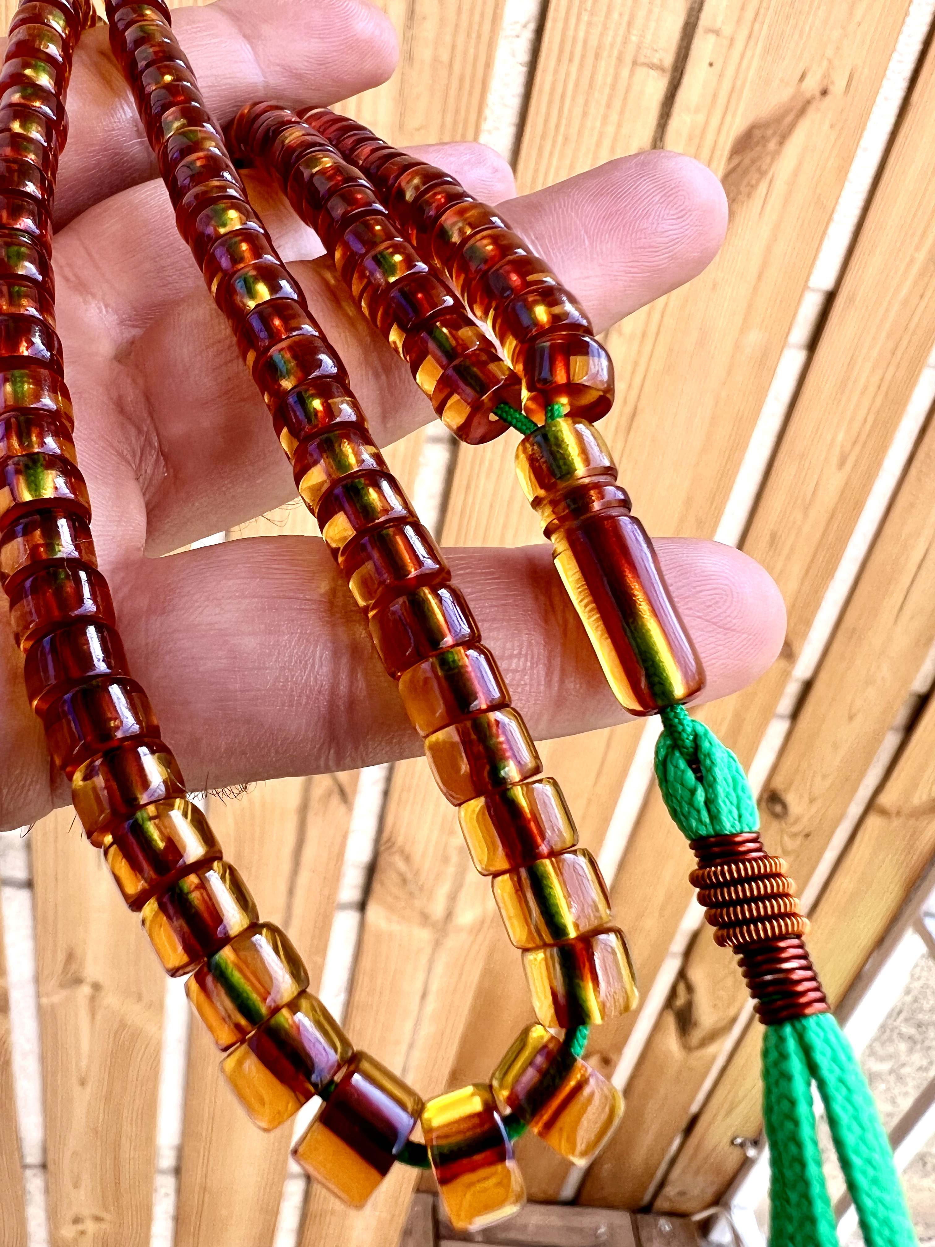 تسبیح سندلوس آلمانی قاجاری کمیاب ، اصل، بو دار و پاتین دار نباتی رنگ کد ۳۶۸