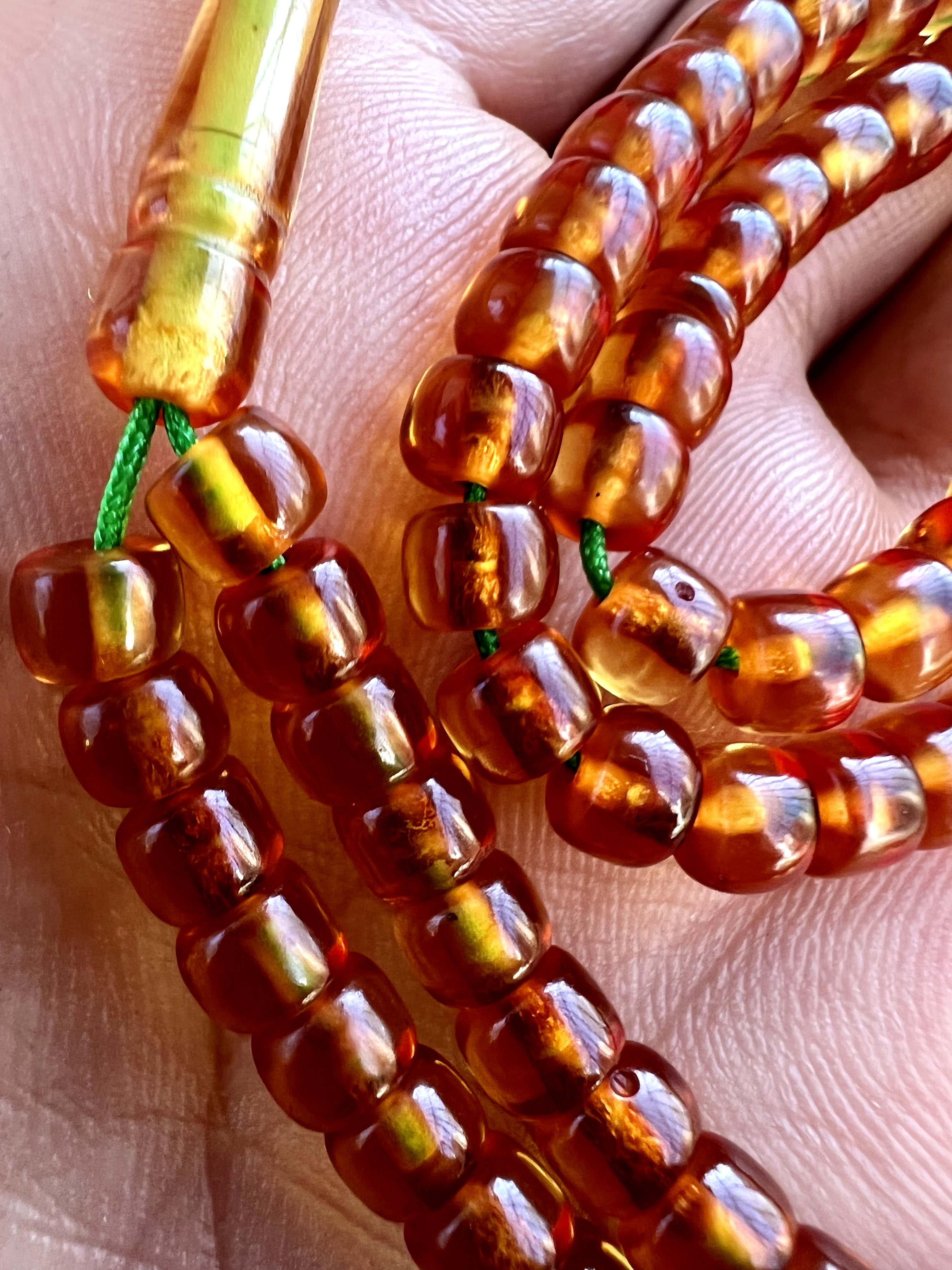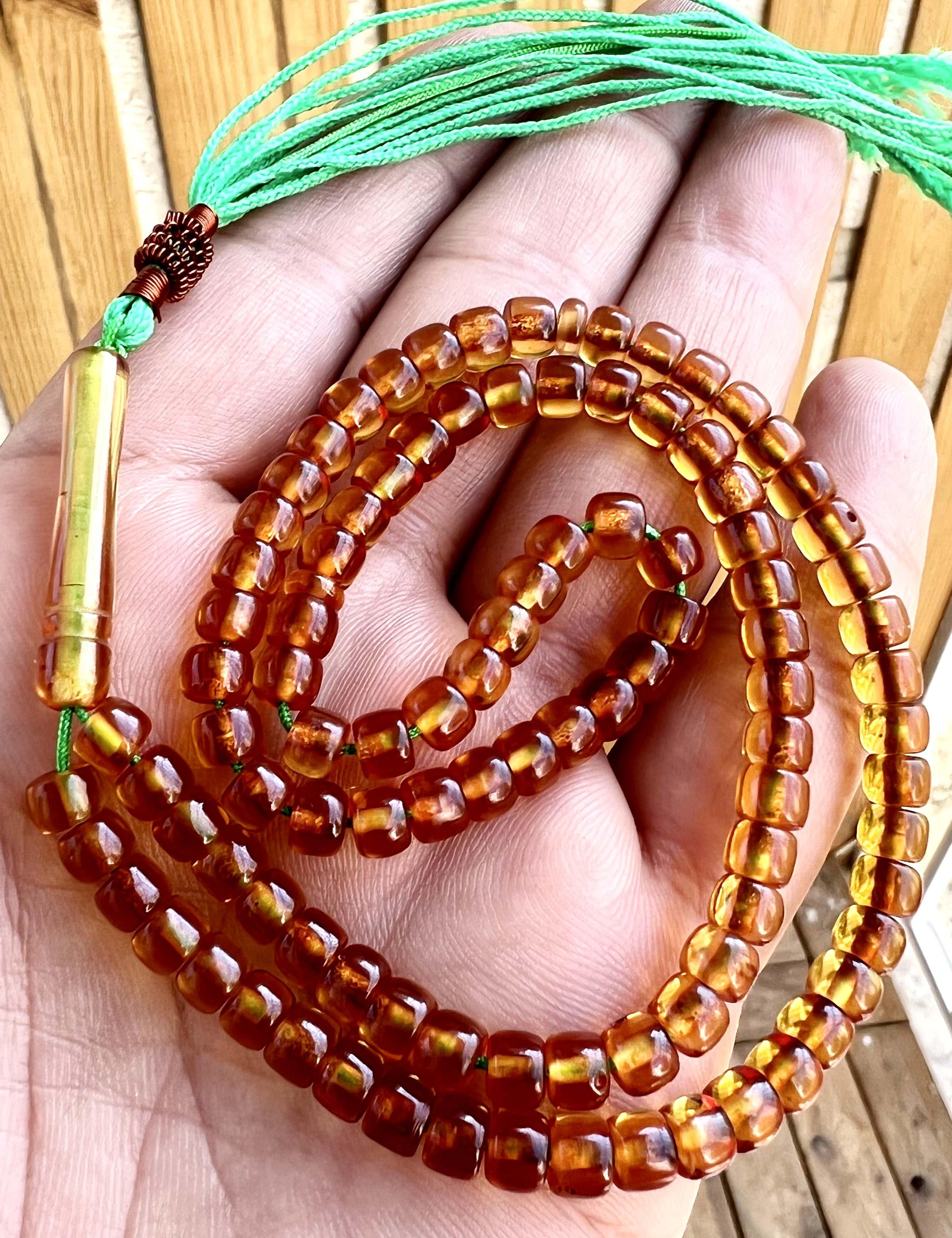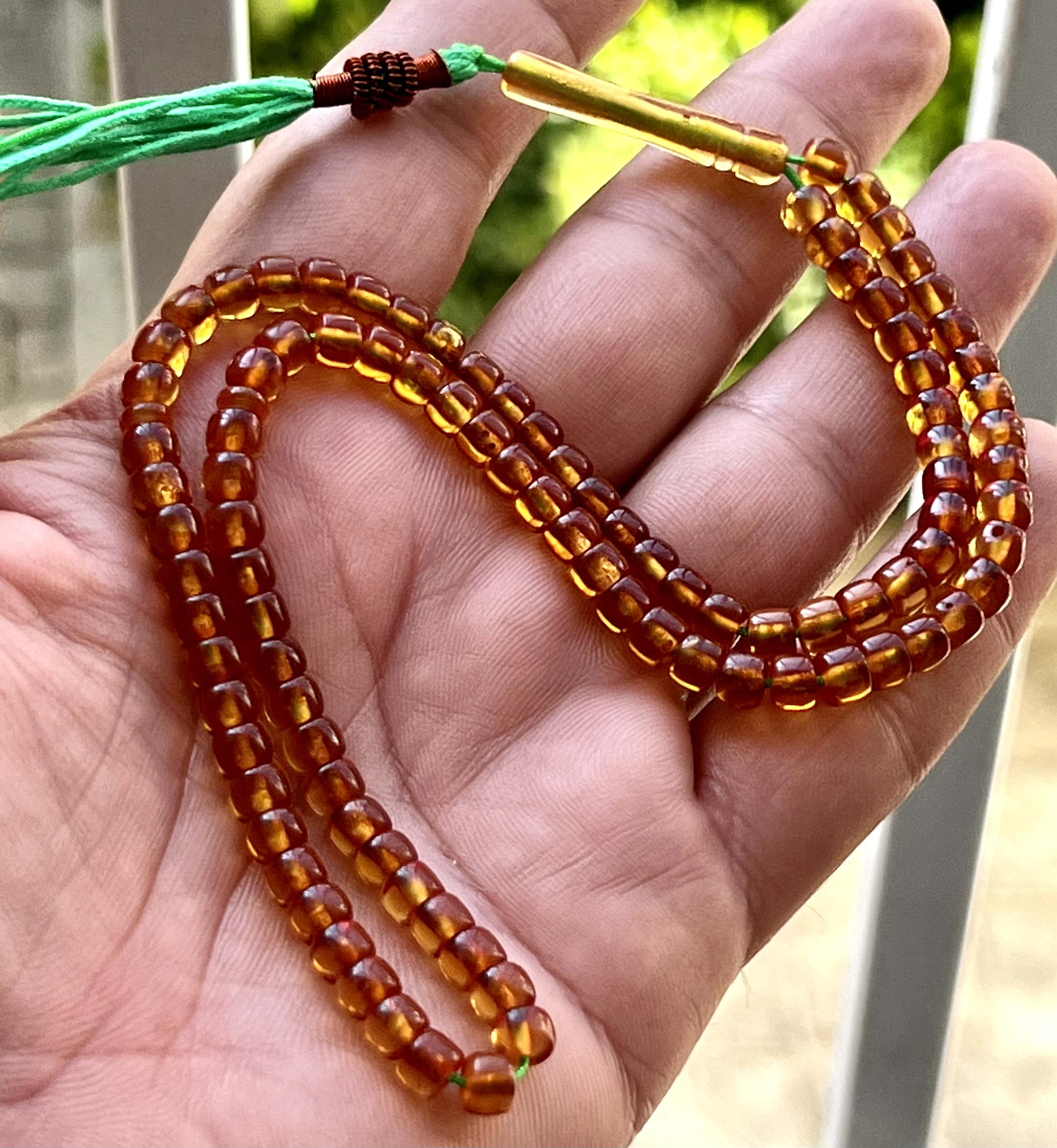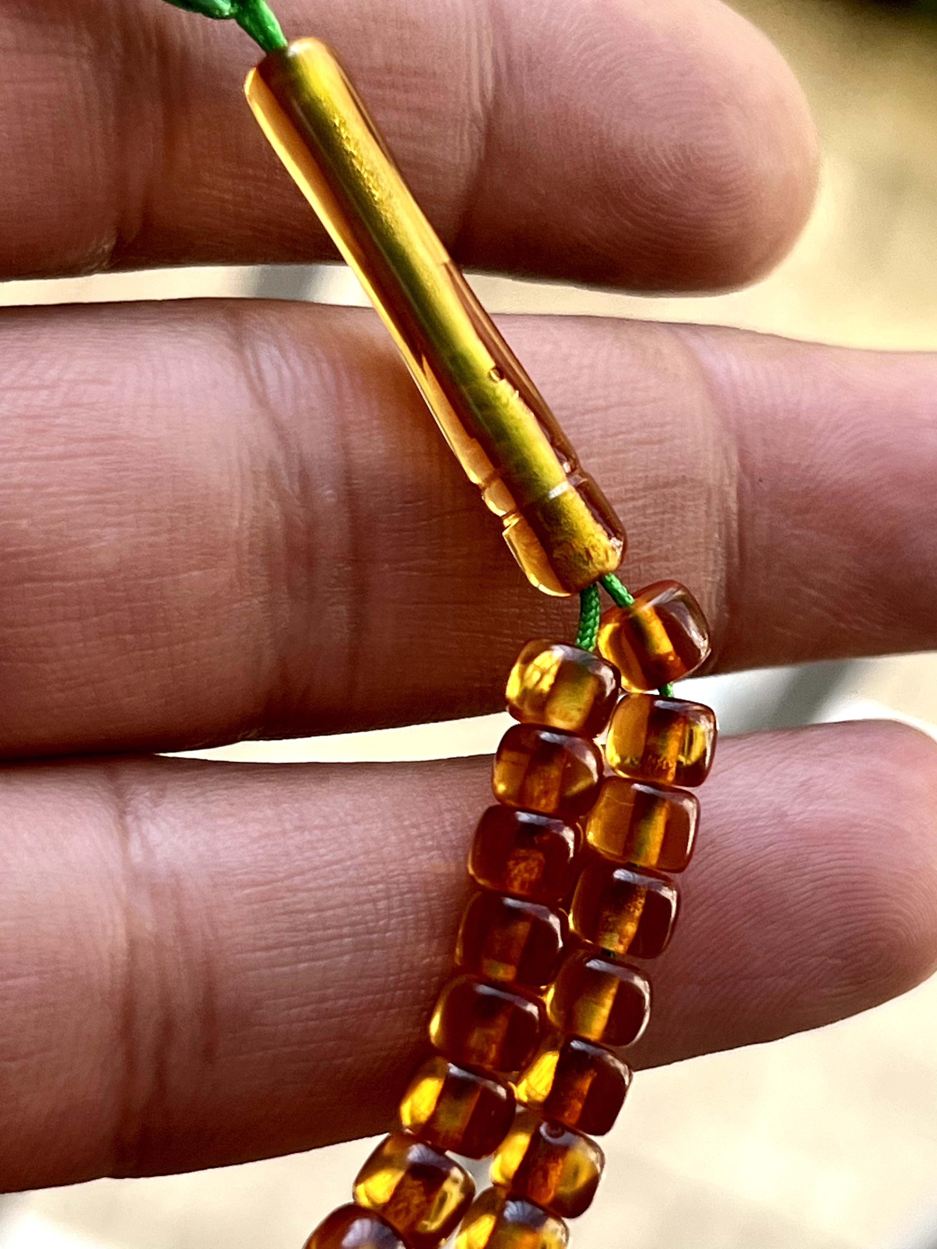 تسبیح سندلوس زرد نباتی کهنه آلمان اصل و پاتین دار سایز ریز کد ۳۷۷