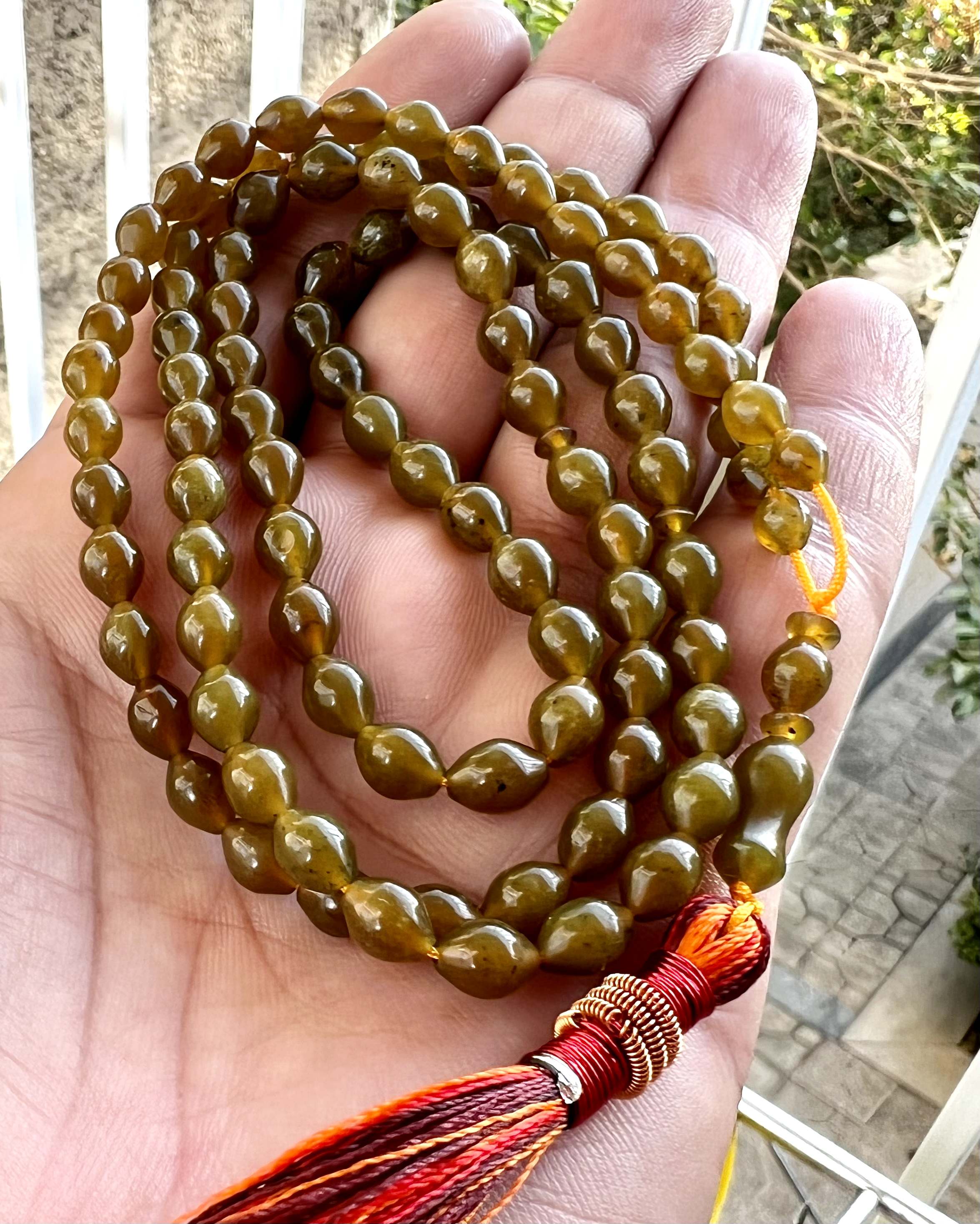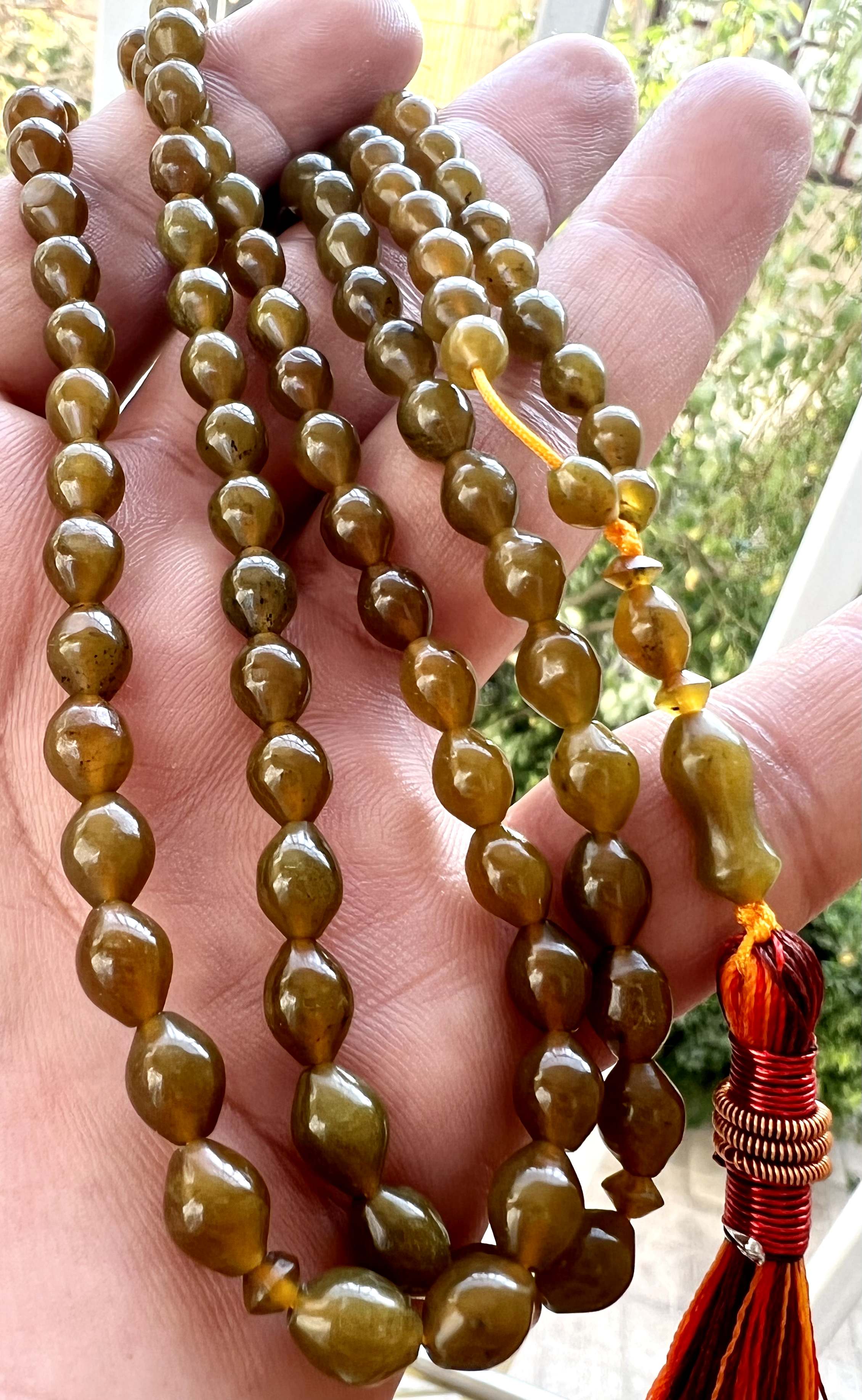 تسبیح شاه مقصود زیتونی افغان اصل از معدن کابل تراش قدیمی کد ۳۸۰