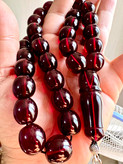 تسبیح کهربای آب حیات سرخ کهنه آلمان اصل ،کهنه و کمیاب ،بودار با چگالی بالا کد ۳۸۶