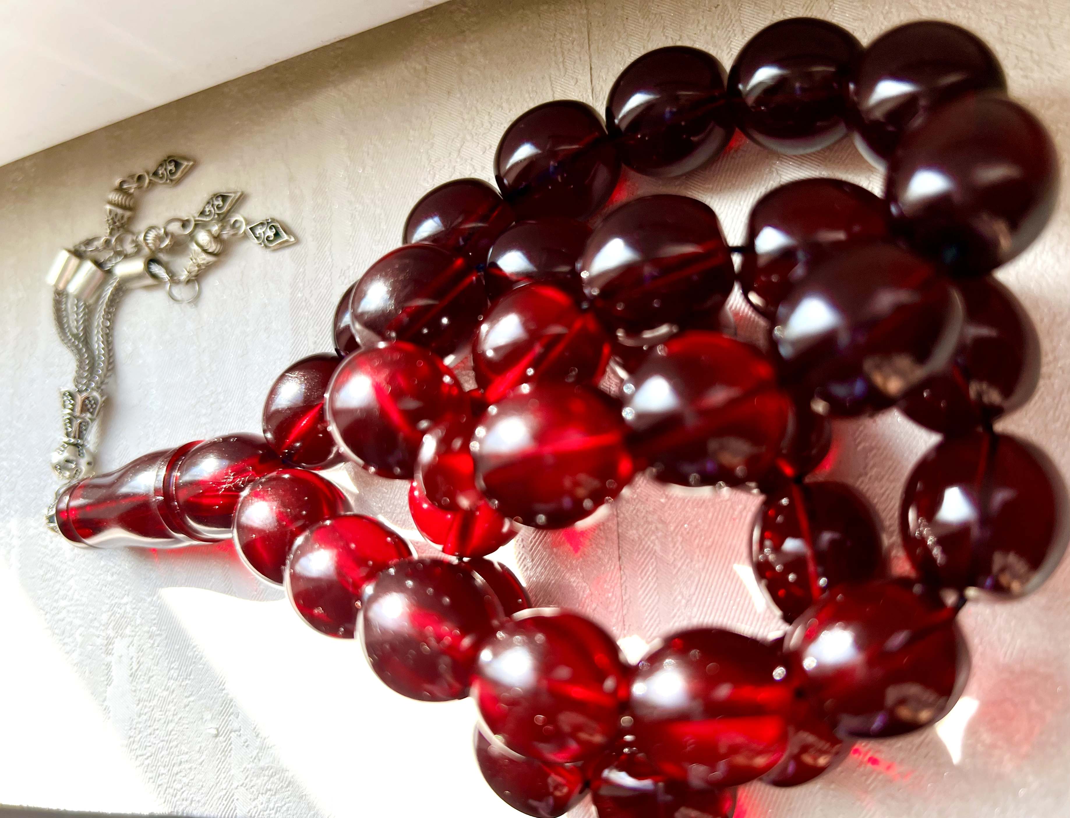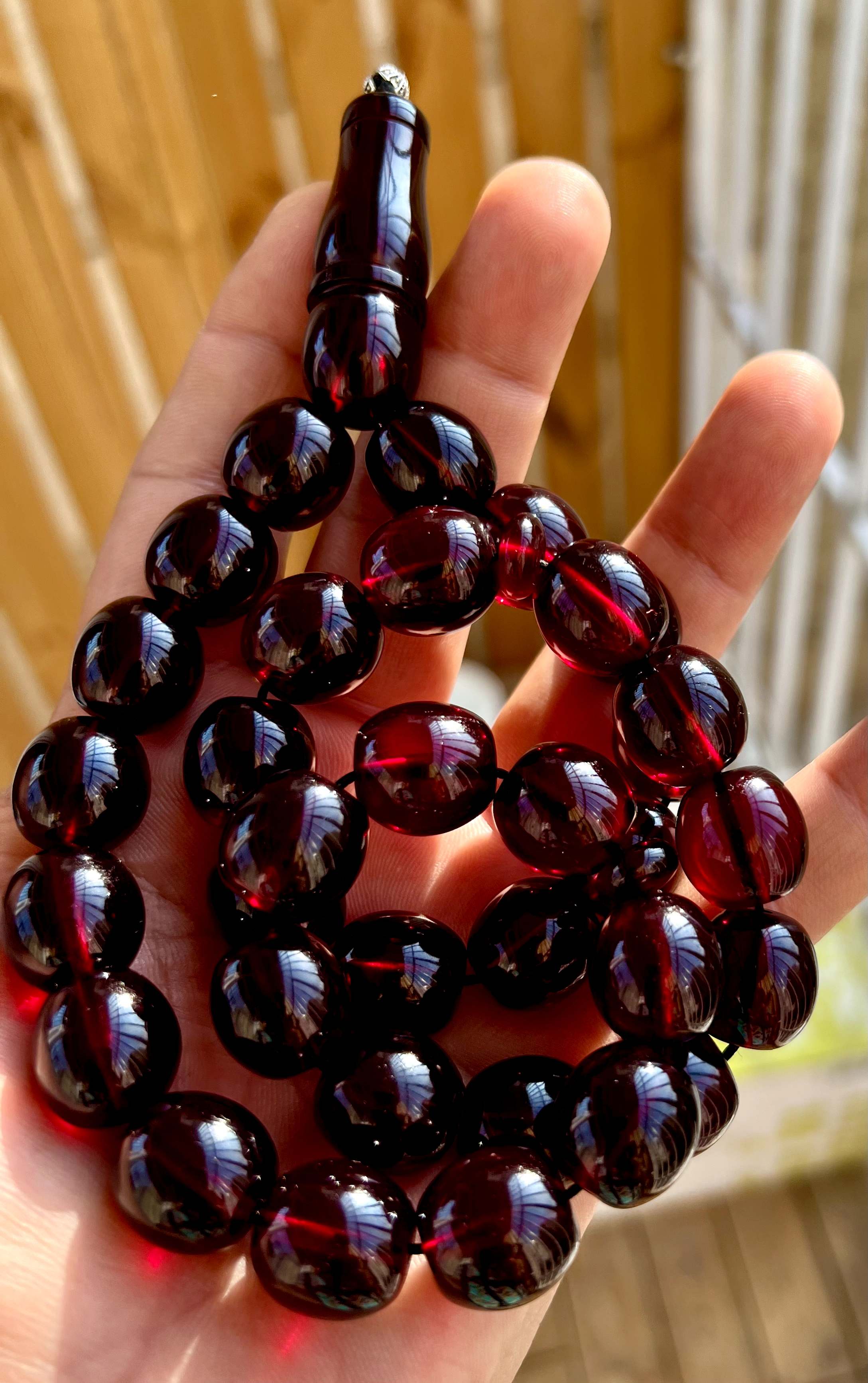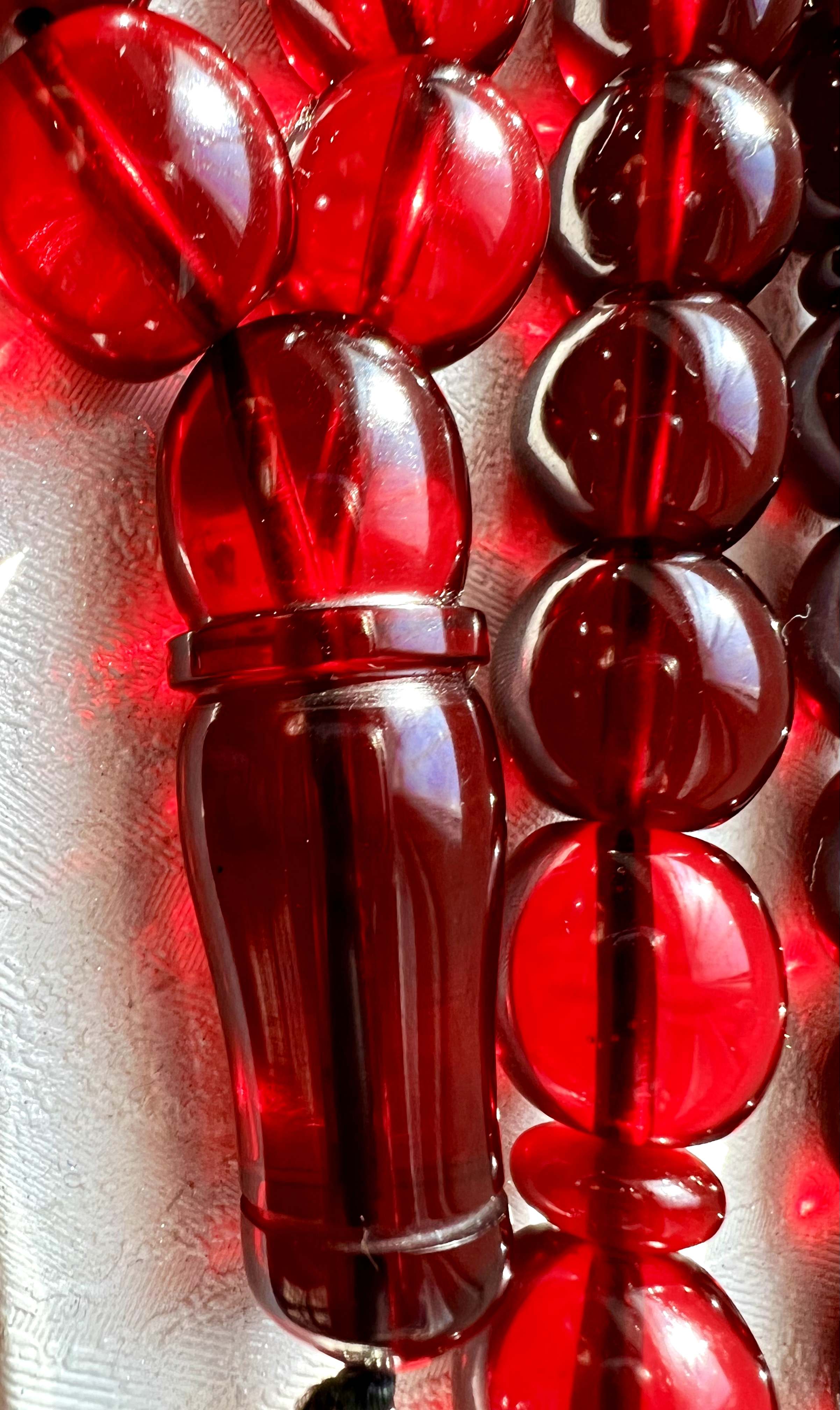 تسبیح کهربای آب حیات سرخ کهنه آلمان اصل ،کهنه و کمیاب ،بودار با چگالی بالا کد ۳۸۶