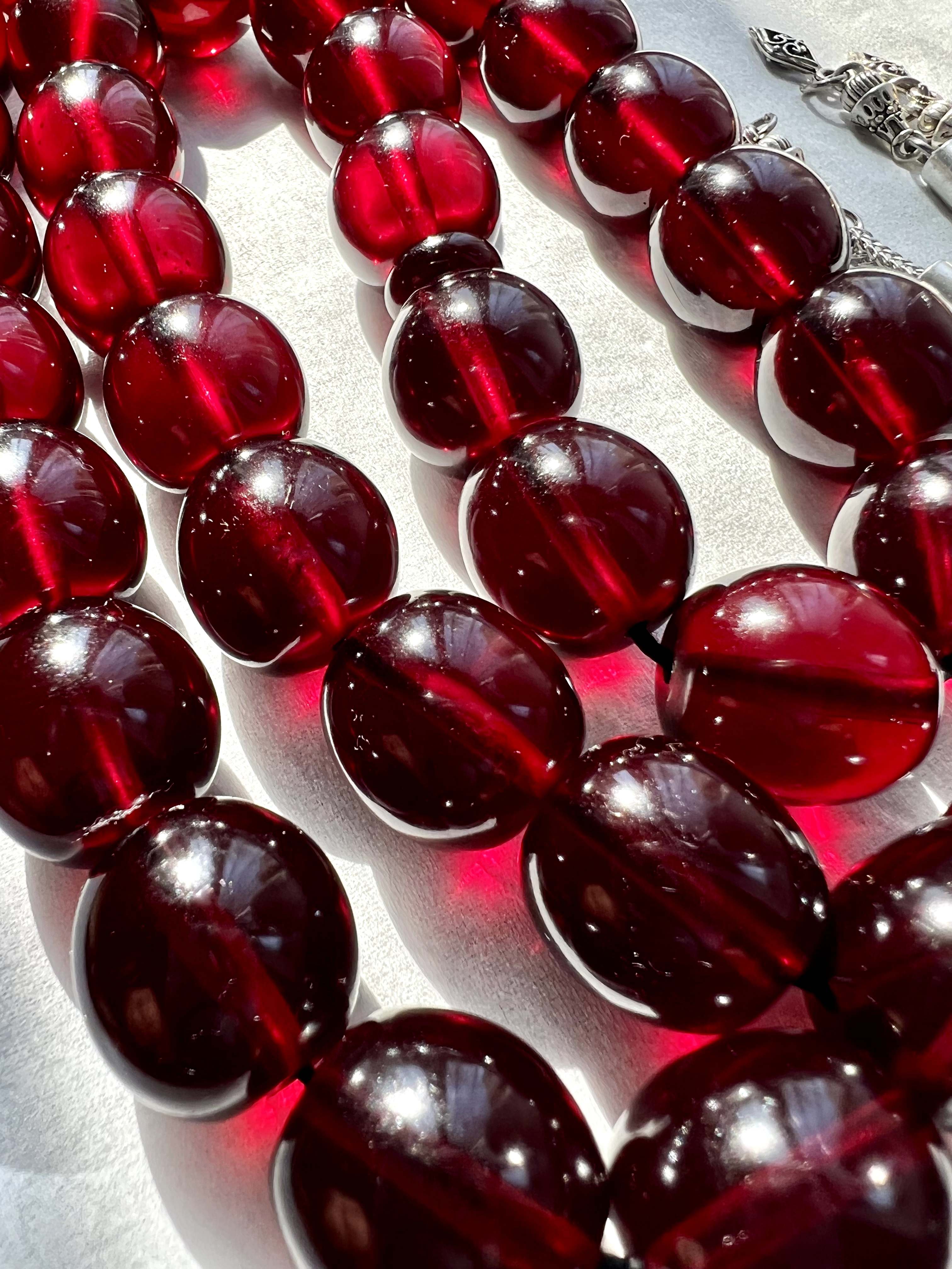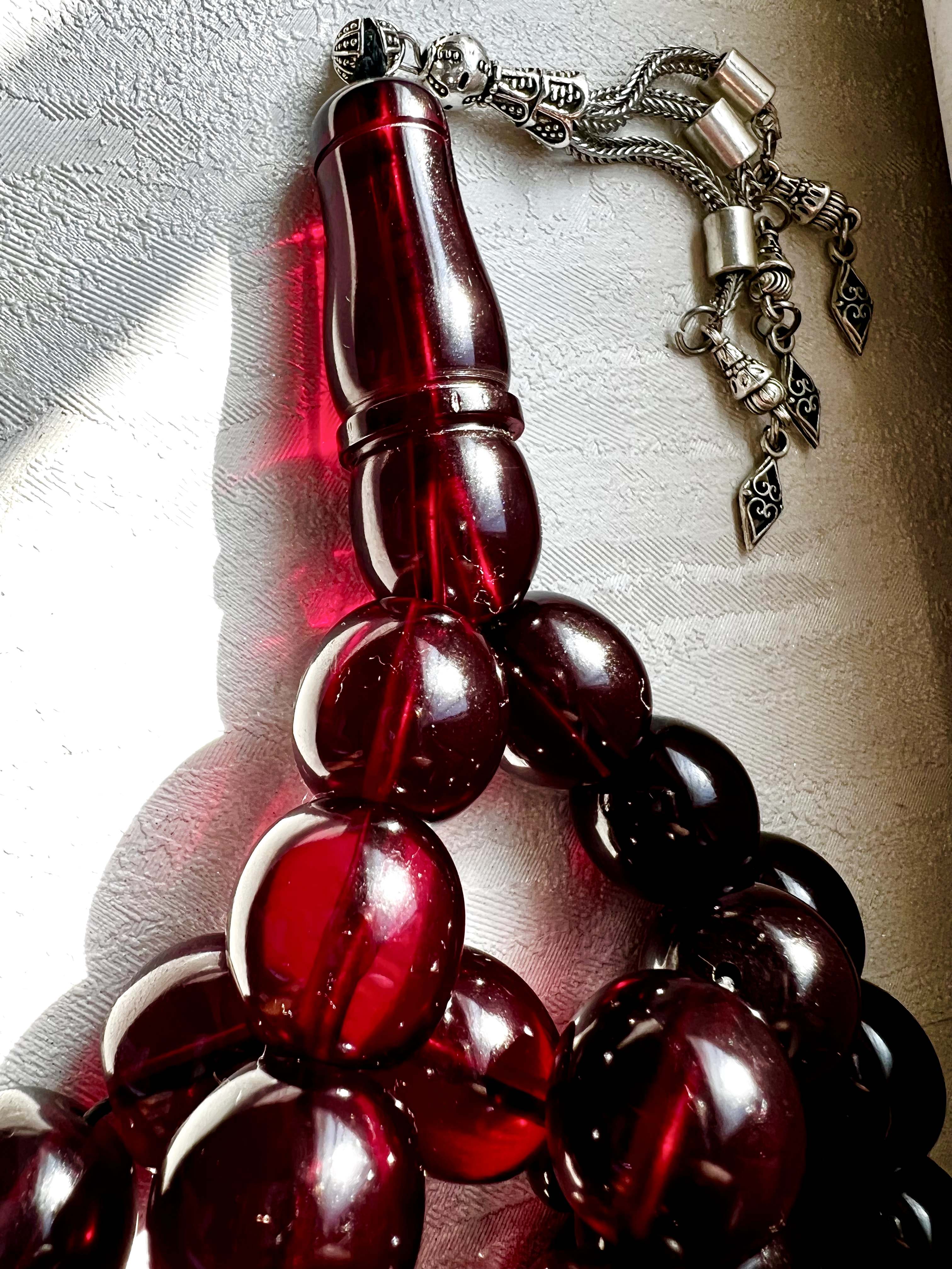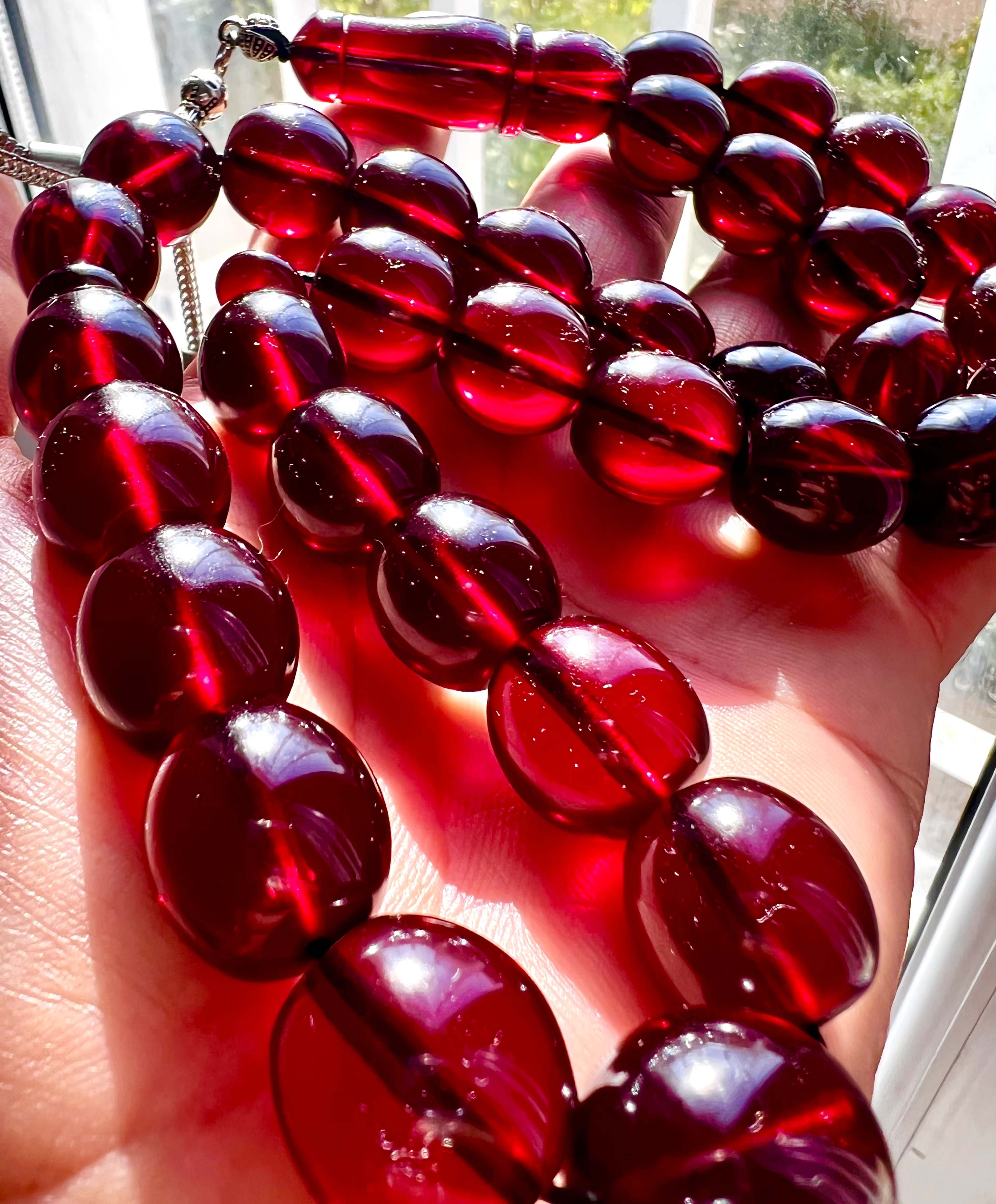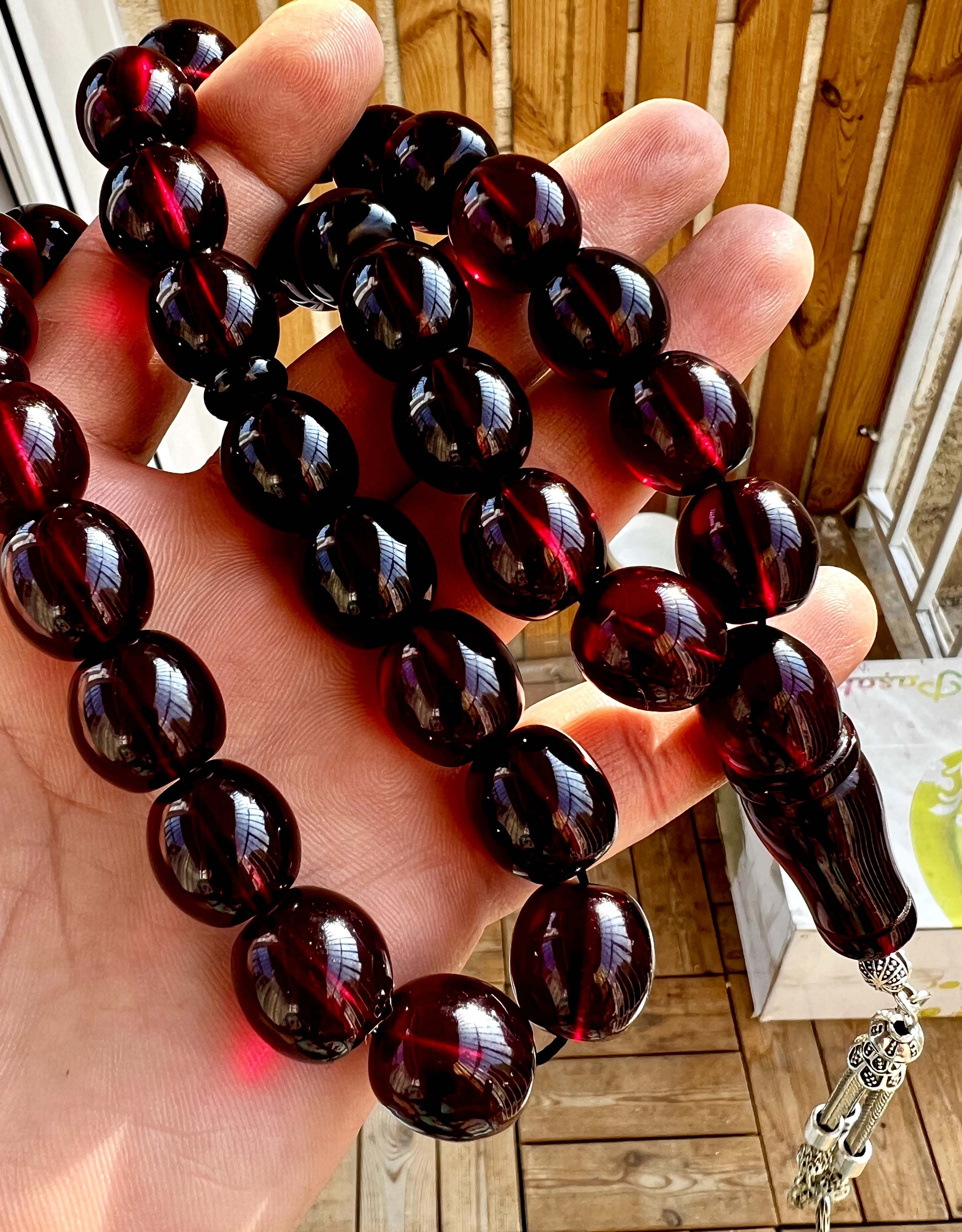 تسبیح کهربای آب حیات سرخ کهنه آلمان اصل ،کهنه و کمیاب ،بودار با چگالی بالا کد ۳۸۶