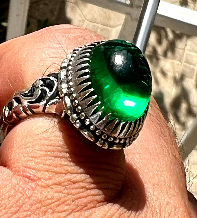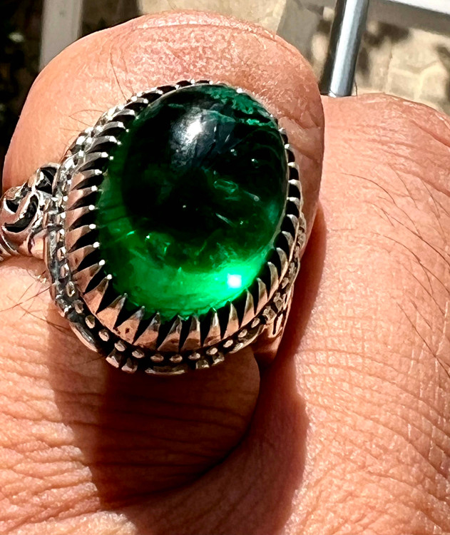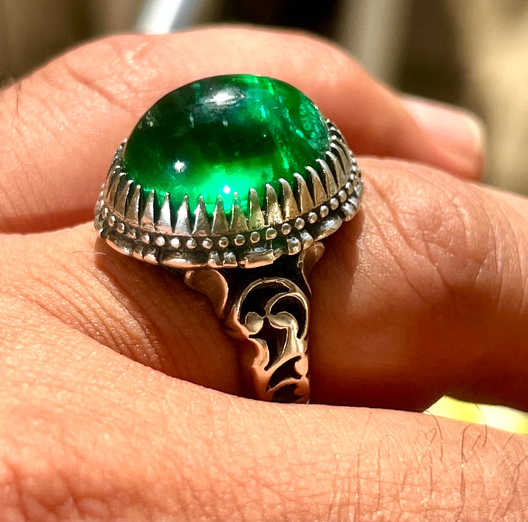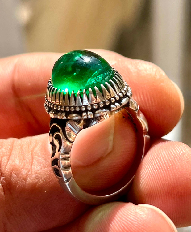 انگشتر نقره ۹۲۵ با گوهر زمرد معدنی برزیلی تراش دامله