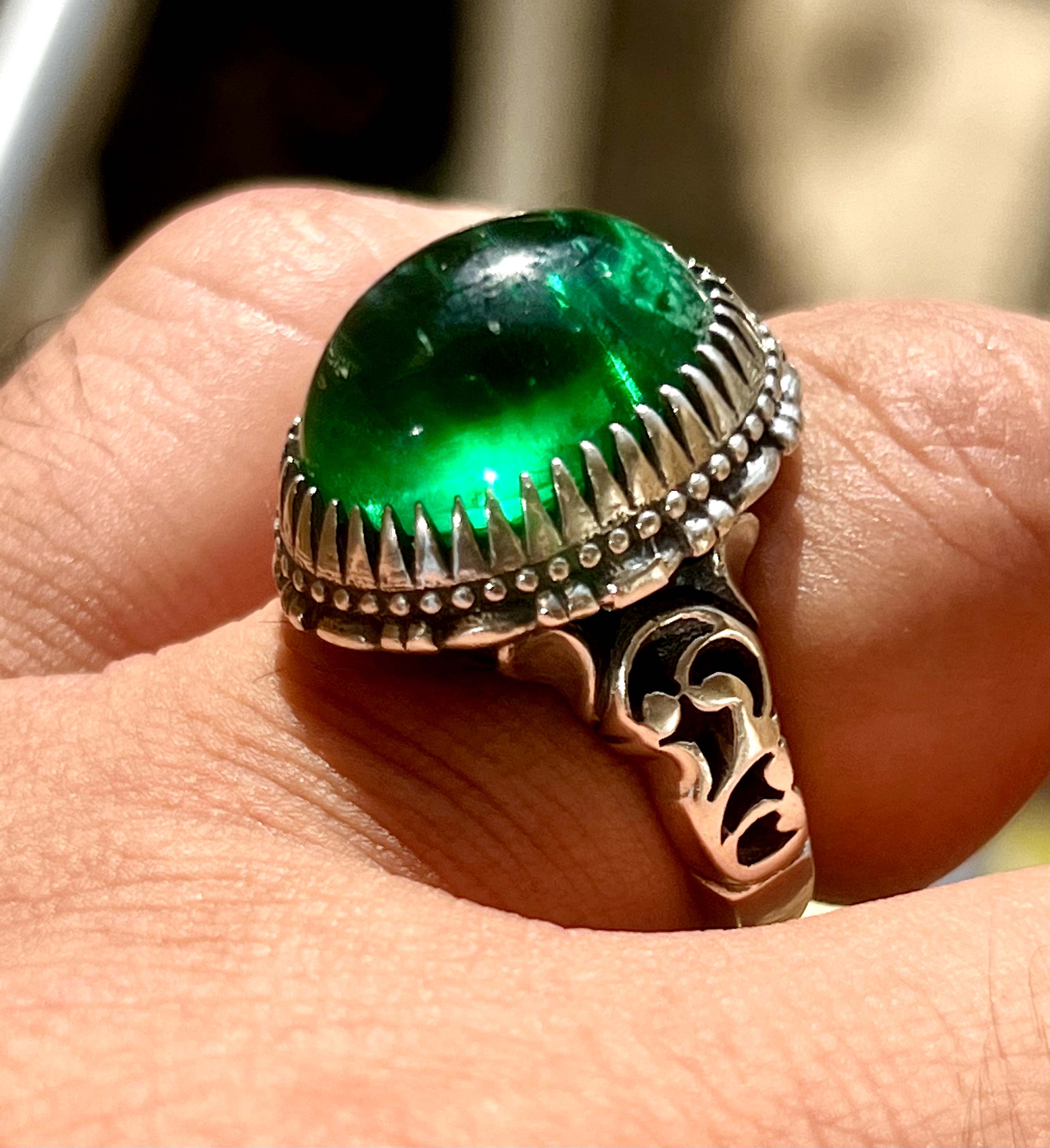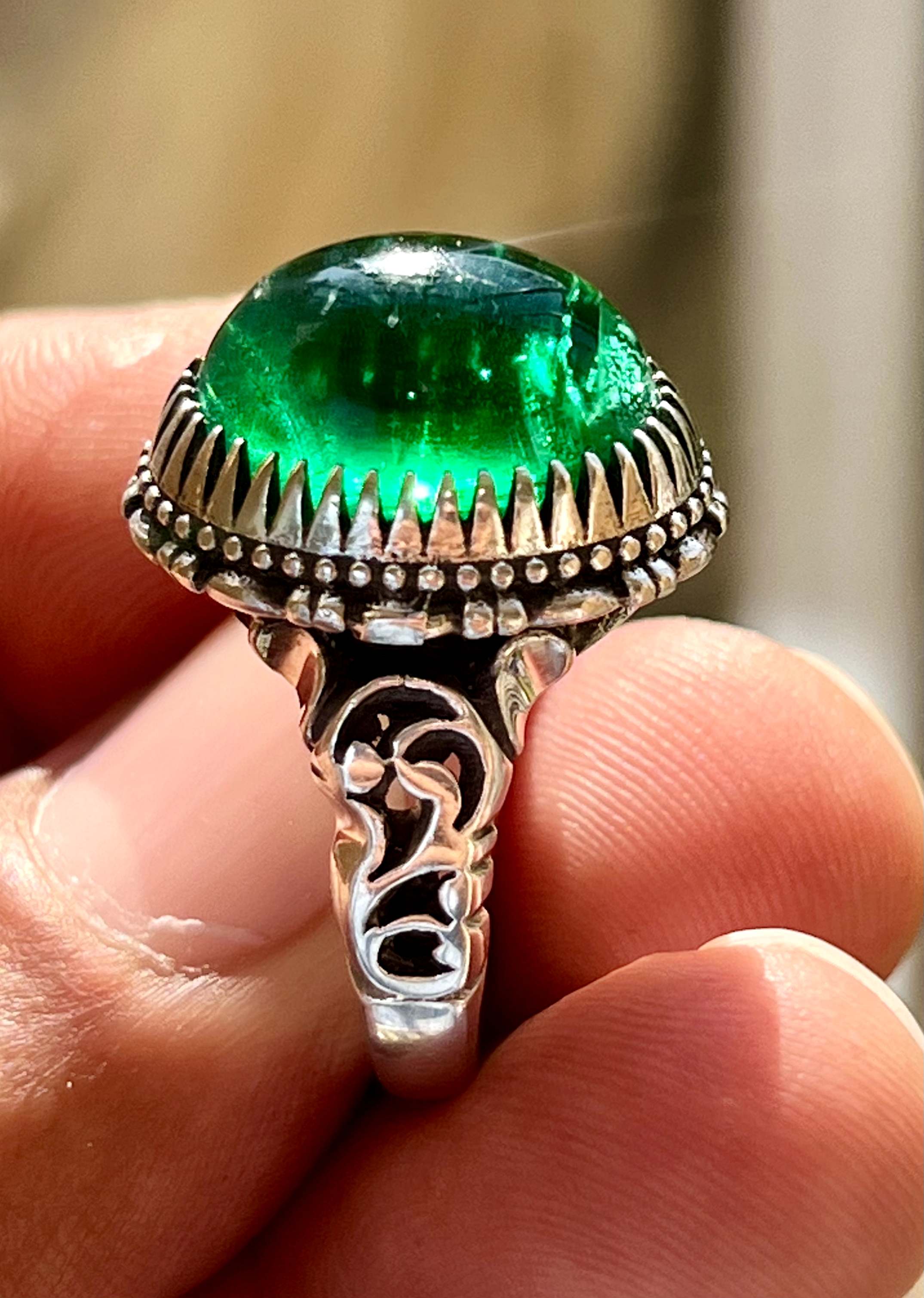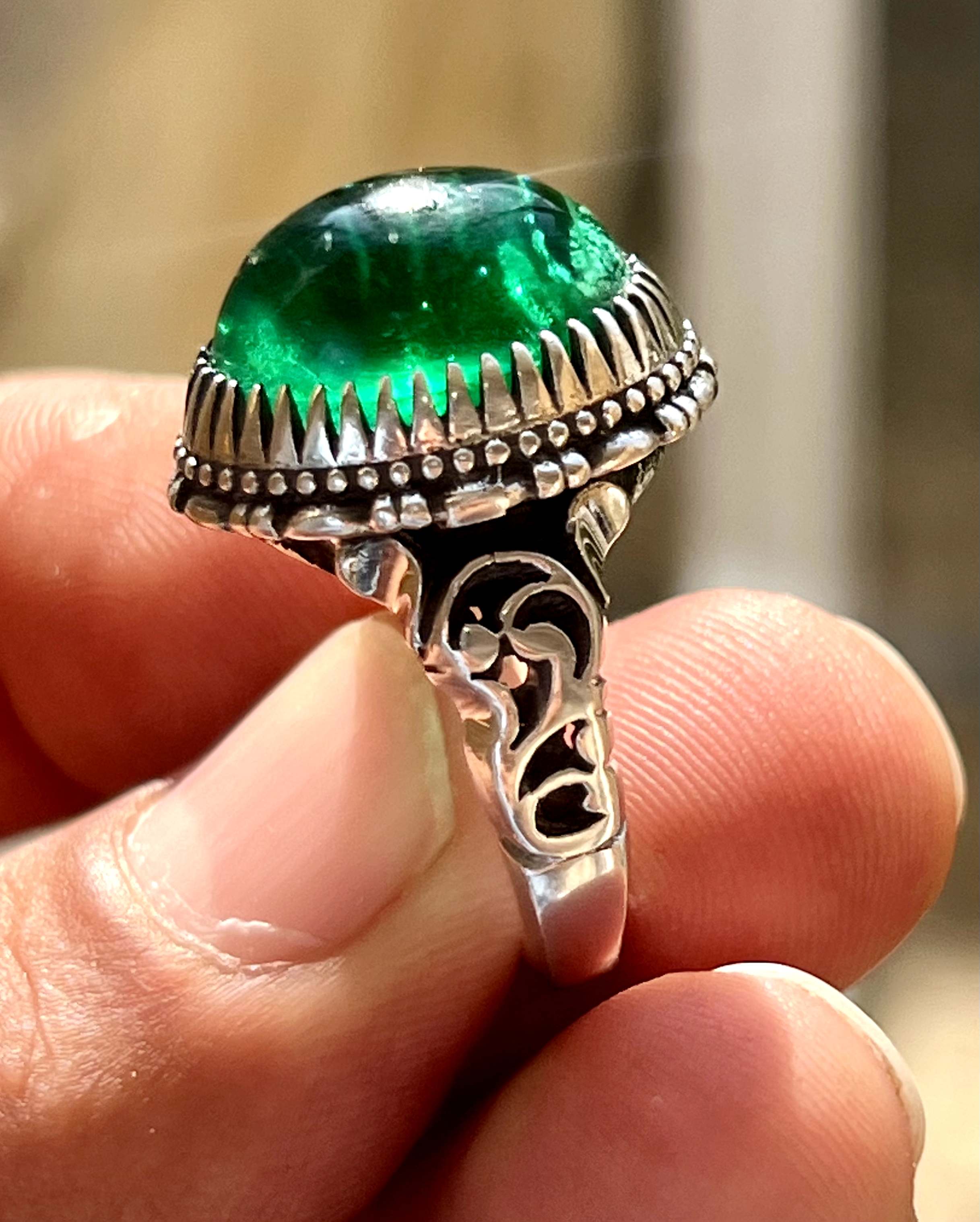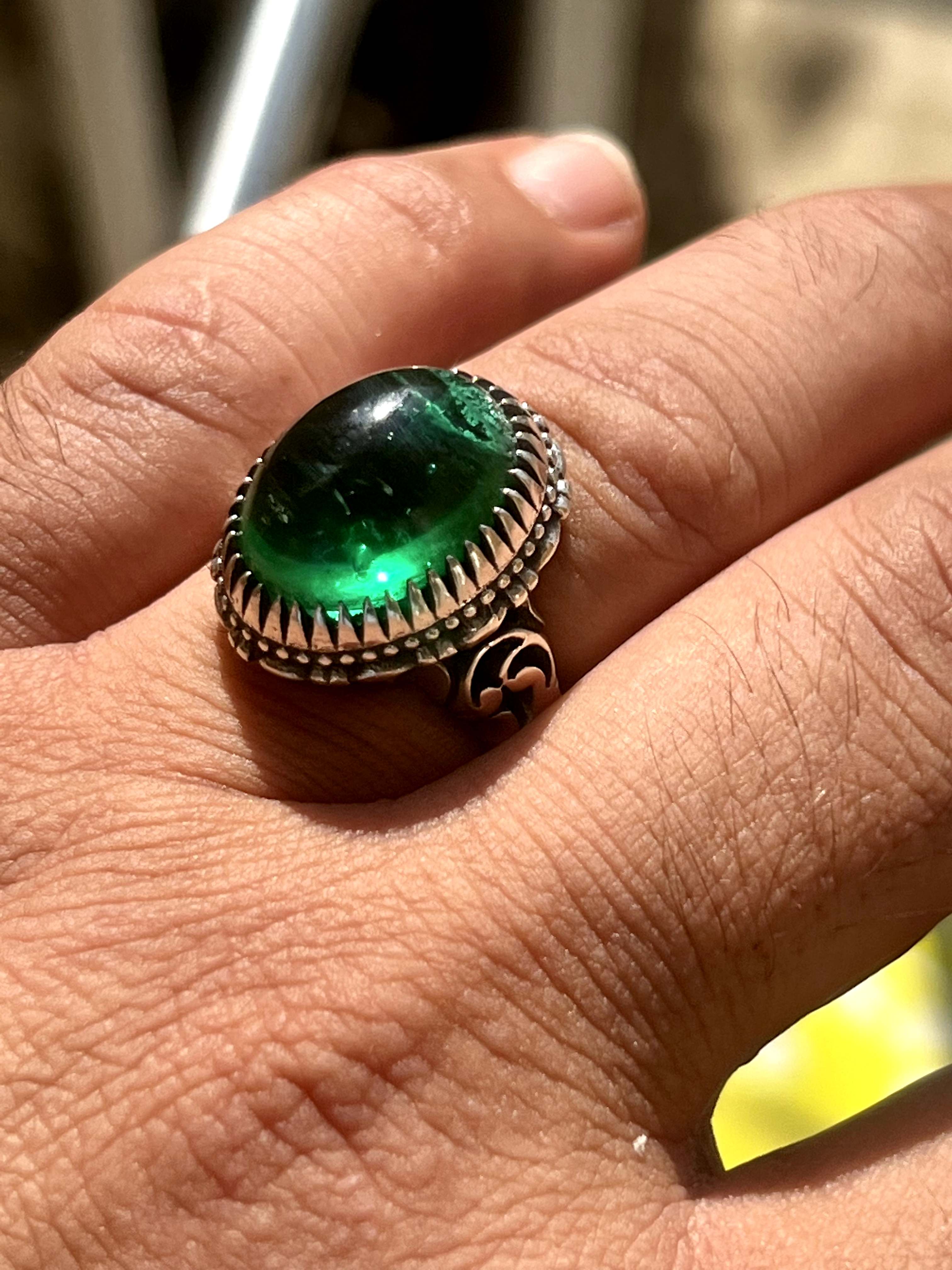 انگشتر نقره ۹۲۵ با گوهر زمرد معدنی برزیلی تراش دامله