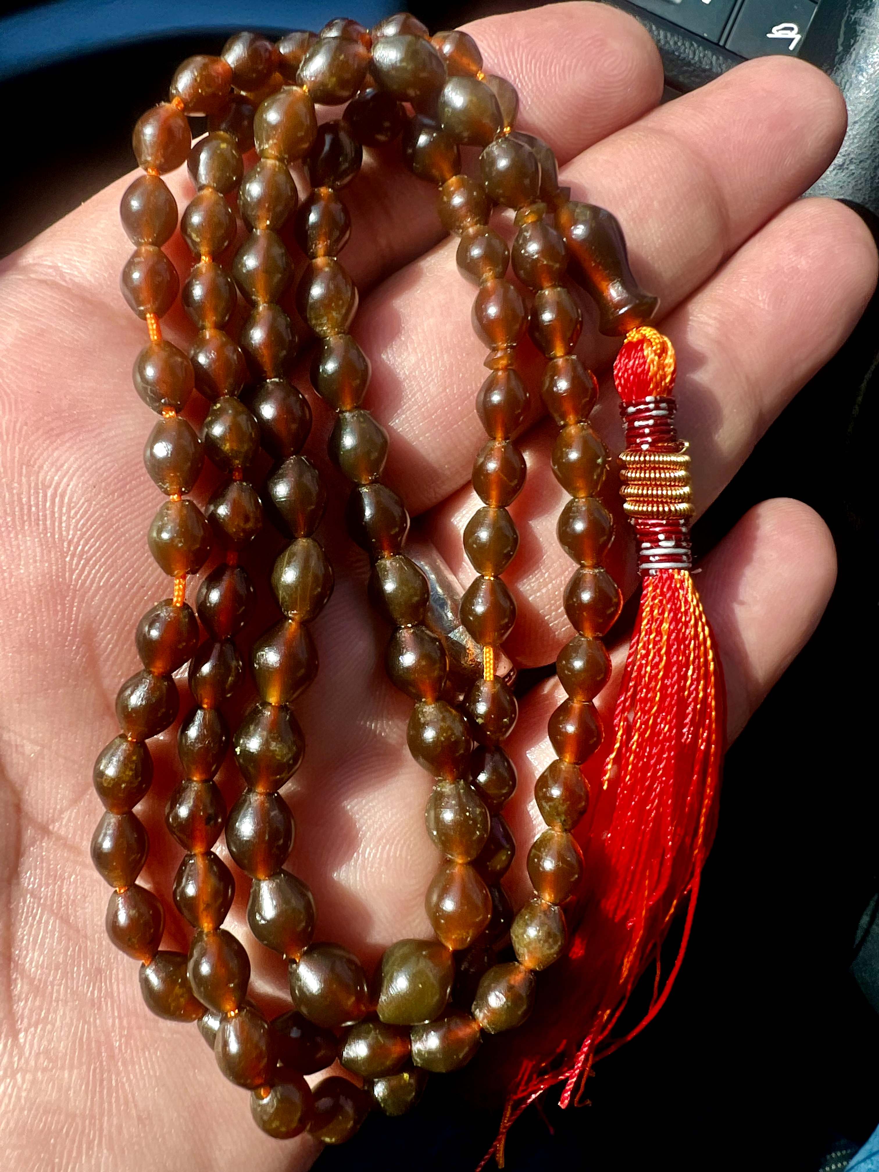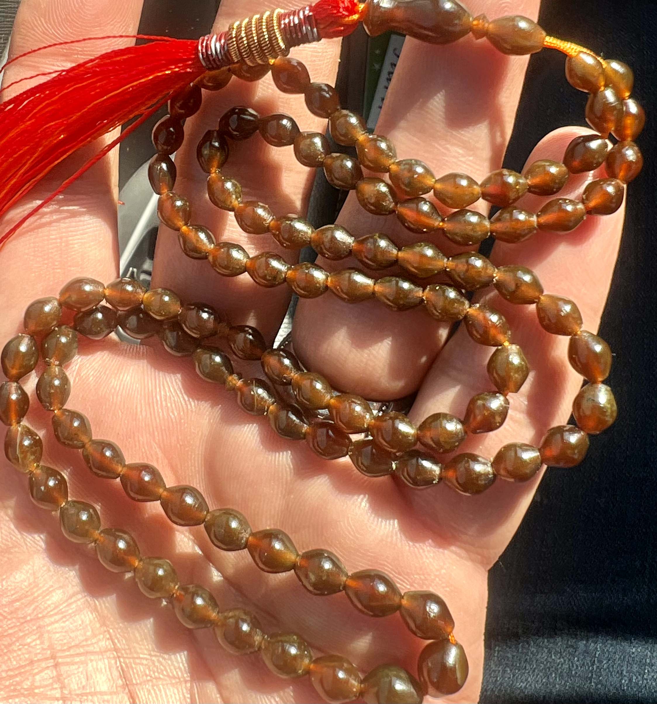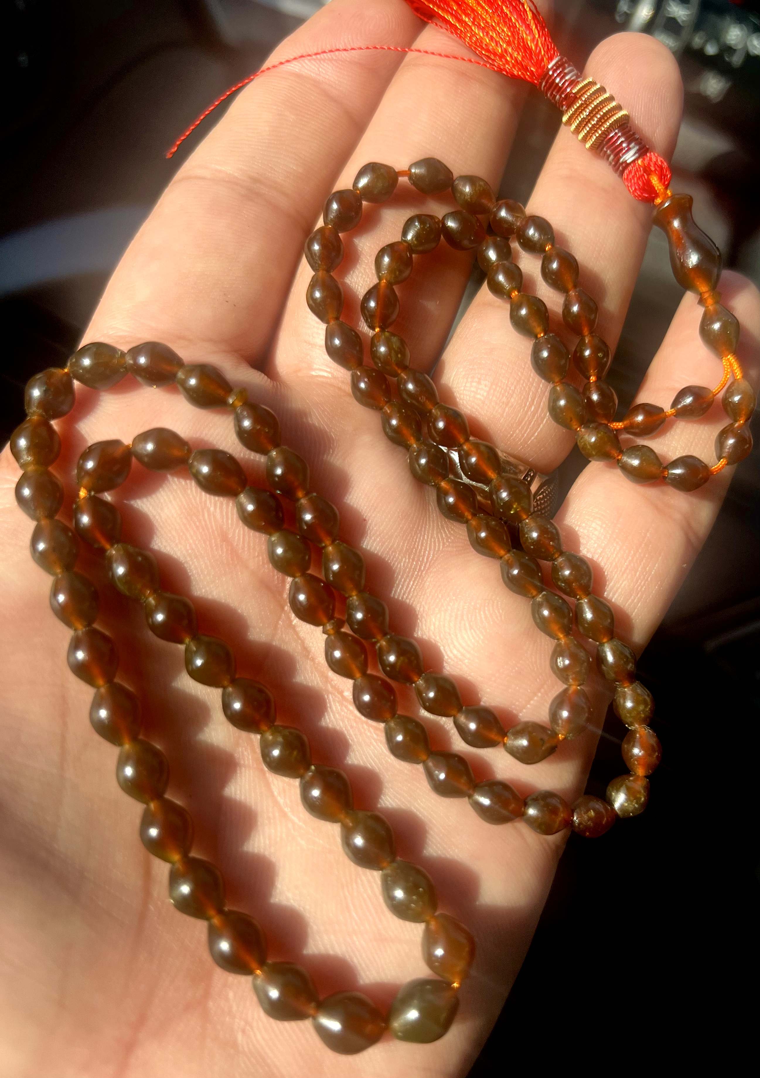 تسبیح شاه مقصود اصل و کهنه قندهار خرمایی رنگ سایز تاجری کد ۳۹۵