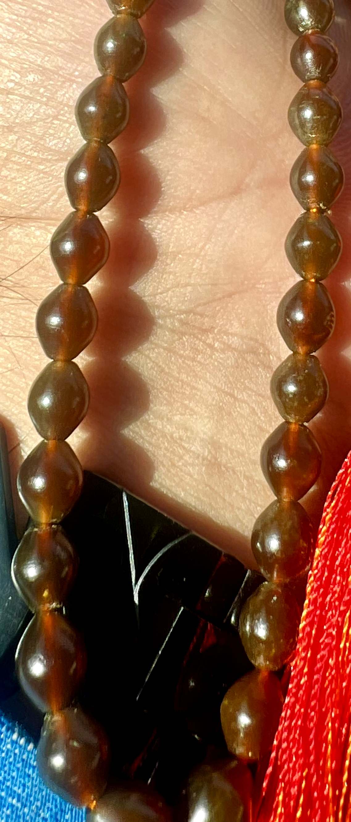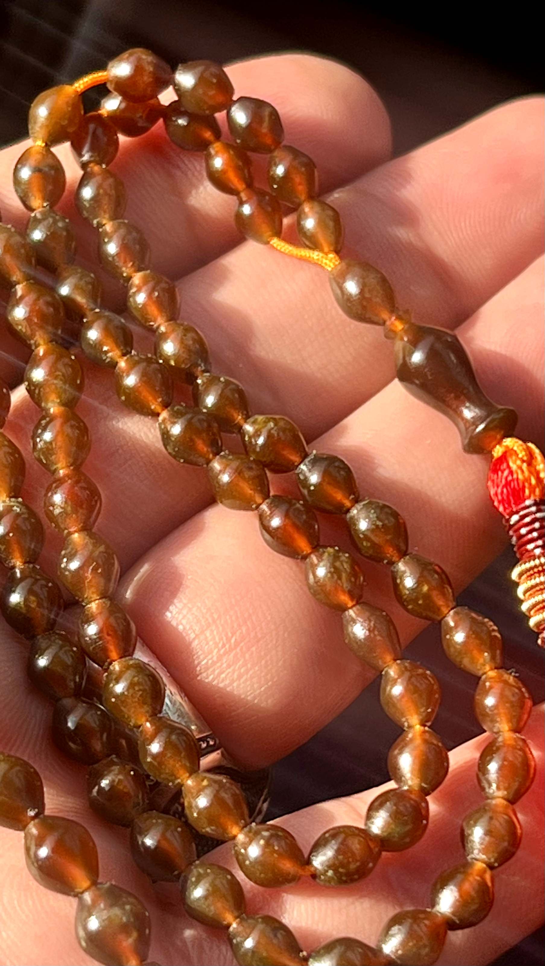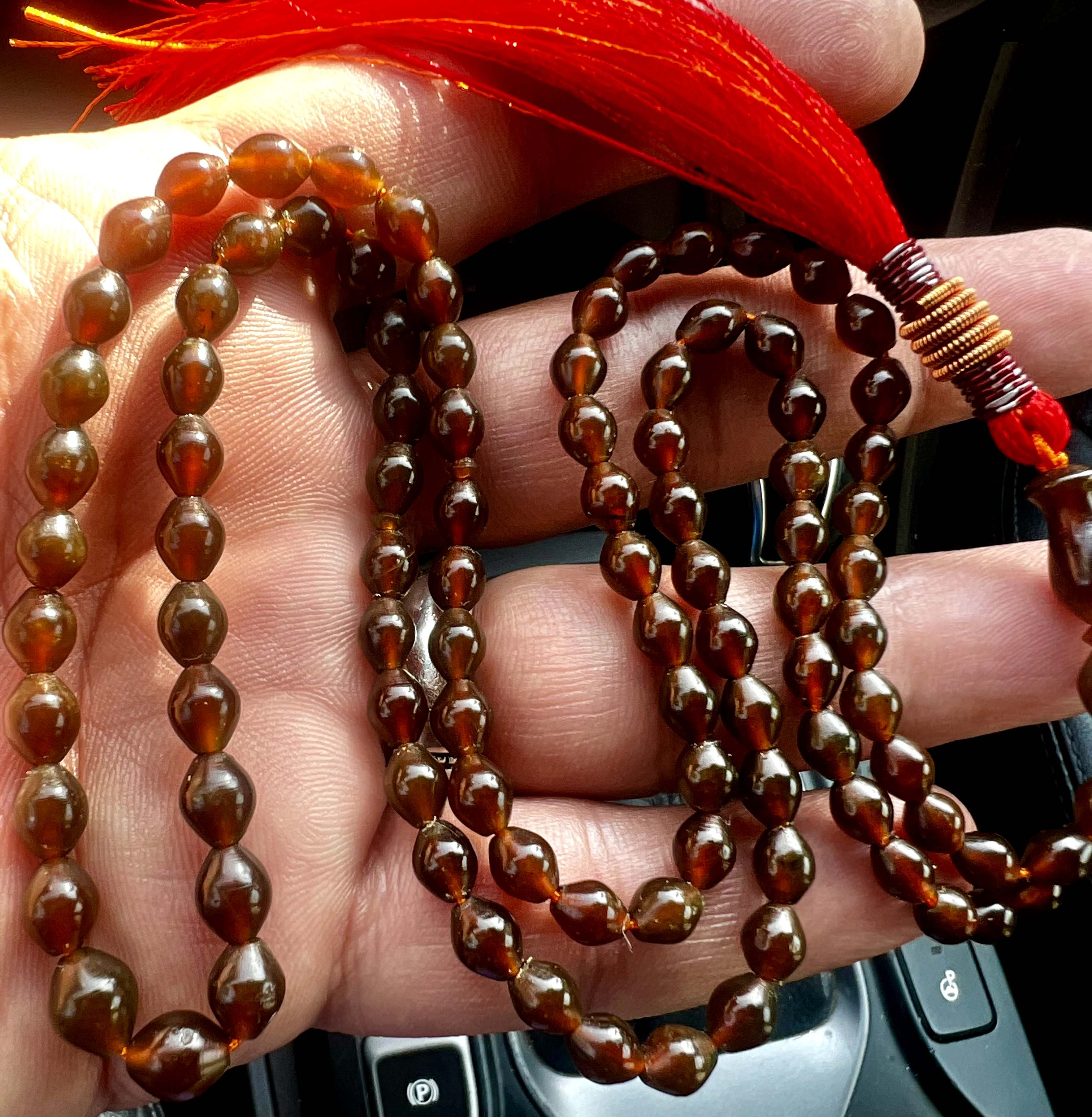 تسبیح شاه مقصود اصل و کهنه قندهار خرمایی رنگ سایز تاجری کد ۳۹۵
