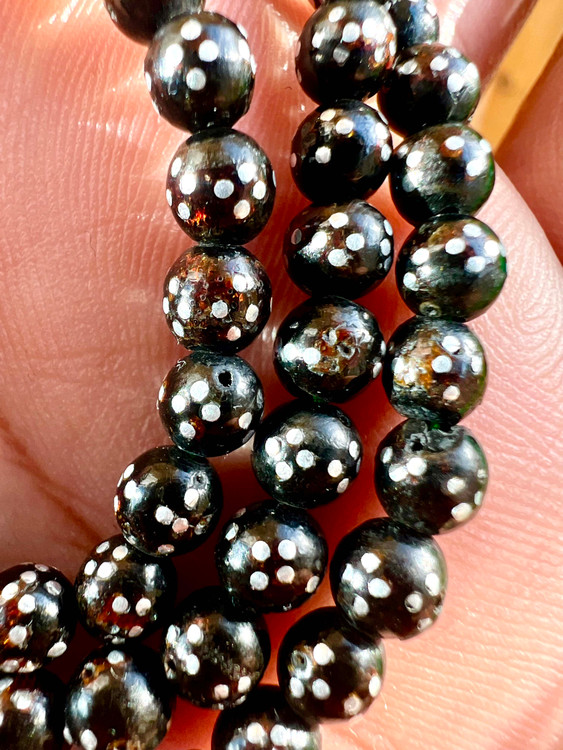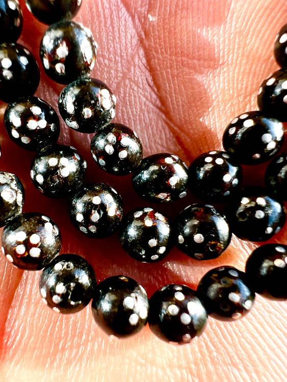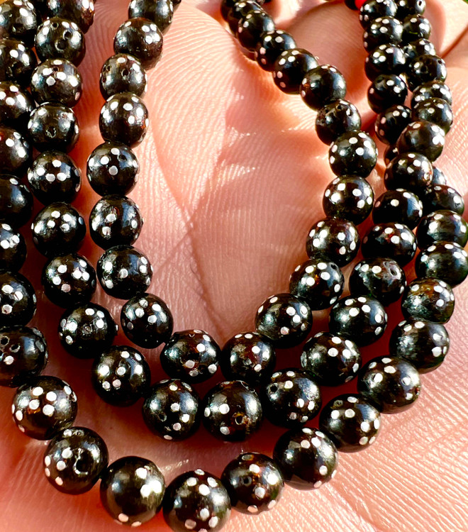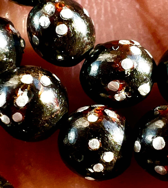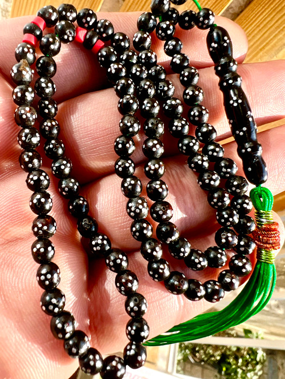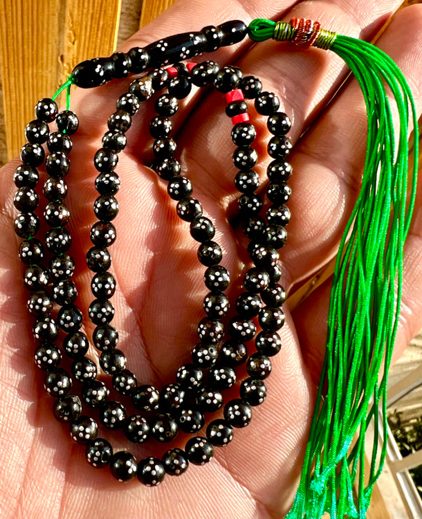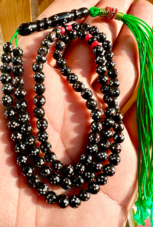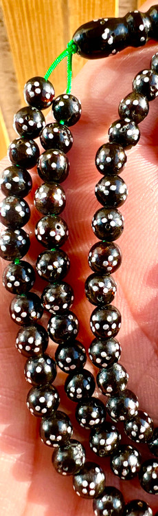 تسبیح یسرحجاز یا مکاوی نقره کوب قاجاری کهنه بودار و معطر سایز مینیاتوری