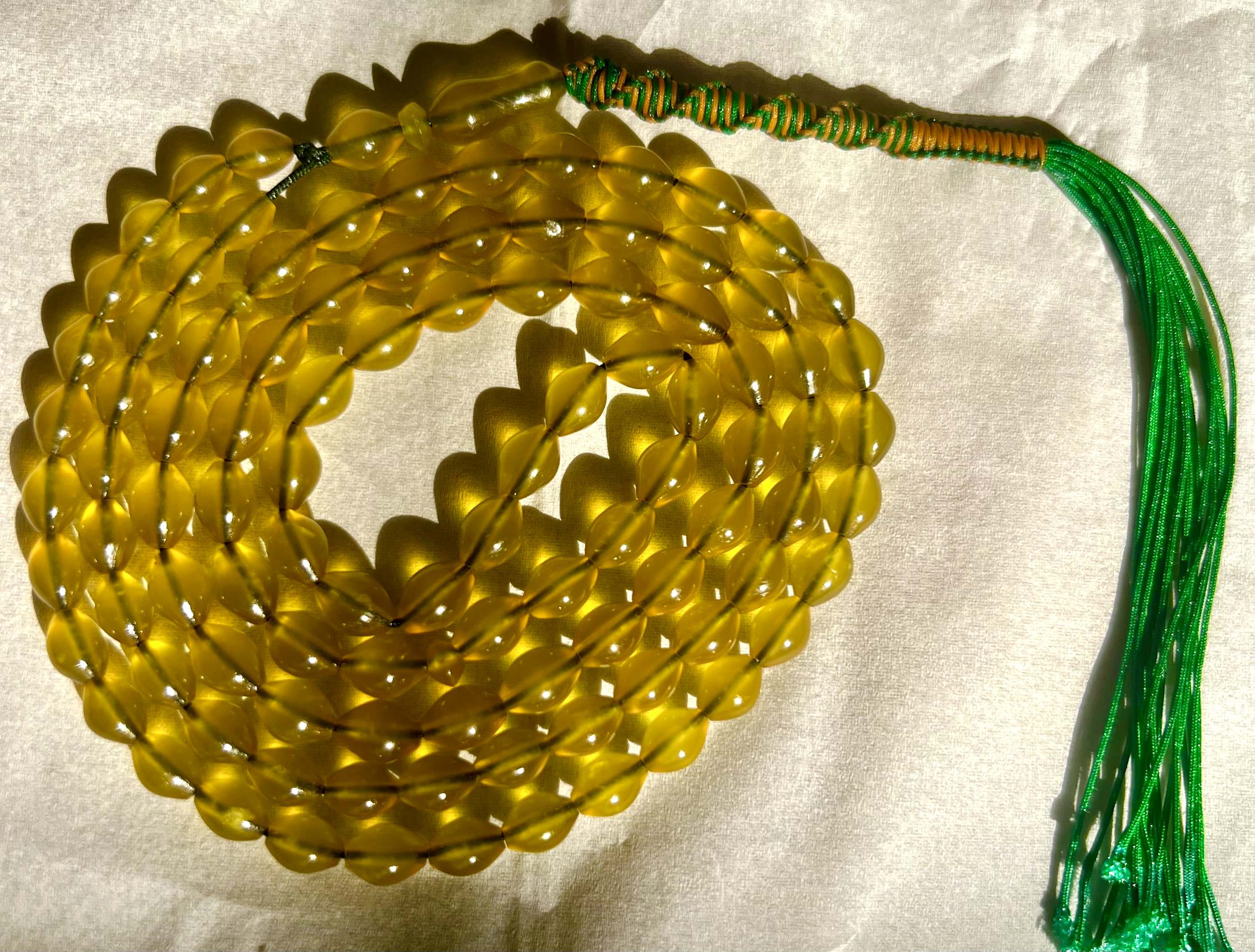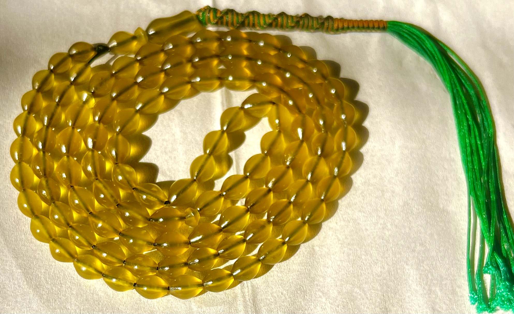 تسبیح شاه مقصود کهنه افغان زرد طلایی جلال آبادی ،کلکسیونی ، پاک پاک بدون زغال و برس ، آبدار و نخ نما کد ۴۰۴
