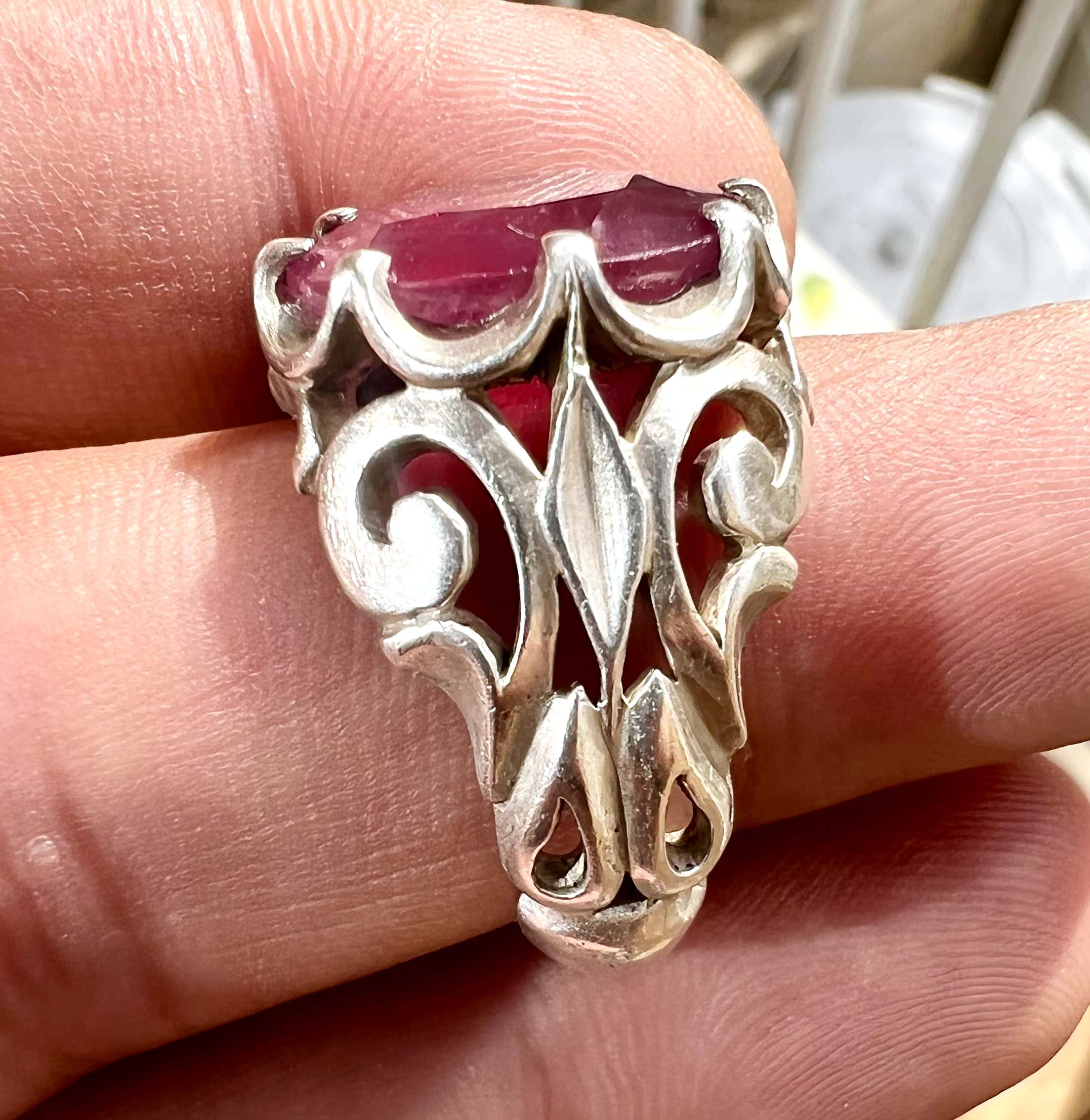 انگشتر یاقوت موزامبیک معدنی و قواره دار رکاب دستساز با مهر طهران رسولی کد ۴۰۶