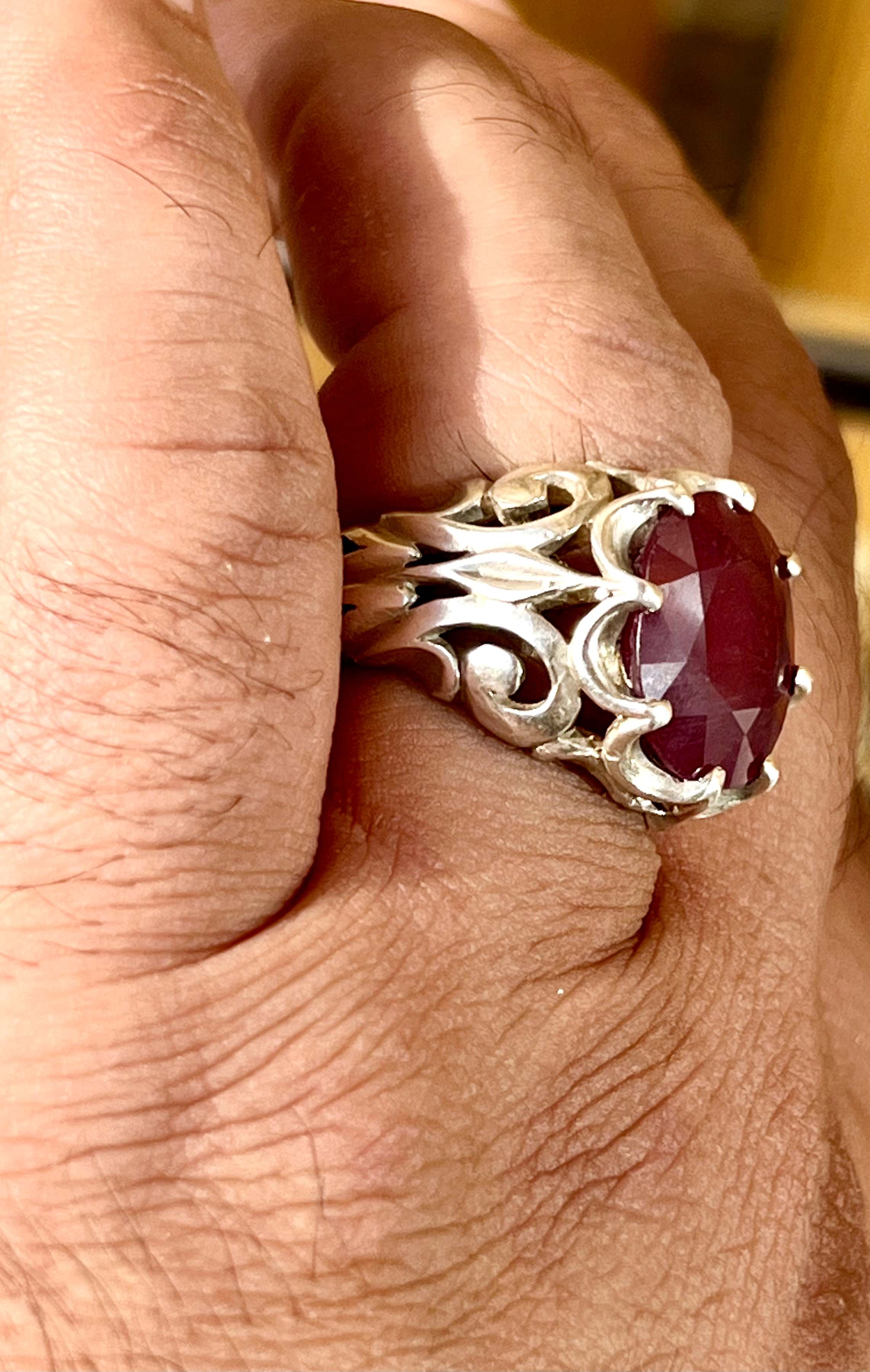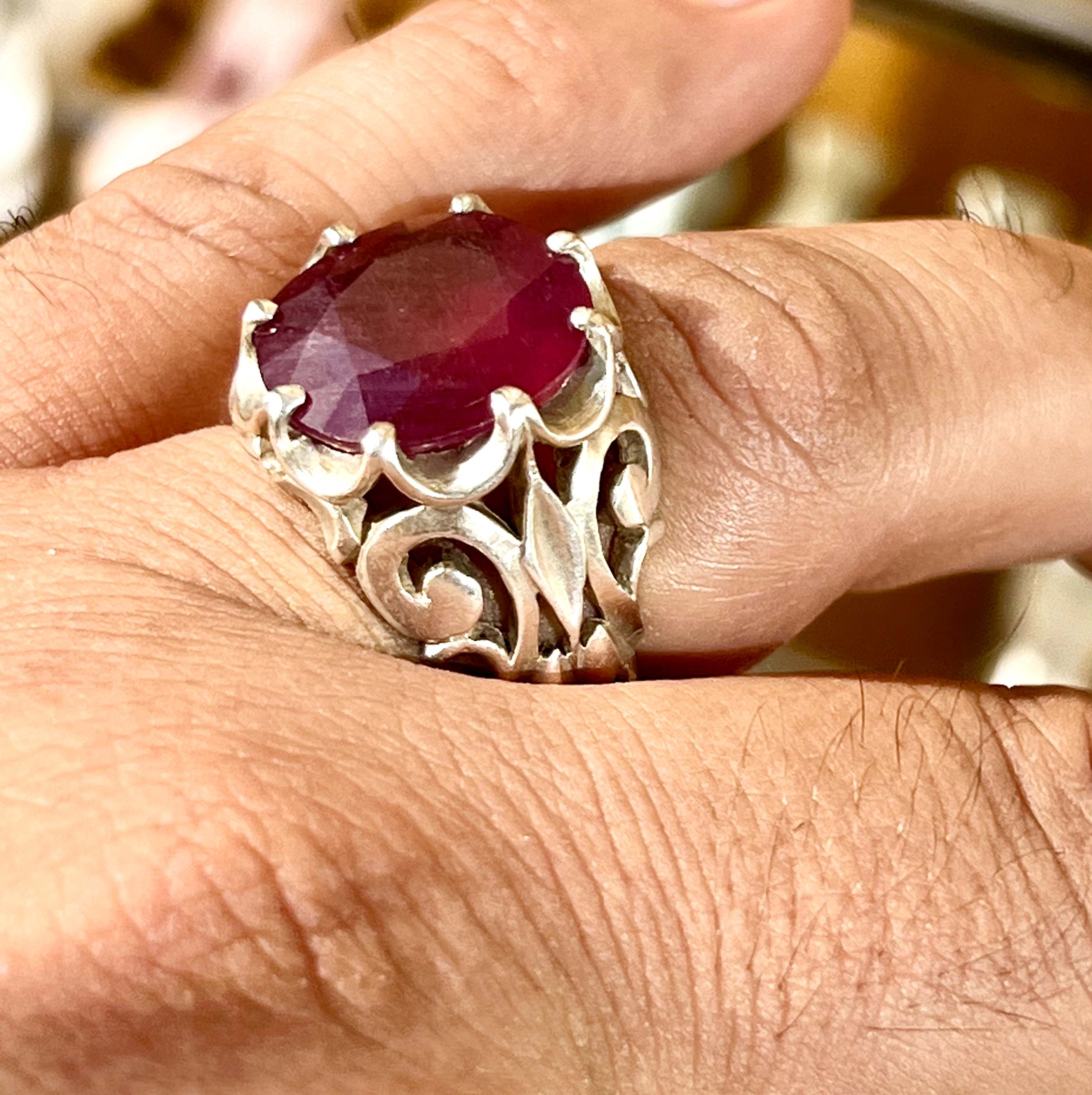 انگشتر نقره ۹۲۵ یاقوت موزامبیک معدنی