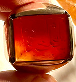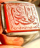 انگشتر نقره قدیمی با عقیق سرخ کهنه یمنی و خط قاجاری