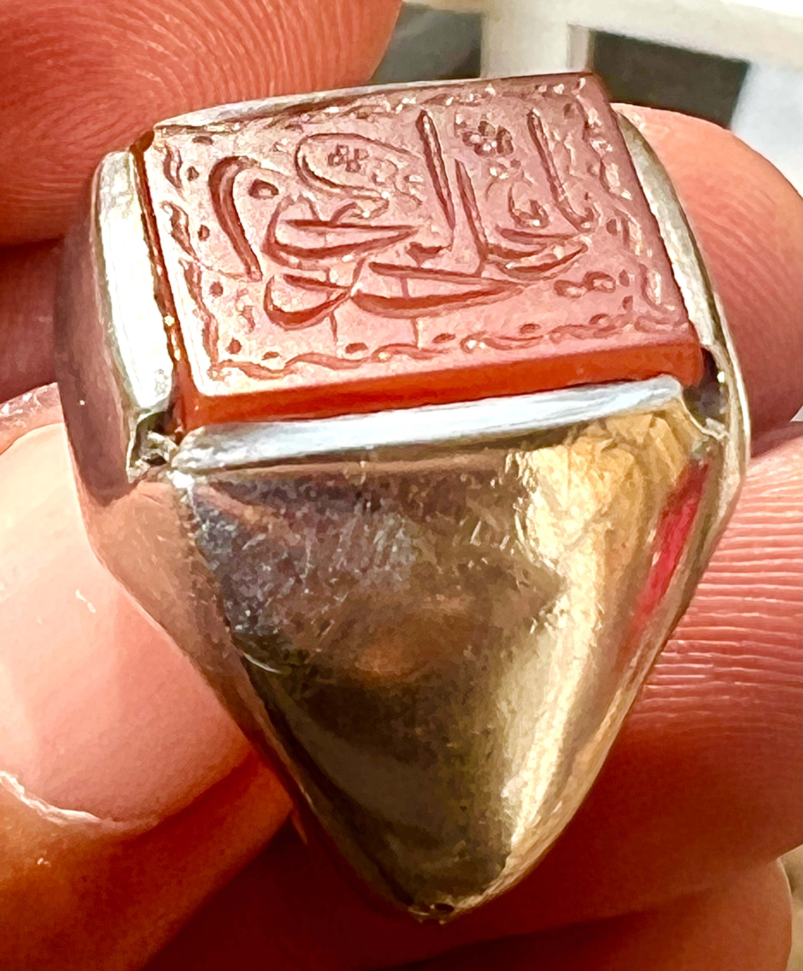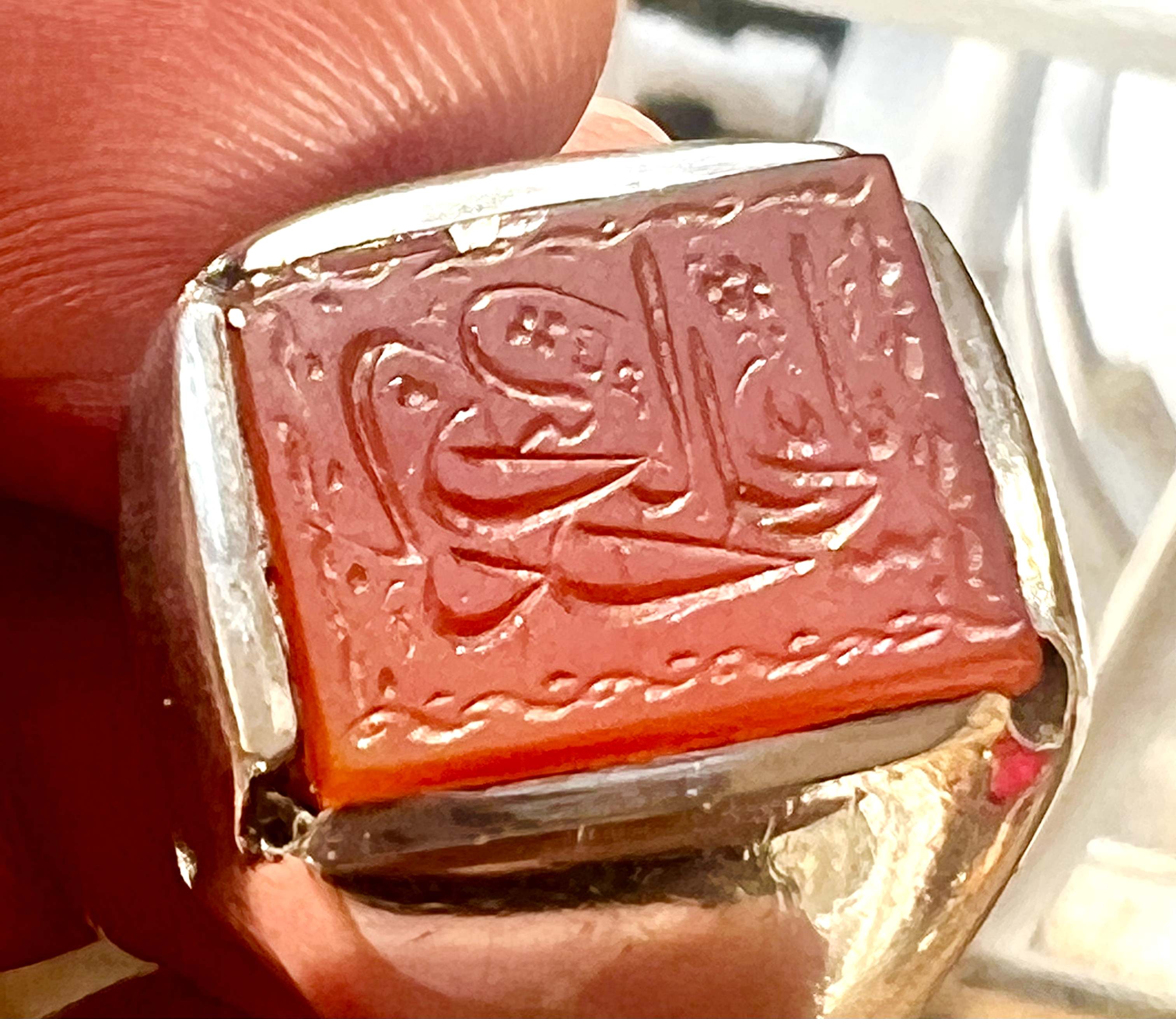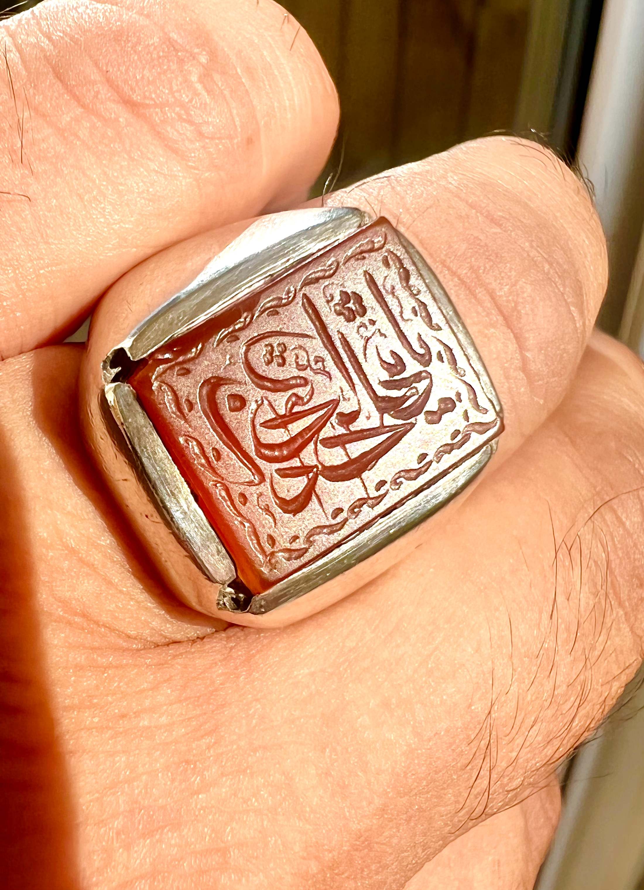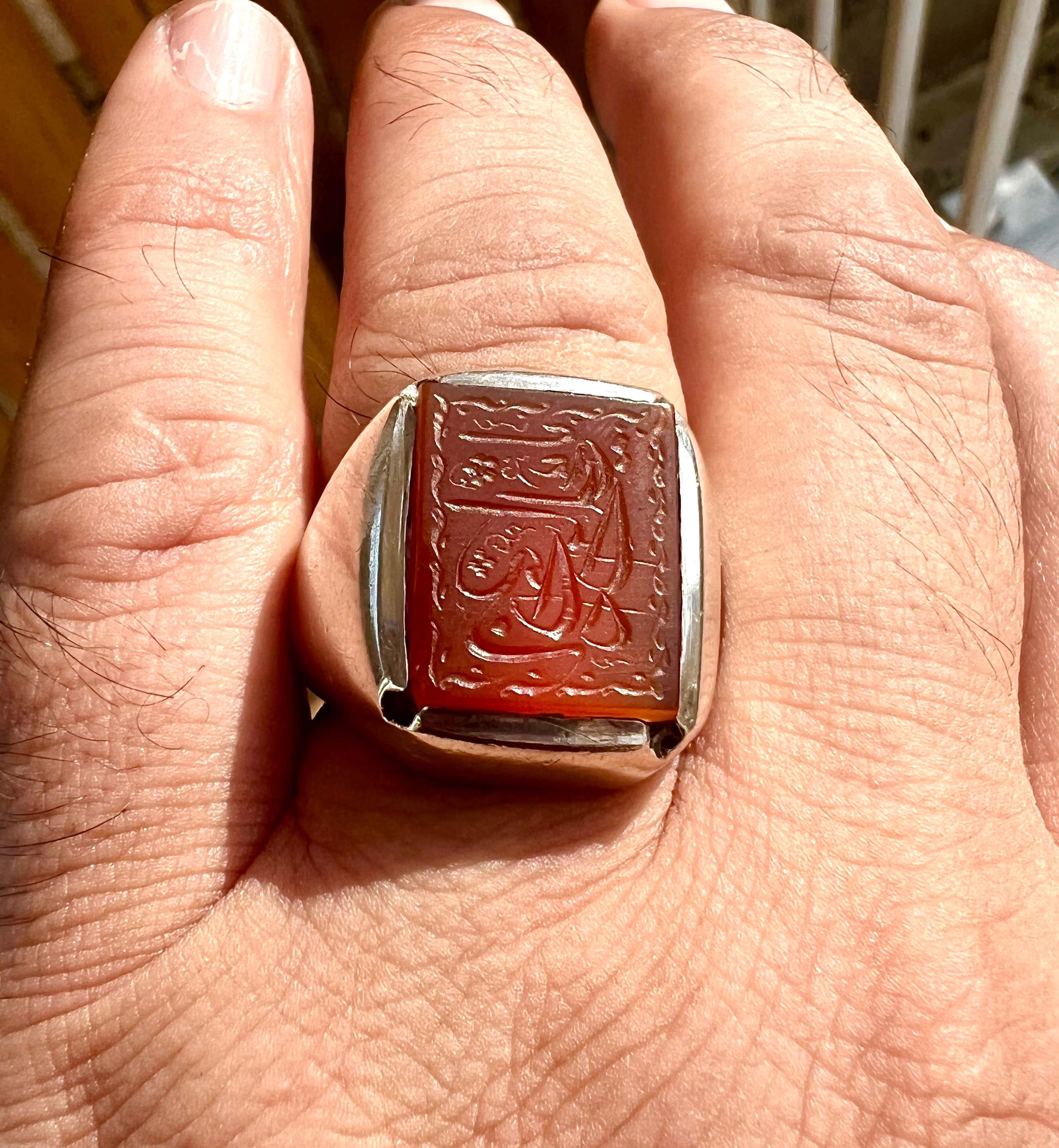 انگشتر نقره قدیمی با عقیق سرخ کهنه یمنی و خط قاجاری