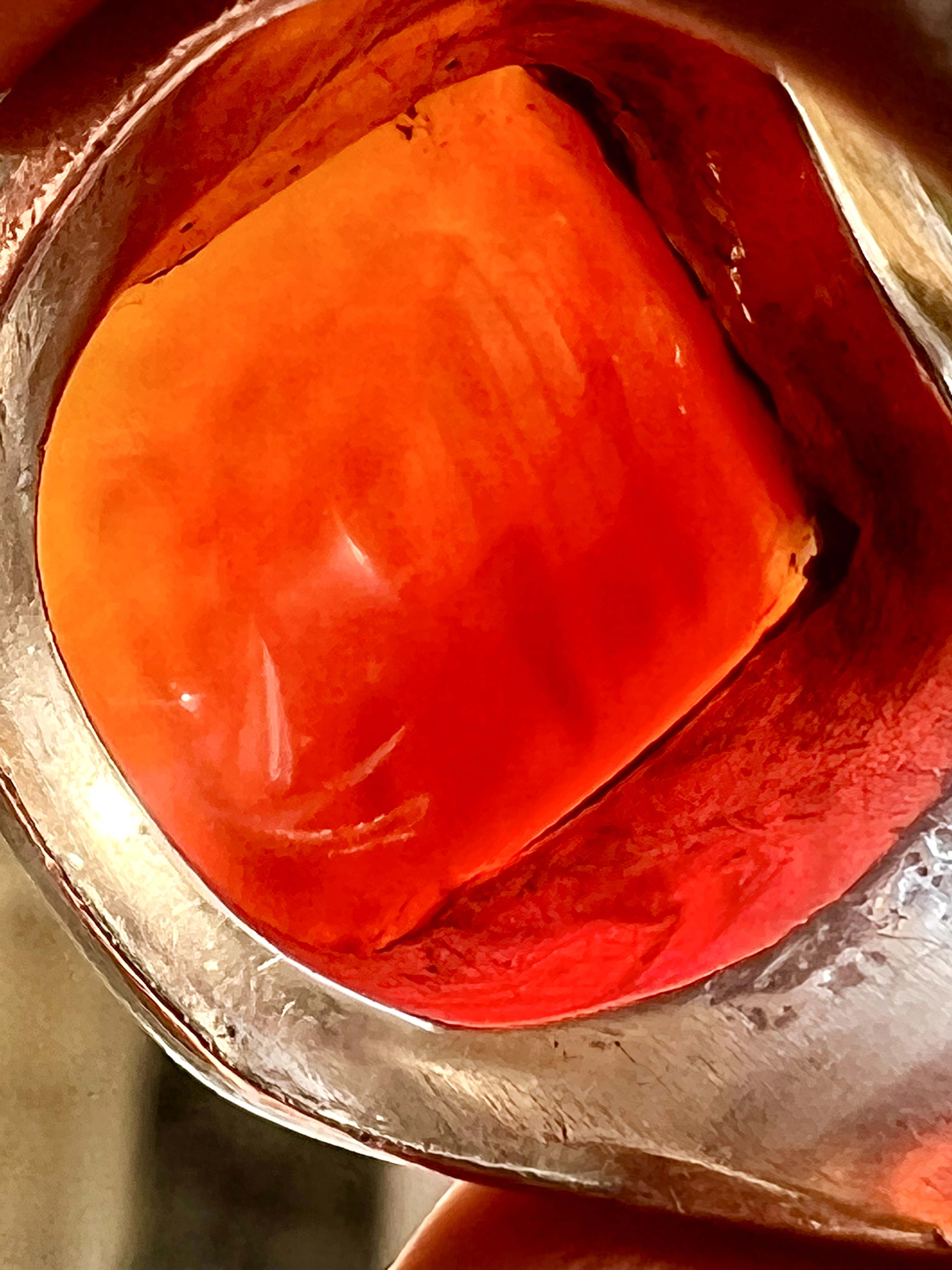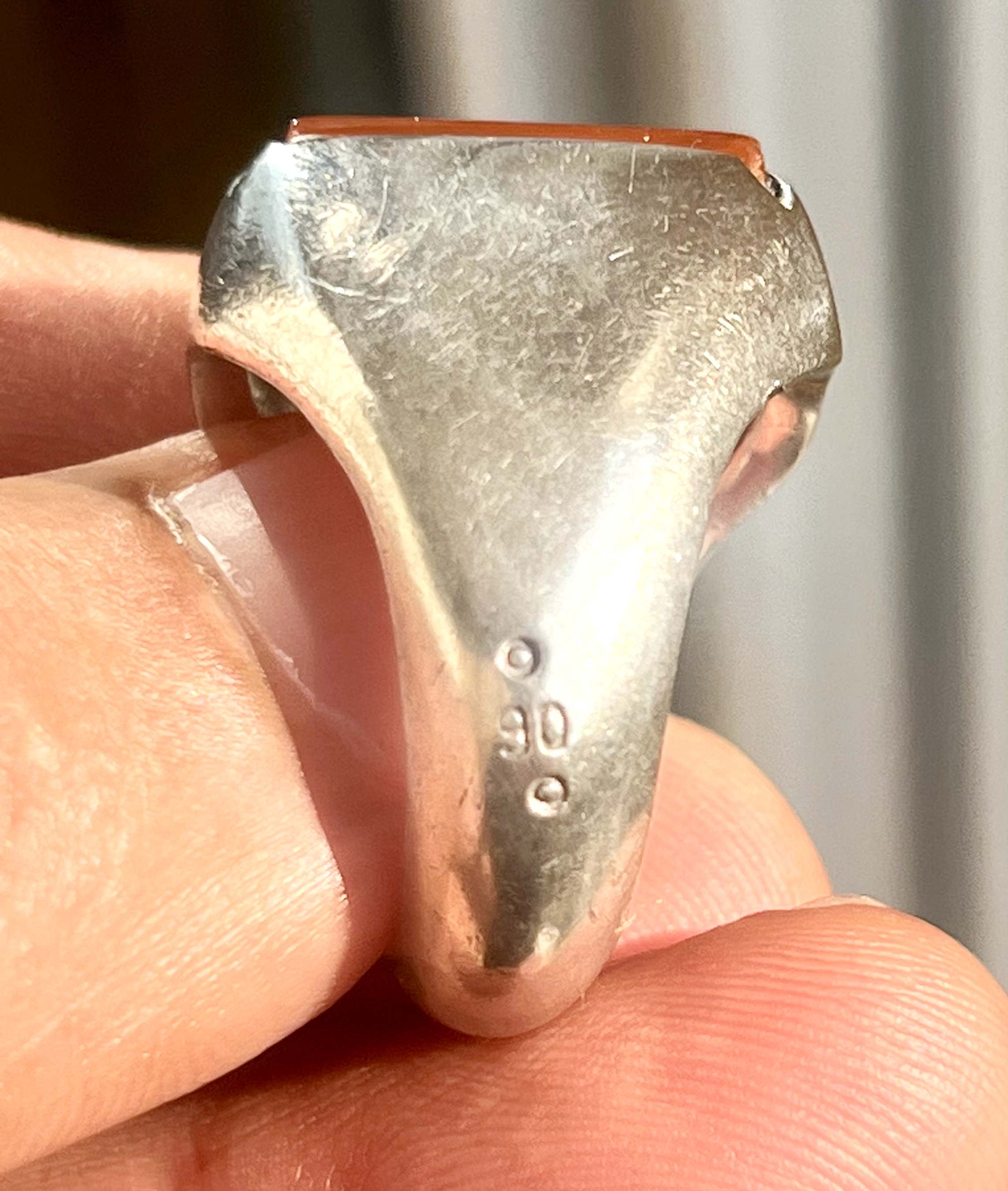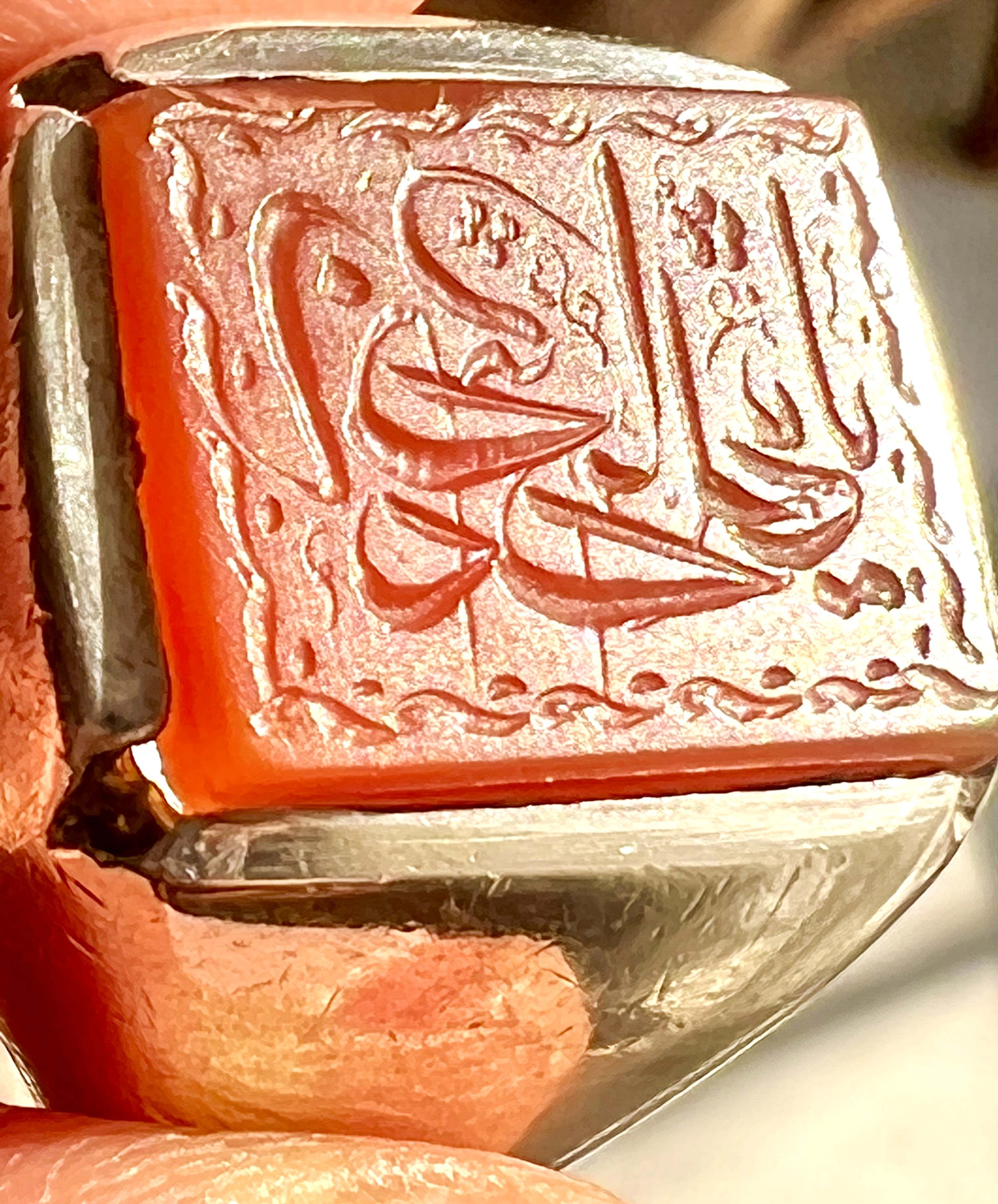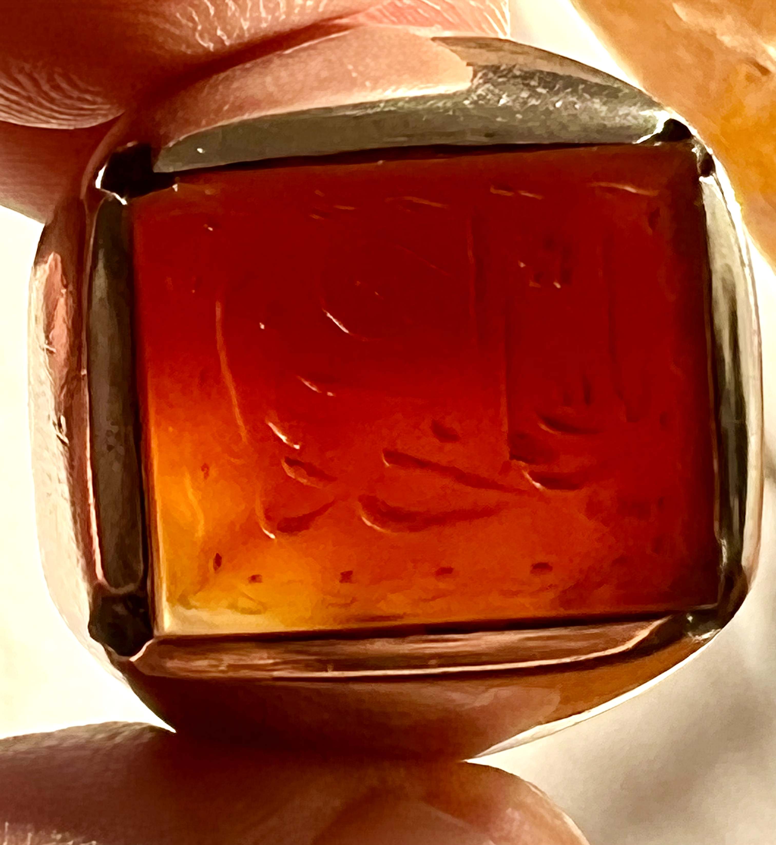 انگشتر نقره قدیمی با عقیق سرخ کهنه یمنی و خط قاجاری