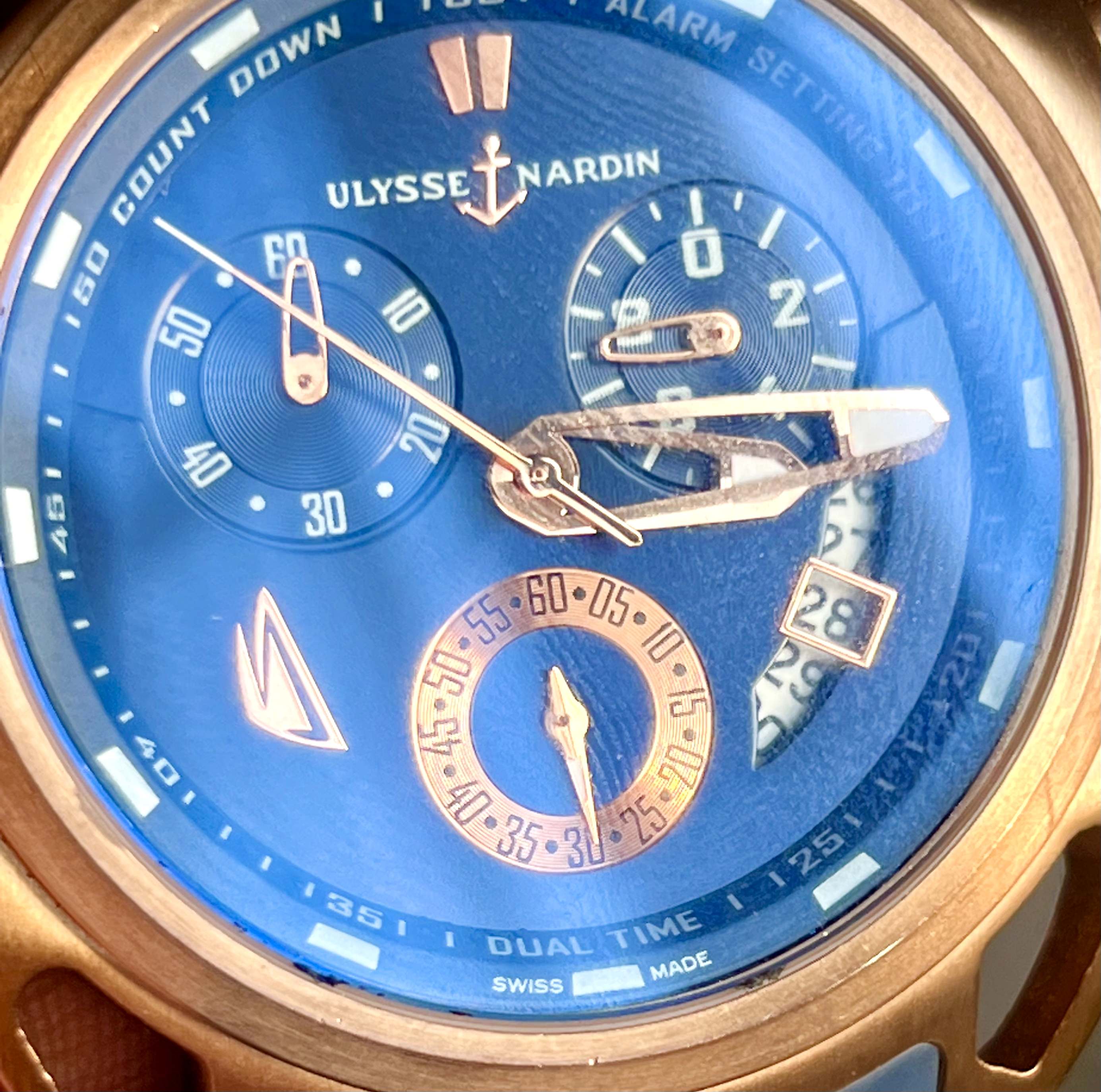 ساعت مچی مردانه برند ULYSSE NARDIN های کپی سه موتوره فعال با استاندار سوییس، موتورژاپنی اصل کد ۴۱۲