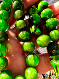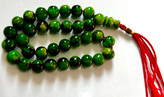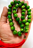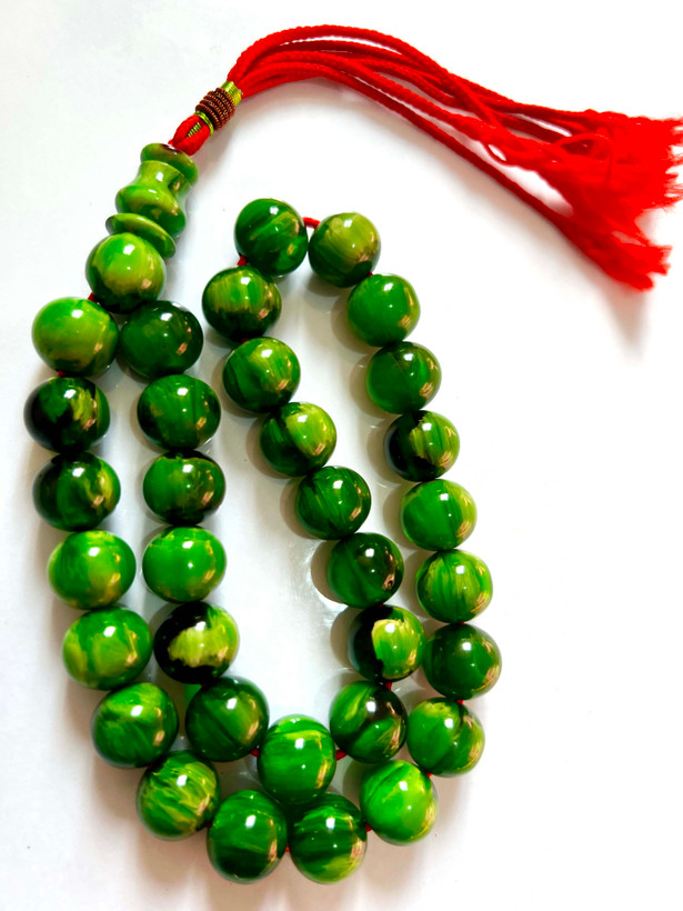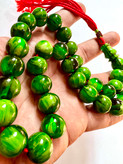 تسبیح کهربای کهکشانی سبز رگه دار با کیفیت تراش ۵ ساله کد ۴۱۴