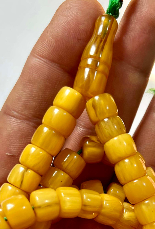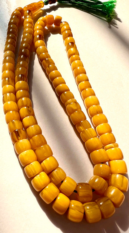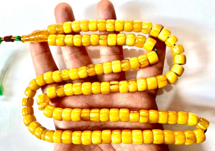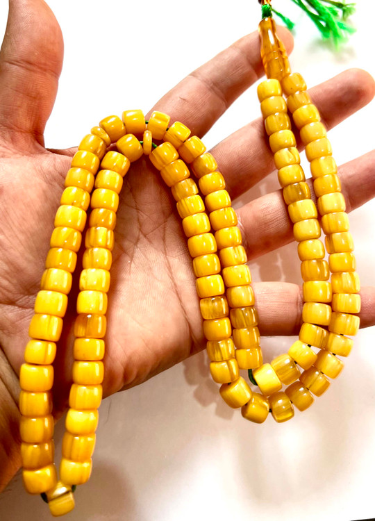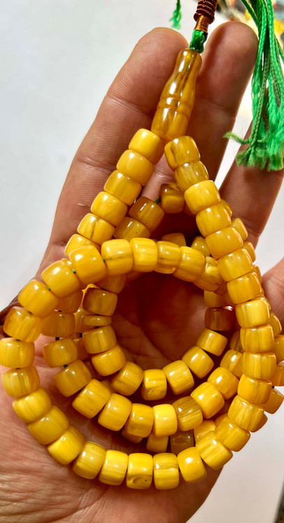 تسبیح یاغبال کهنه رنگ زرد کهربایی روشن ،با رگه های سفید ، معطر و بودار کد ۴۱۵