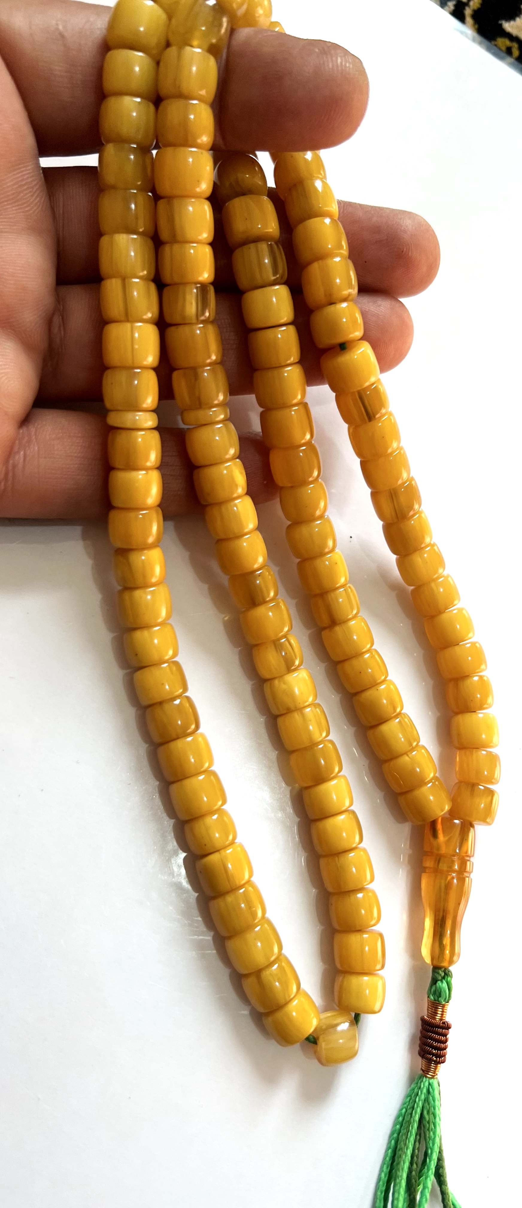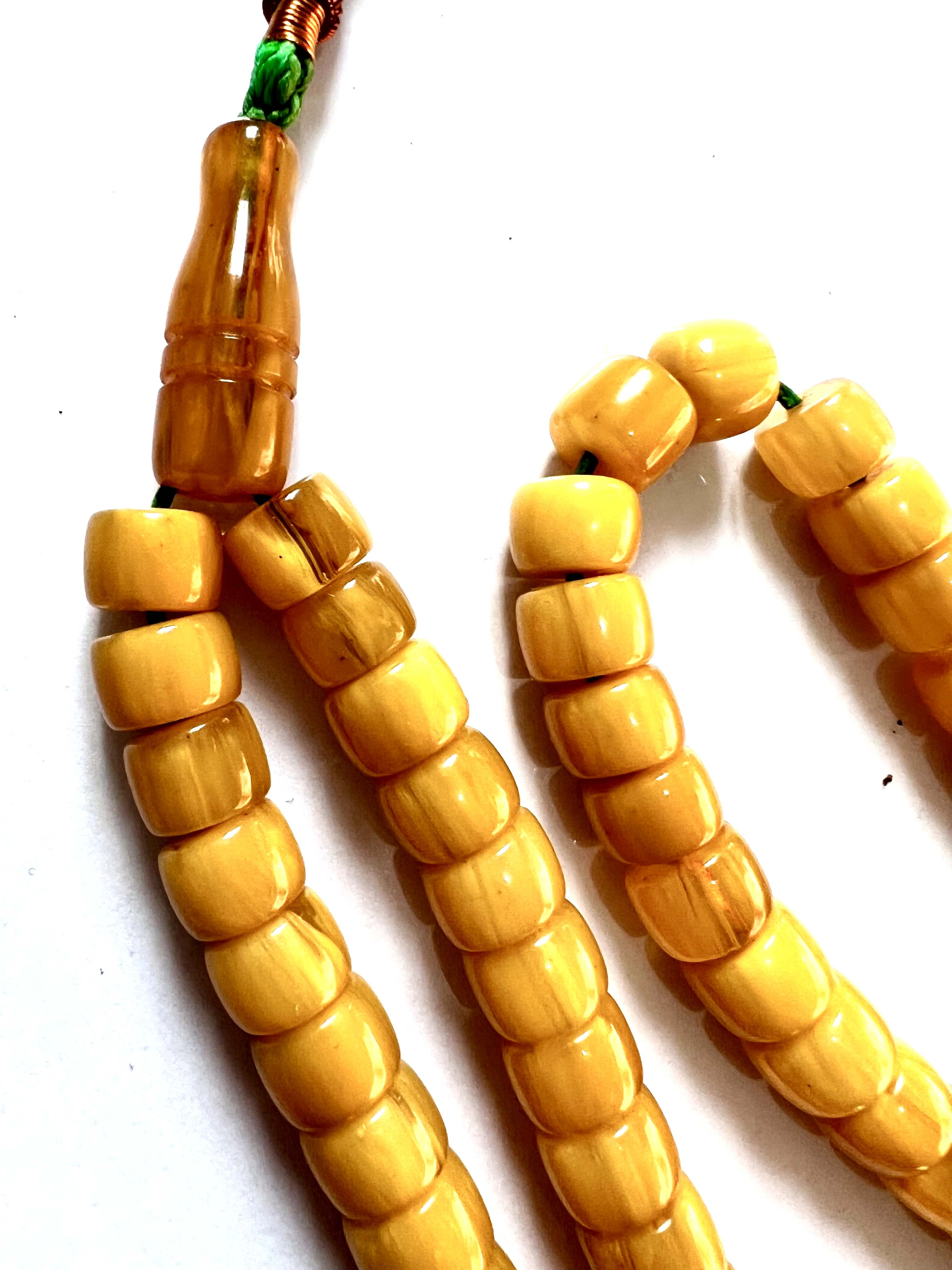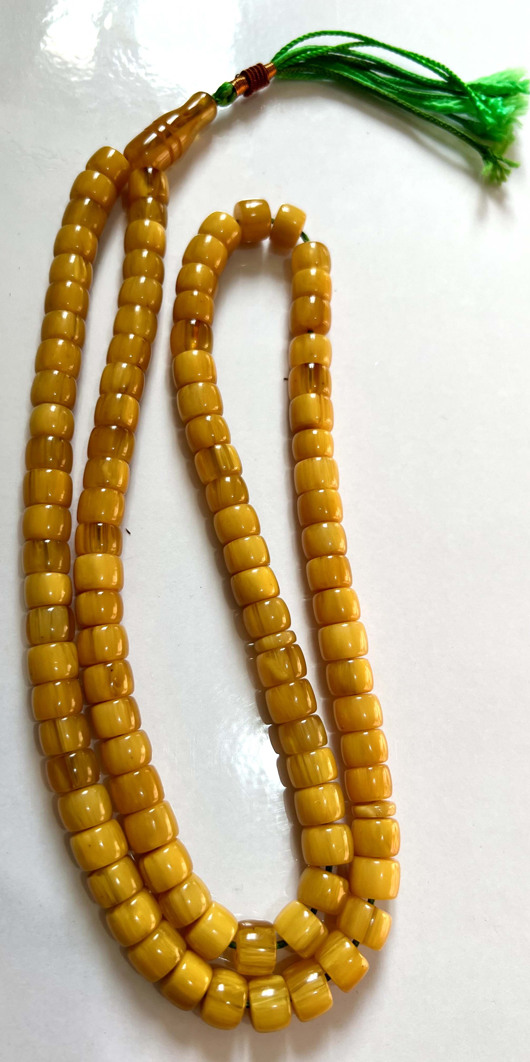 تسبیح یاغبال کهنه رنگ زرد کهربایی روشن ،با رگه های سفید ، معطر و بودار کد ۴۱۵