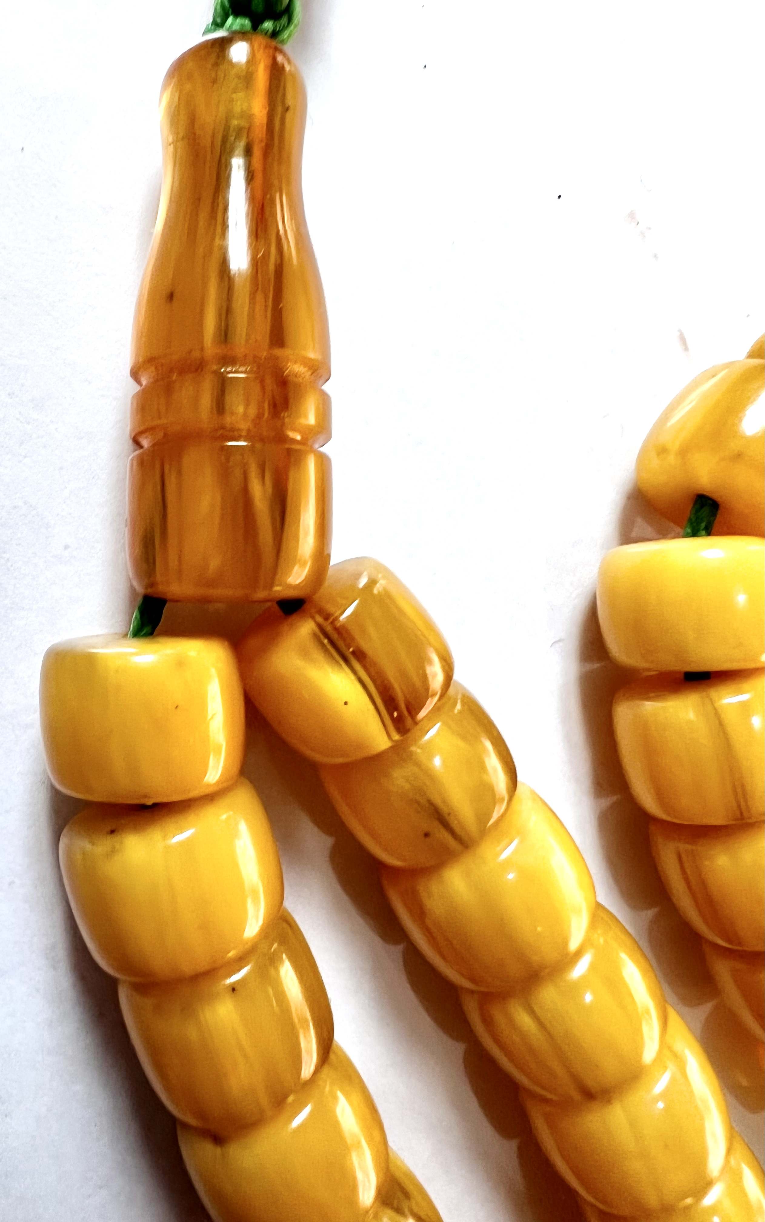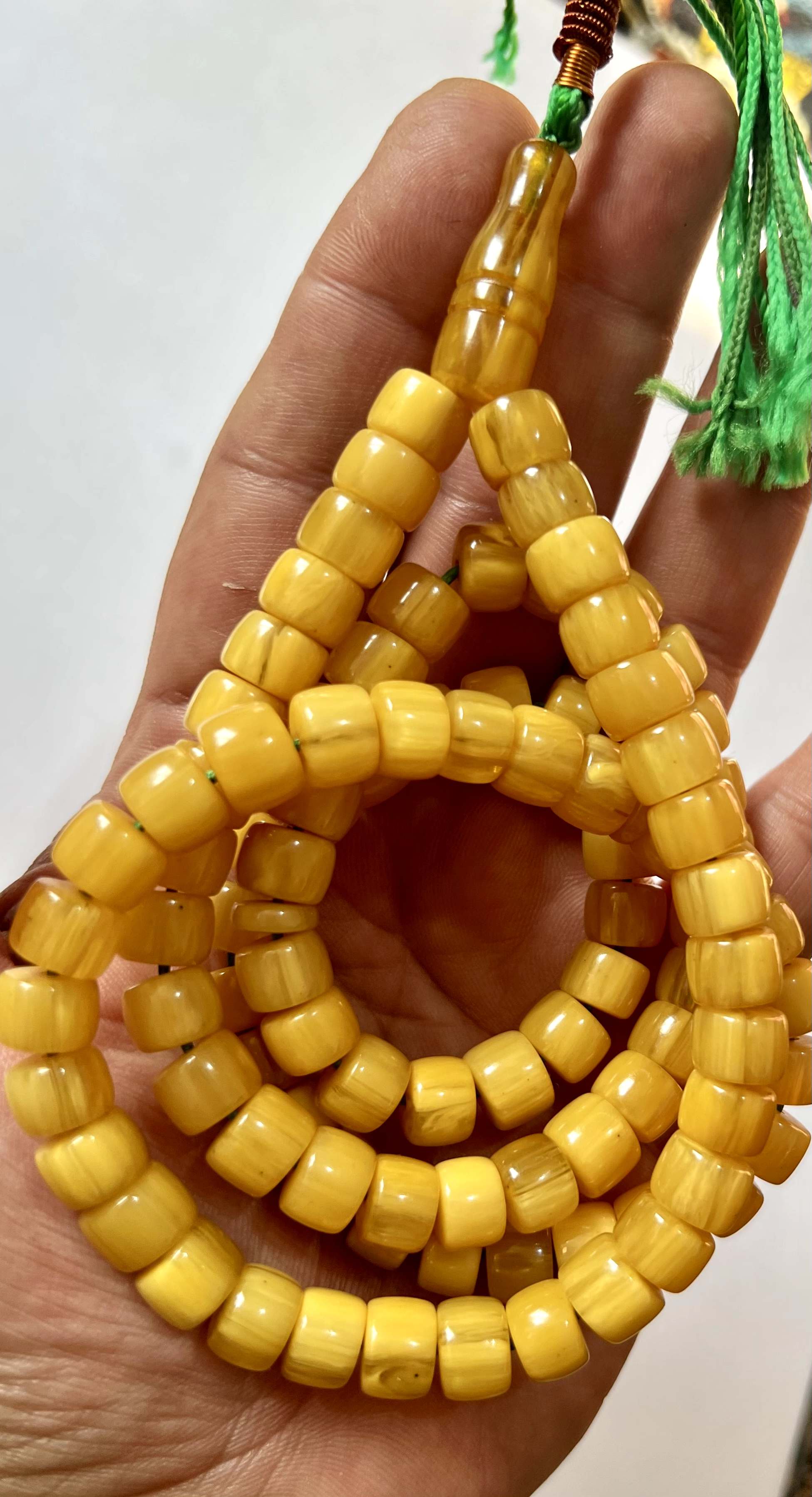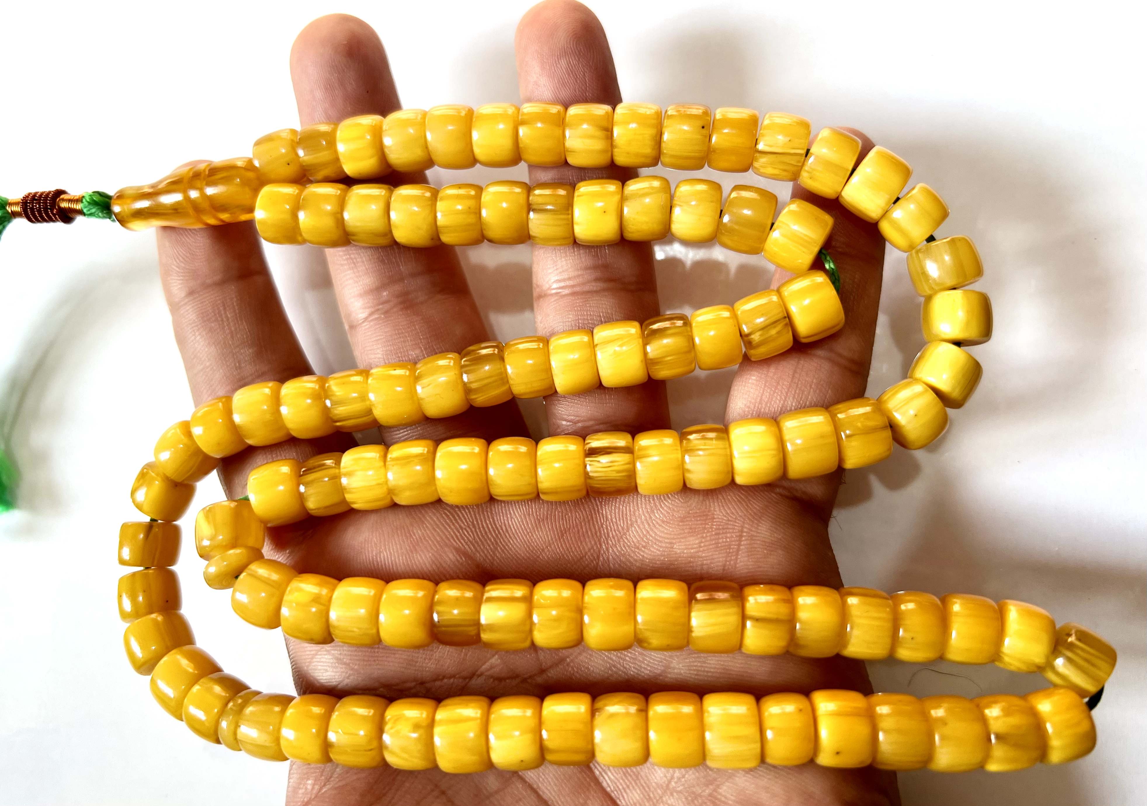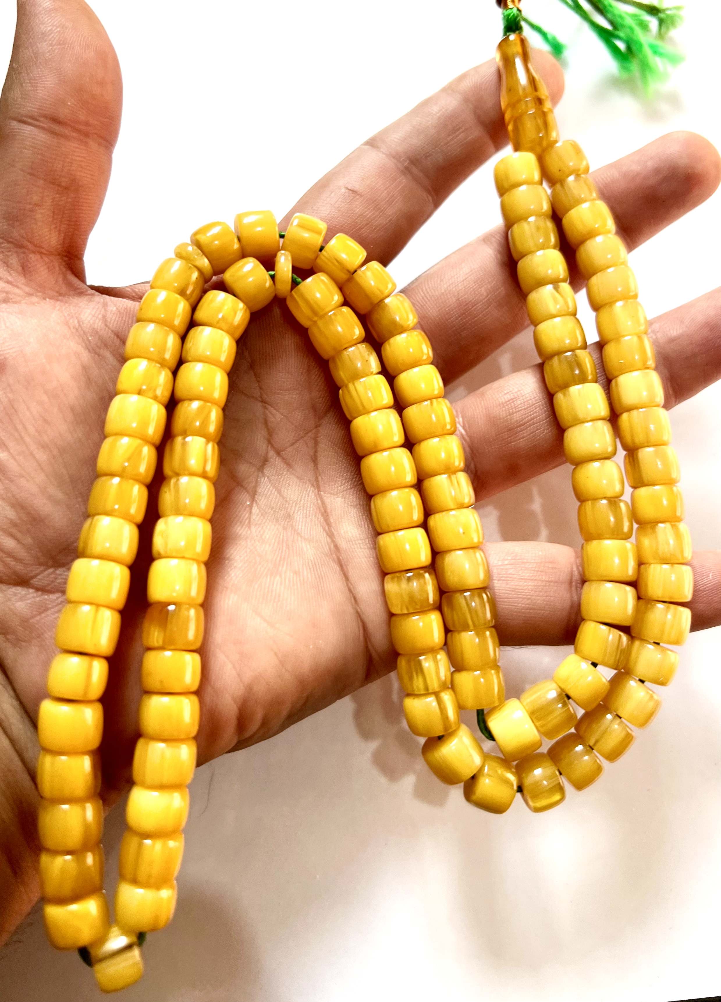 تسبیح یاغبال کهنه رنگ زرد کهربایی روشن ،با رگه های سفید ، معطر و بودار کد ۴۱۵