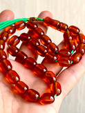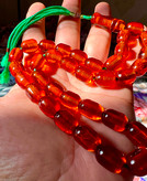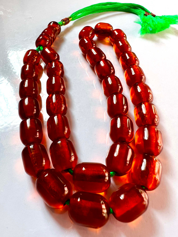 تسبیح سندلوس آلمان قاجاری کهنه و بودار ، رنگ دارچینی روشن پاتین دار و اصیل کد ۴۱۹