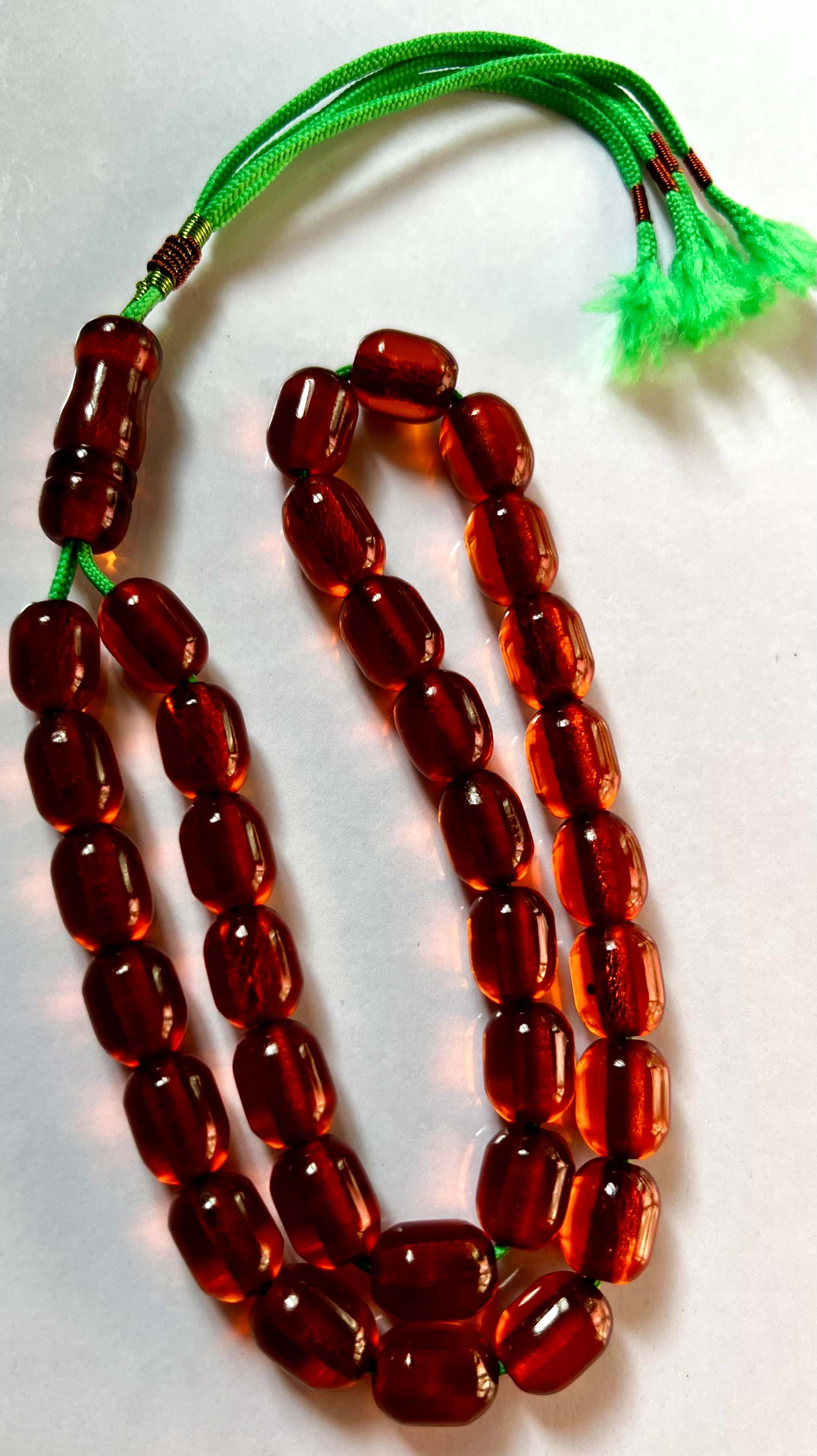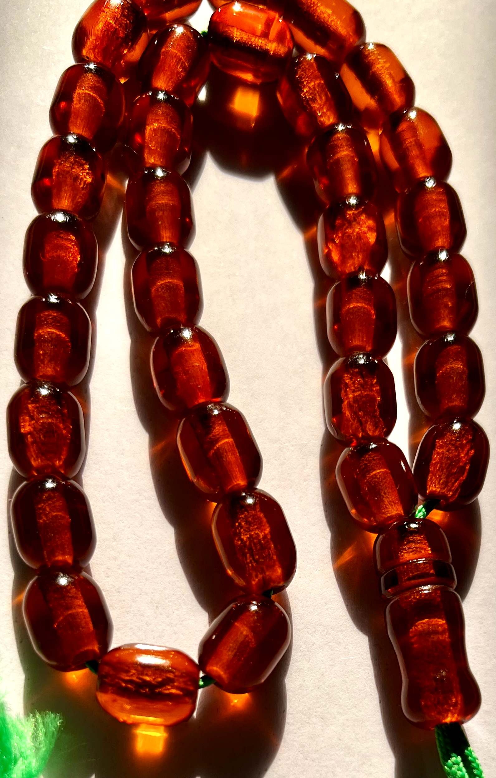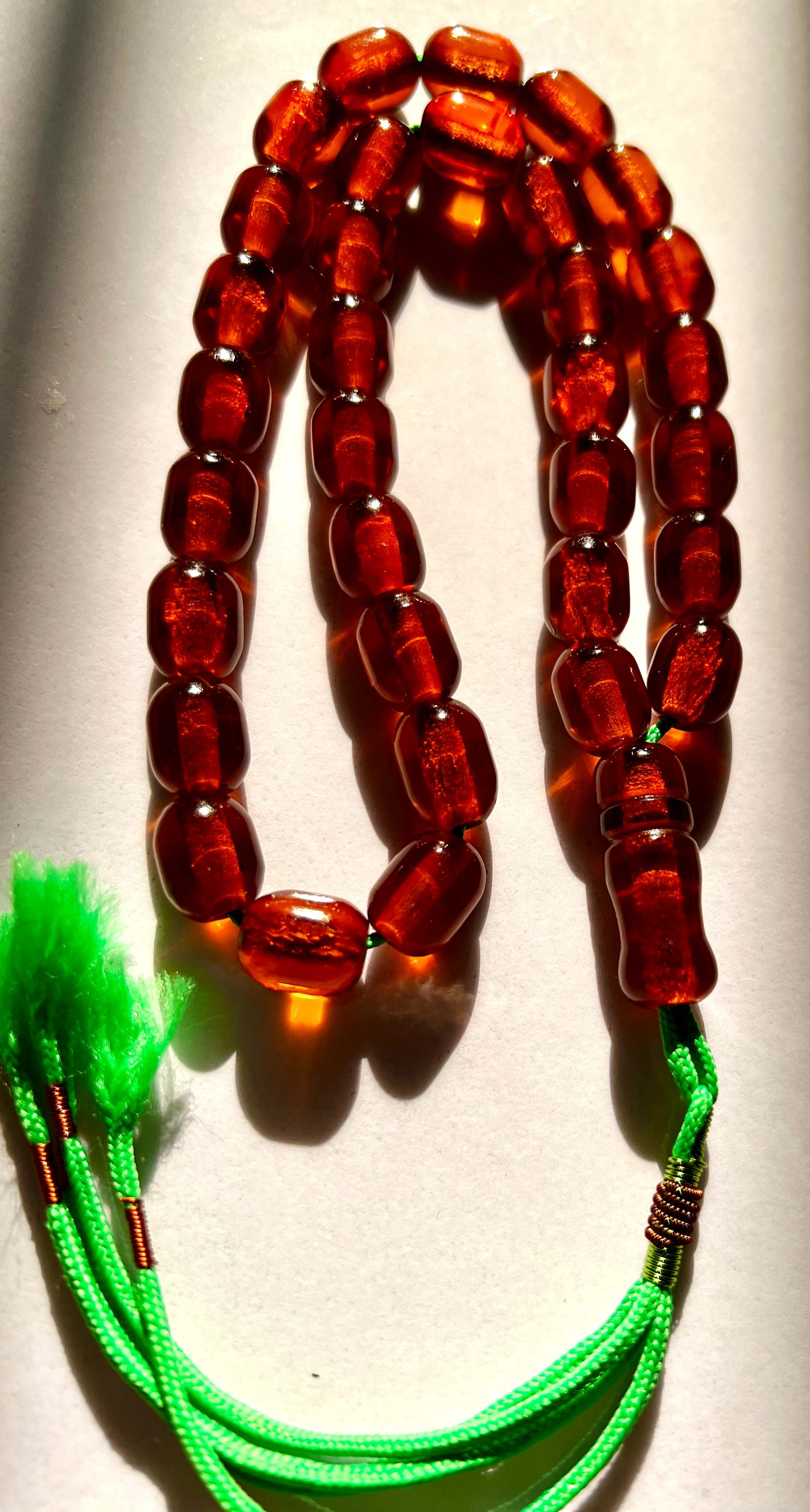 تسبیح سندلوس آلمان قاجاری کهنه و بودار ، رنگ دارچینی روشن پاتین دار و اصیل کد ۴۱۹