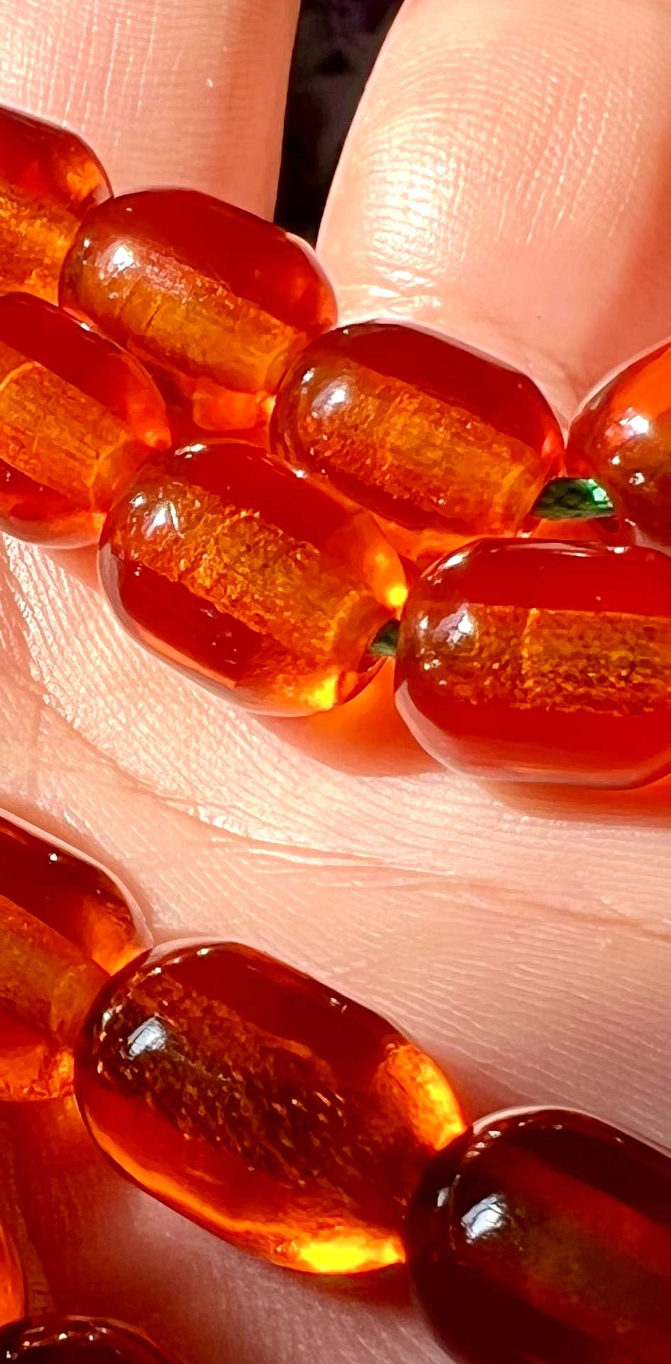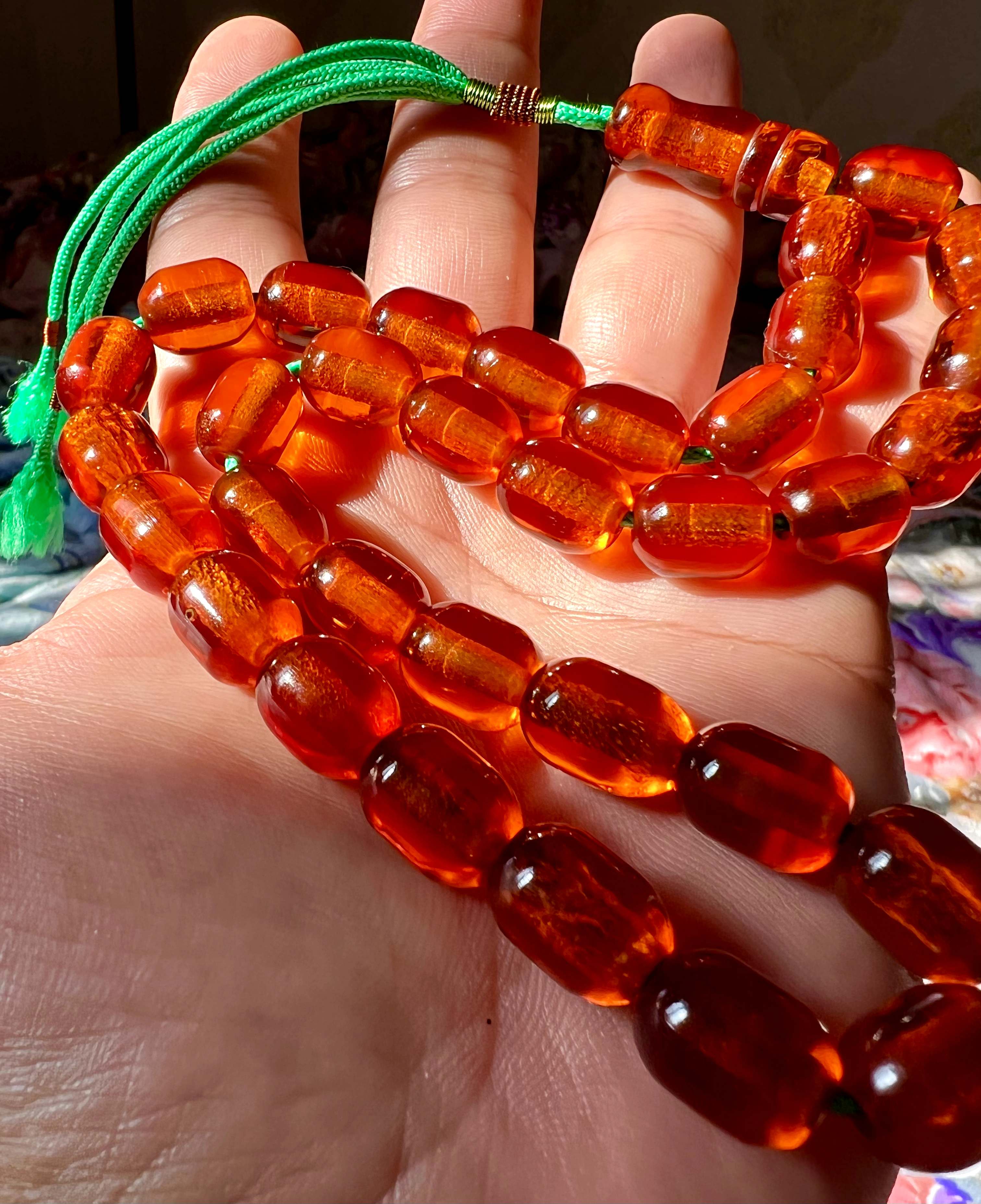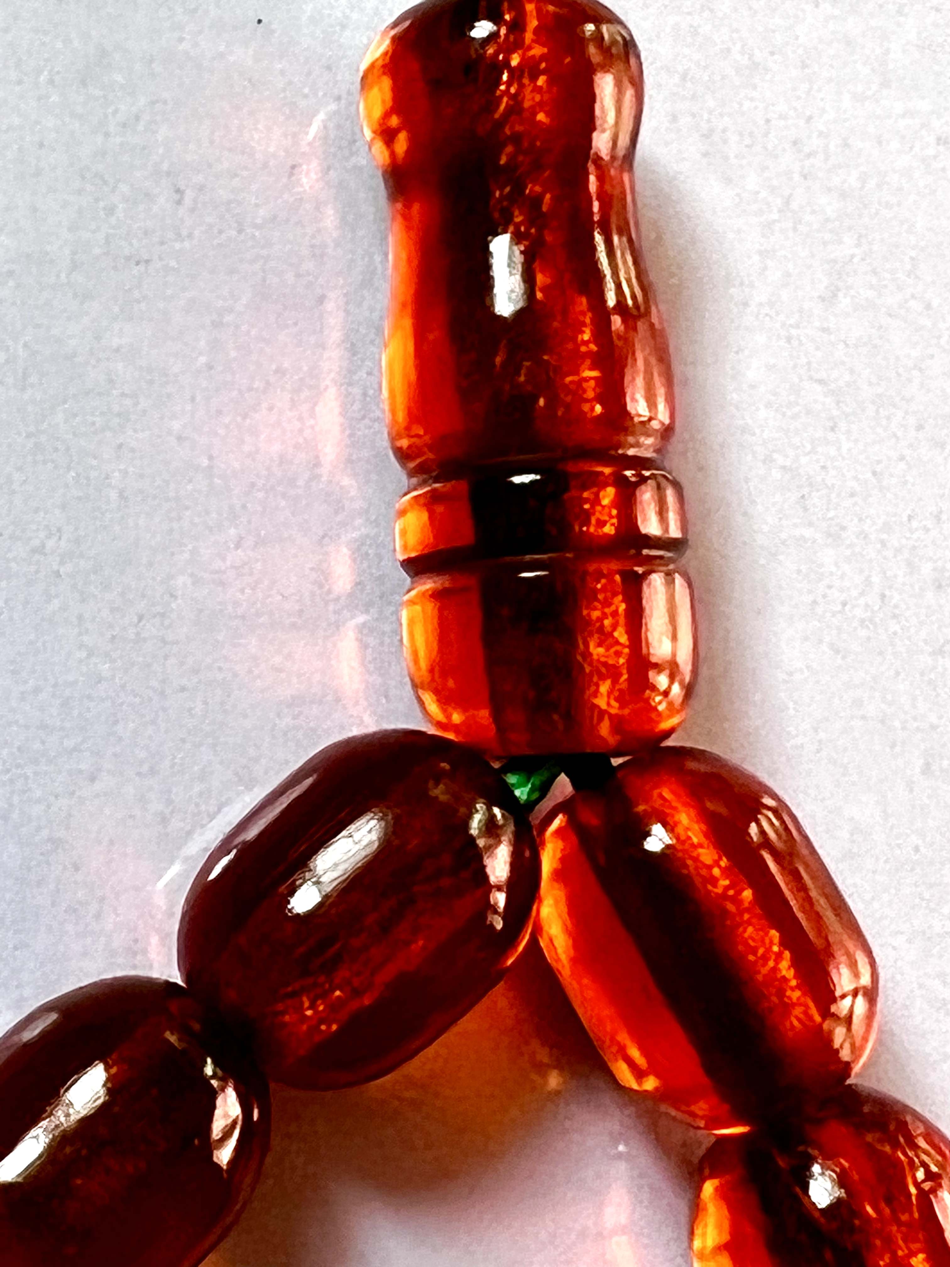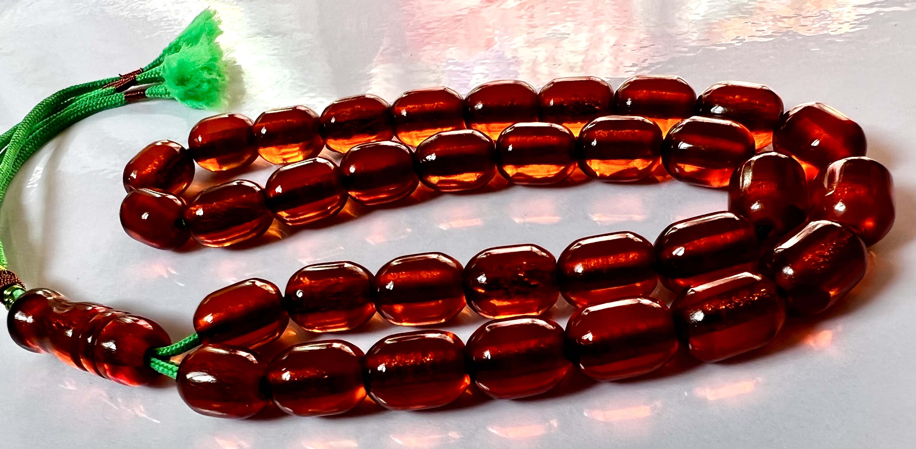 تسبیح سندلوس آلمان قاجاری کهنه و بودار ، رنگ دارچینی روشن پاتین دار و اصیل کد ۴۱۹